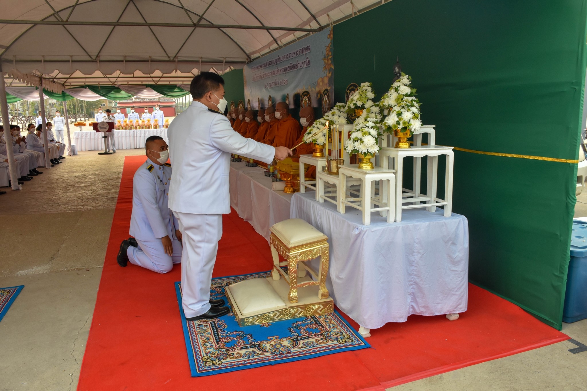 เวลา 07.00 น. พิธีสวดพระพุทธมนต์และพิธีทำบุญตักบาตรถวายพระราชกุศล ณ บริเวณเขื่อนเรียงหิน หน้าศาลากลางจังหวัดชัยนาท