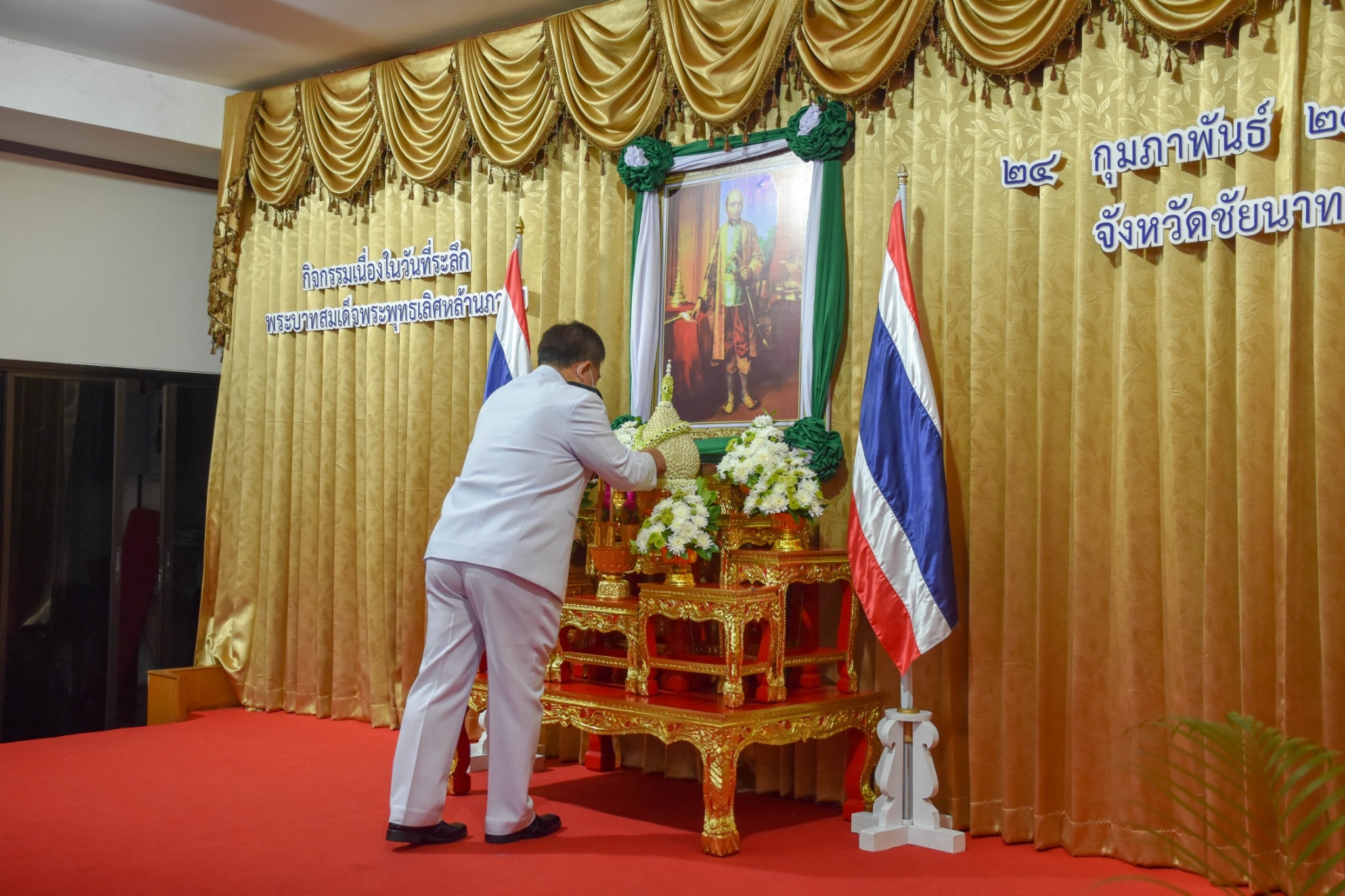 เวลา 08.00 น. พิธีวางพุ่มดอกไม้และถวายราชสดุดี ณ อาคารวิมลคุณากร บริเวณศาลากลางจังหวัดชัยนาท