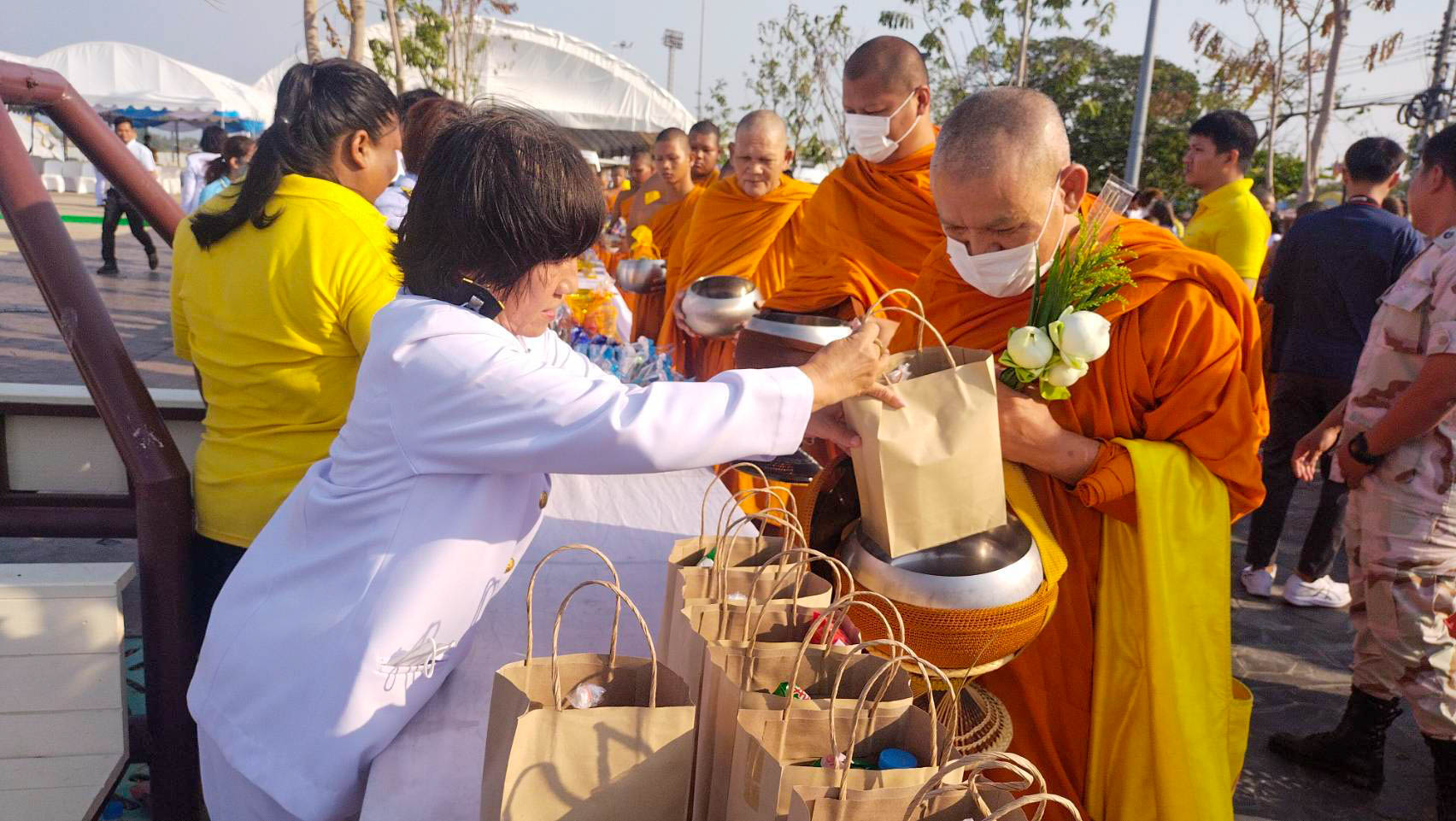 เวลา 07.30 น. พิธีทำบุญตักบาตรถวายพระราชกุศล ณ บริเวณเขื่อนเรียงหิน หน้าศาลากลางจังหวัดชัยนาท โดยมี นายนที มนตริวัต ผู้ว่าราชการจังหวัดชัยนาท เป็นประธานในพิธี