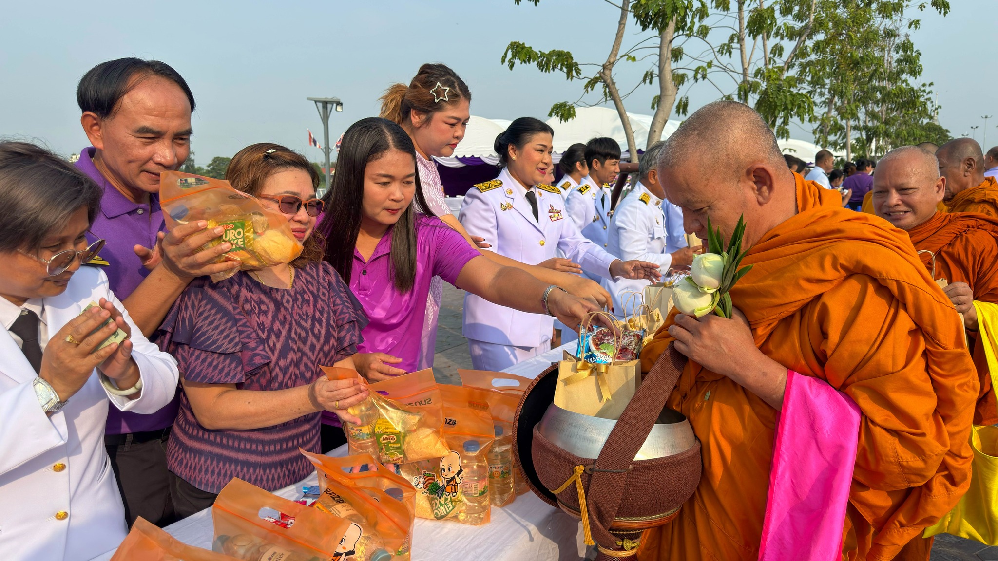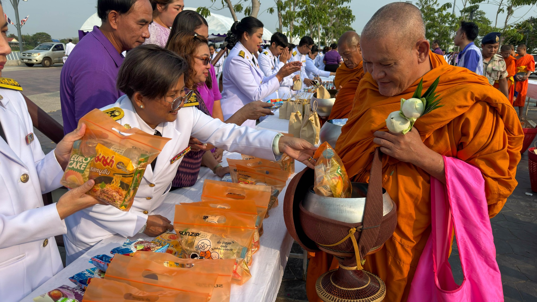 นายสุรศักดิ์ พูลทรัพย์ ผู้อำนวยการแขวงทางหลวงชัยนาท มอบหมายให้ นางฐิติพร เสริมสุขต่อ นางสาวสุพัตรา พุ่มสุคันธรส พร้อมเจ้าหน้าที่แขวงทางหลวงชัยนาท ร่วมพิธีทำบุญตักบาตรถวายพระราชกุศล เนื่องในโอกาศวันคล้ายวันพระราชสมภพสมเด็จพระกนิษฐาธิราชเจ้า กรมสมเด็จพระเทพรัตนราชสุดาฯสยามบรมราชกุมารี ในวันพุธที่ 2 เมษายน 2568 เวลา 07.00 น. ณ บริเวณเขื่อนเรียงหิน หน้าศาลากลางจังหวัดชัยนาท โดยมี นายนที มนตริวัต ผู้ว่าราชการจังหวัดชัยนาท เป็นประธานในพิธี