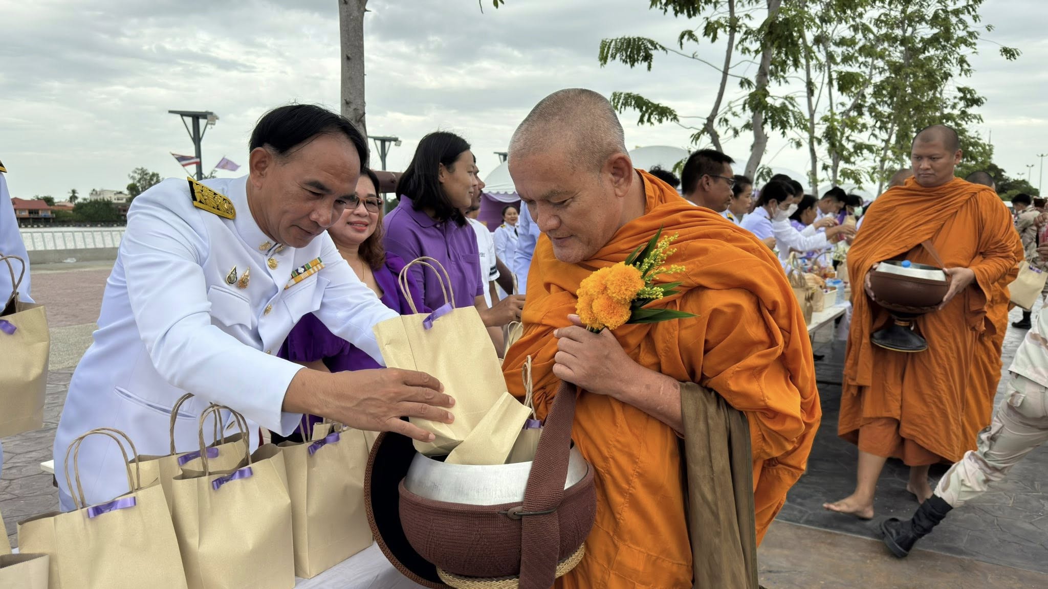 เวลา 07.00 น. พิธีเจริญพระพุทธมนต์และพิธีทำบุญตักบาตรถวายพระราชกุศล ณ บริเวณเขื่อนเรียงหิน หน้าศาลากลางจังหวัดชัยนาท โดยมี นายนที มนตริวัต ผู้ว่าราชการจังหวัดชัยนาท เป็นประธาน