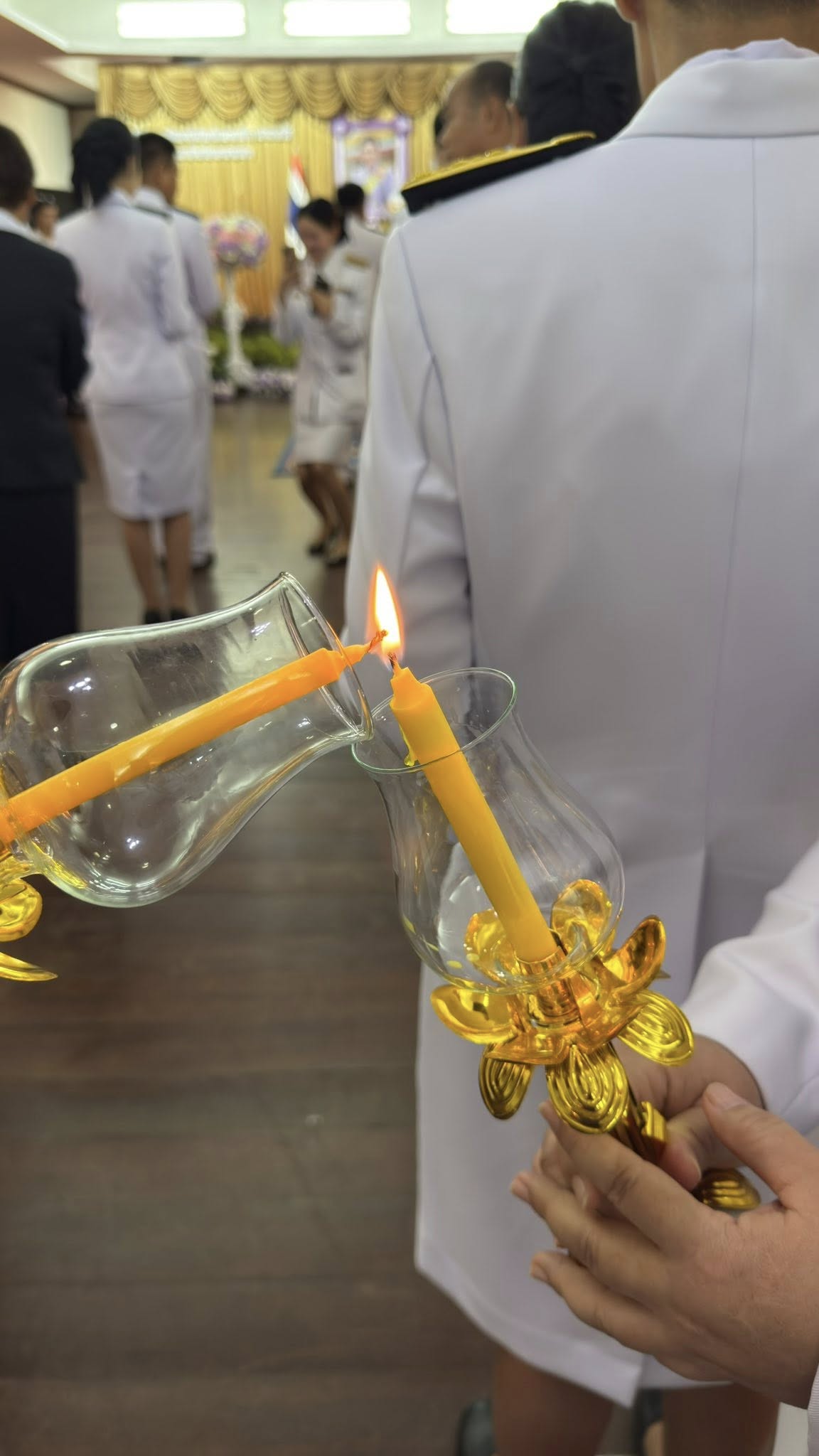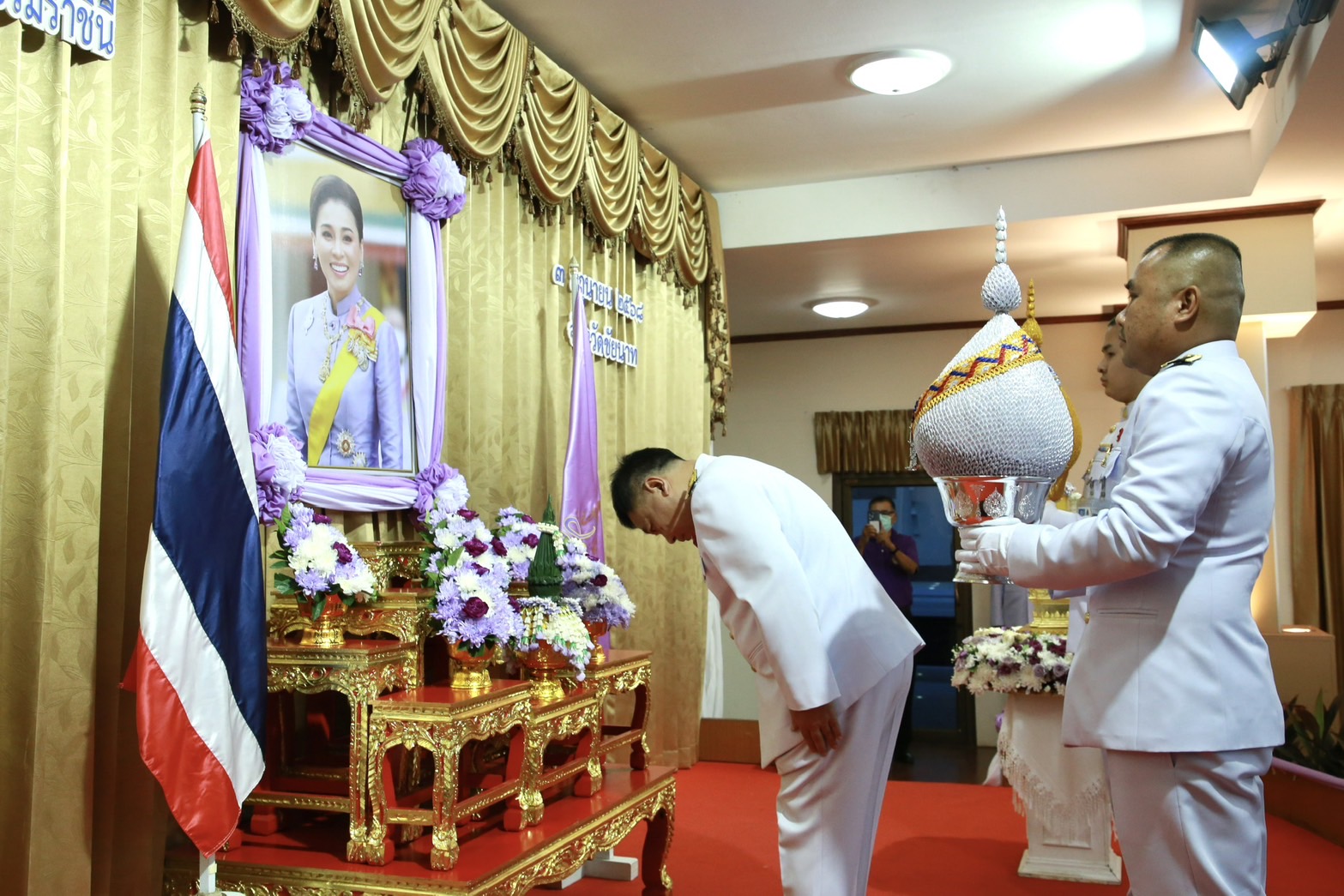 พิธีถวายเครื่องราชสักการะ วางพานพุ่ม และจุดเทียนถวายพระพรชัยมงคล