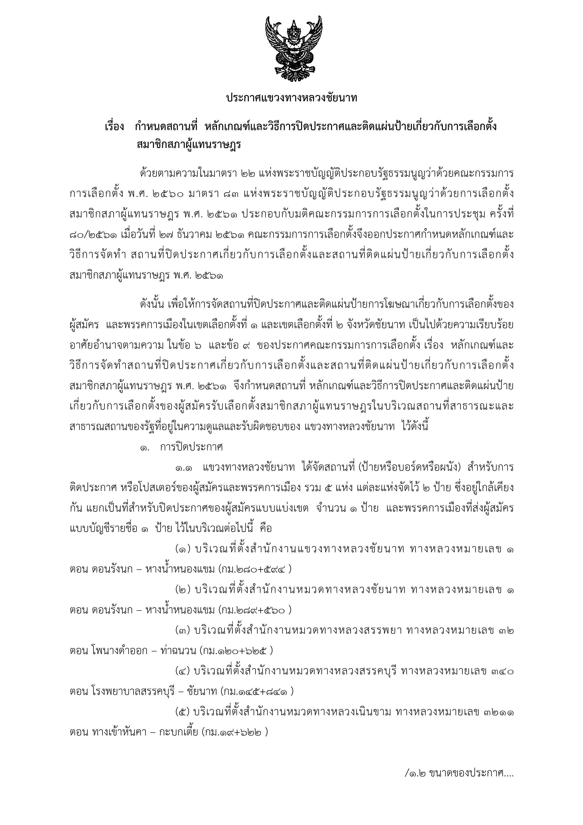 แขวงทางหลวงชัยนาทจึงขอแจ้งประกาศ กำหนดสถานที่ หลักเกณฑ์ และวิธีการปิดประกาศ และติดแผ่นป้ายเกี่ยวกับการเลือกตั้ง ดังเอกสารแนบต่อไปนี้