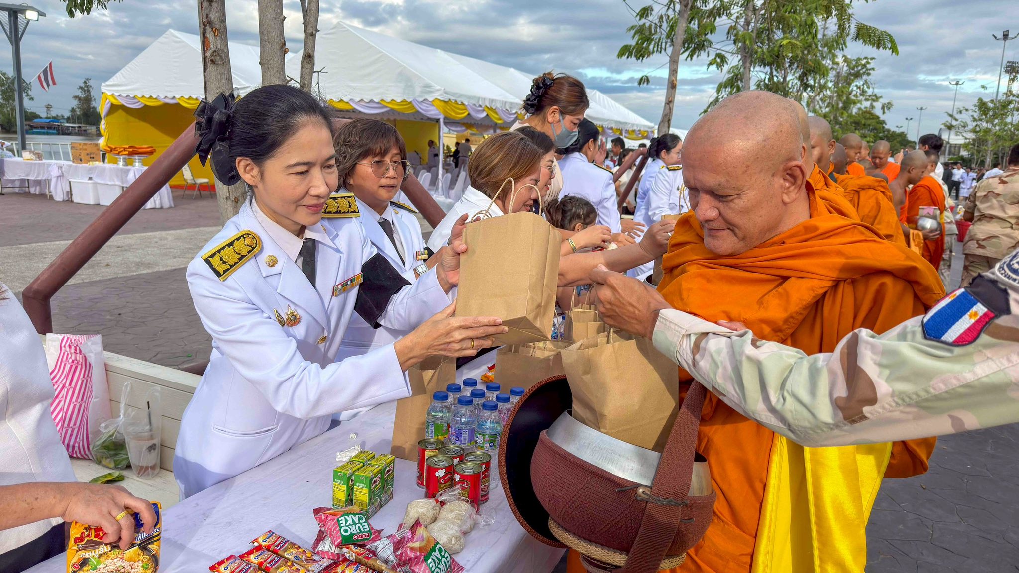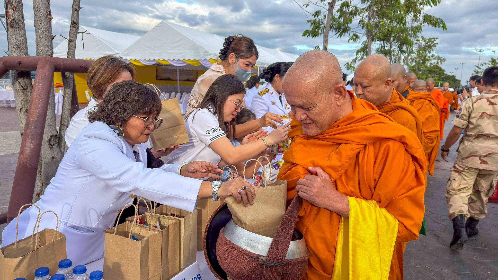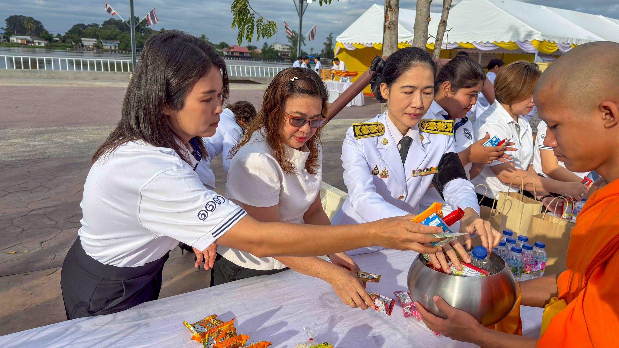 เวลา 07.00 น. พิธีเจริญพระพุทธมนต์และพิธีทำบุญตักบาตรถวายพระราชกุศล ณ บริเวณเขื่อนเรียงหิน หน้าศาลากลางจังหวัดชัยนาท
