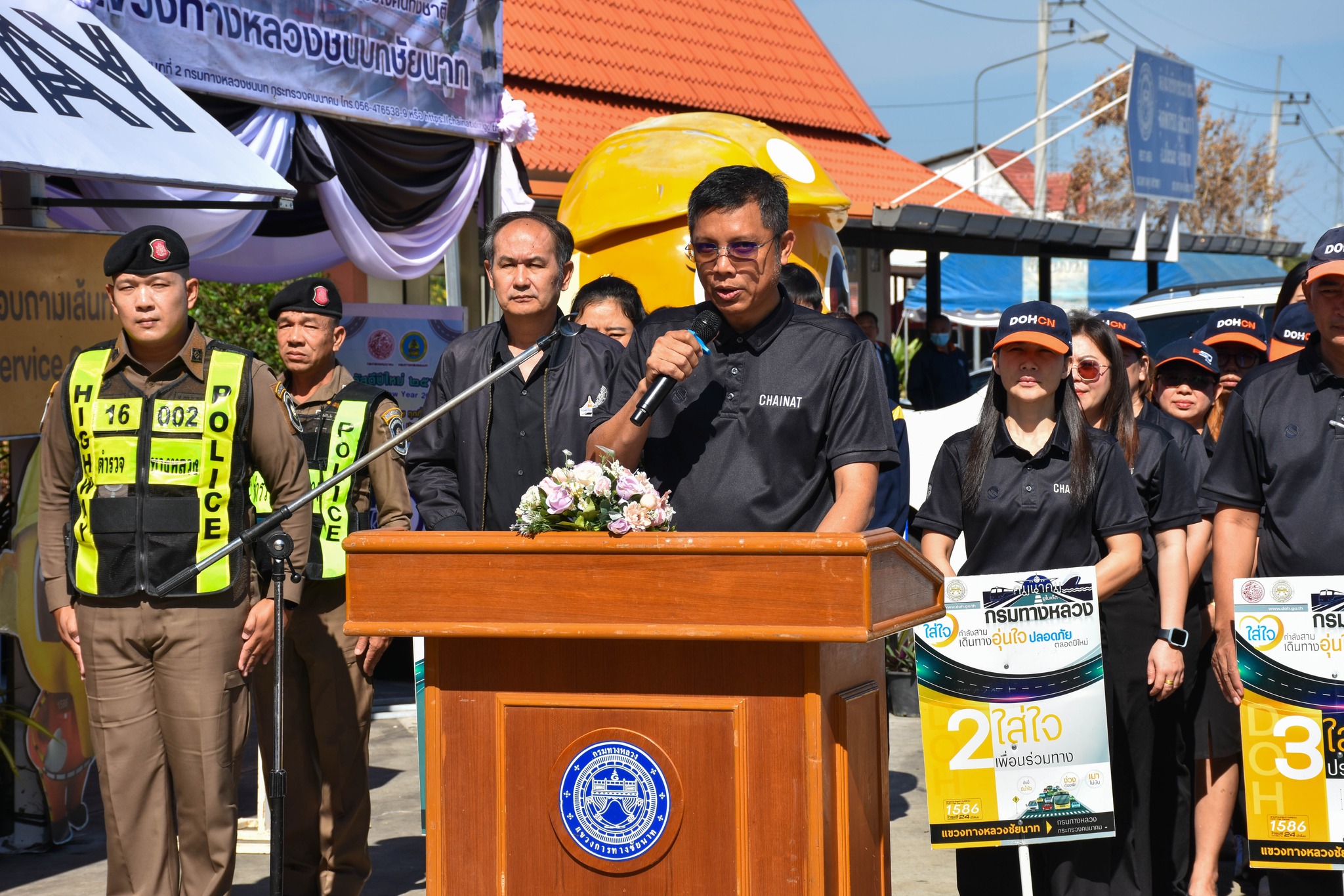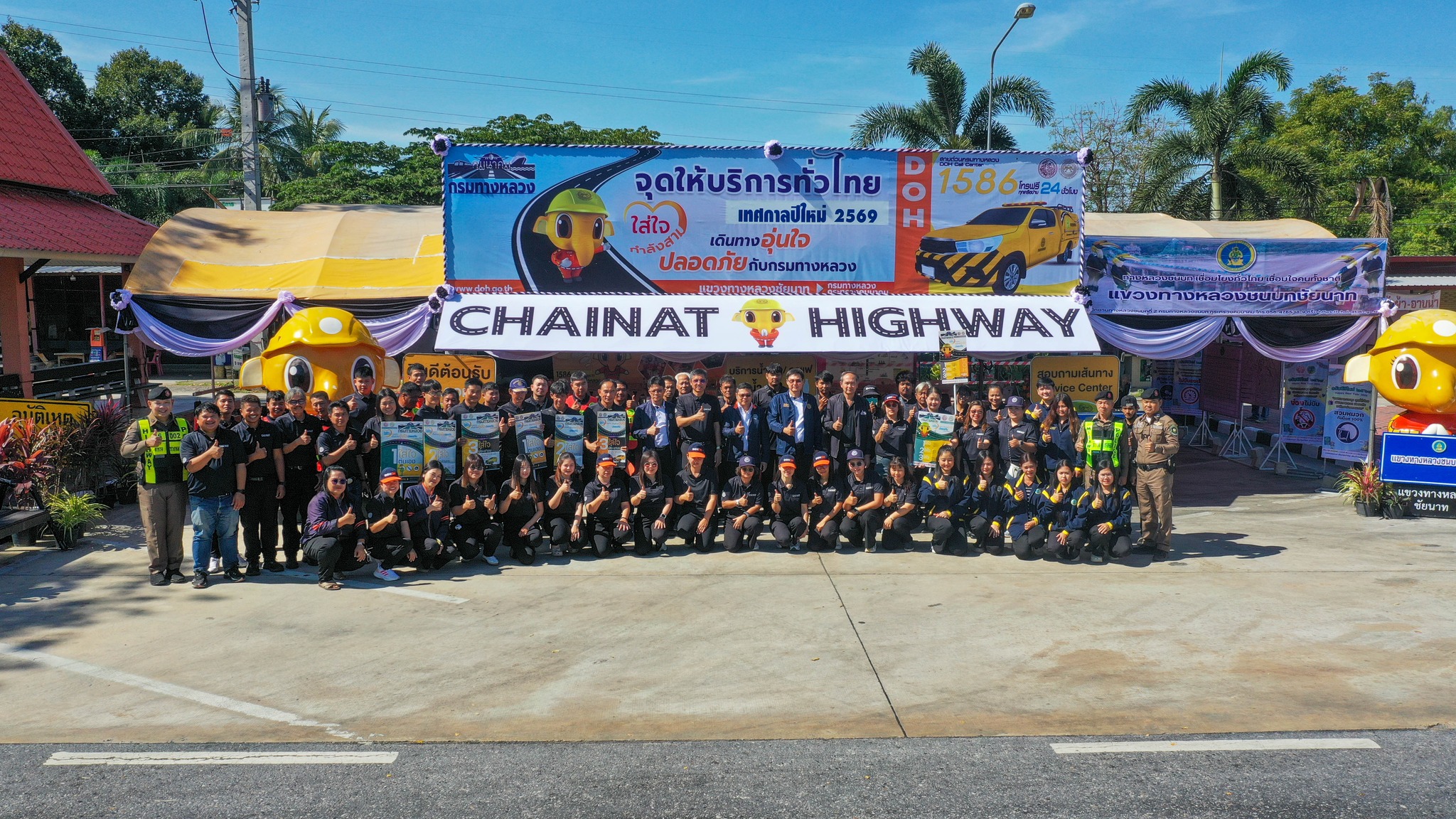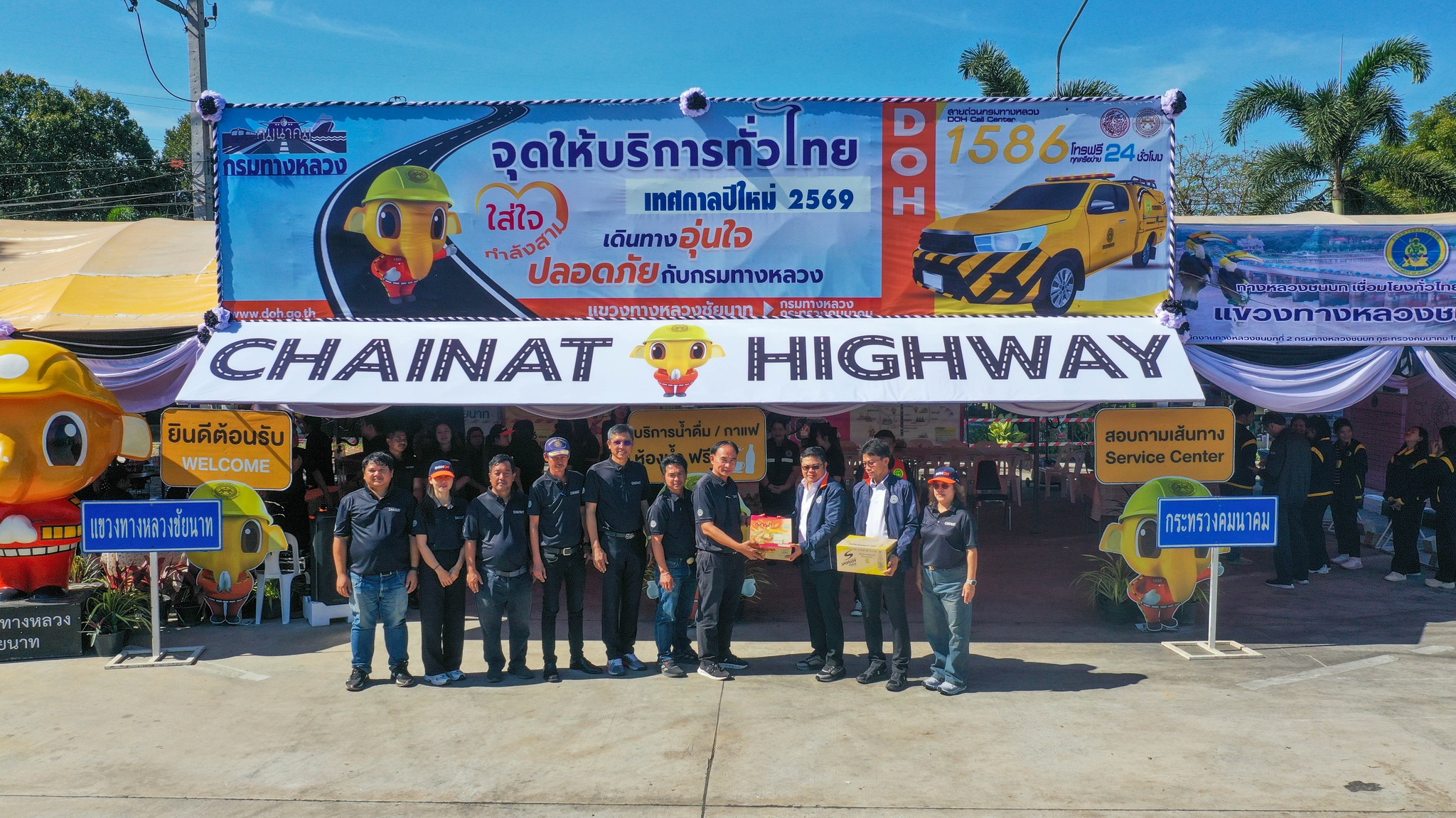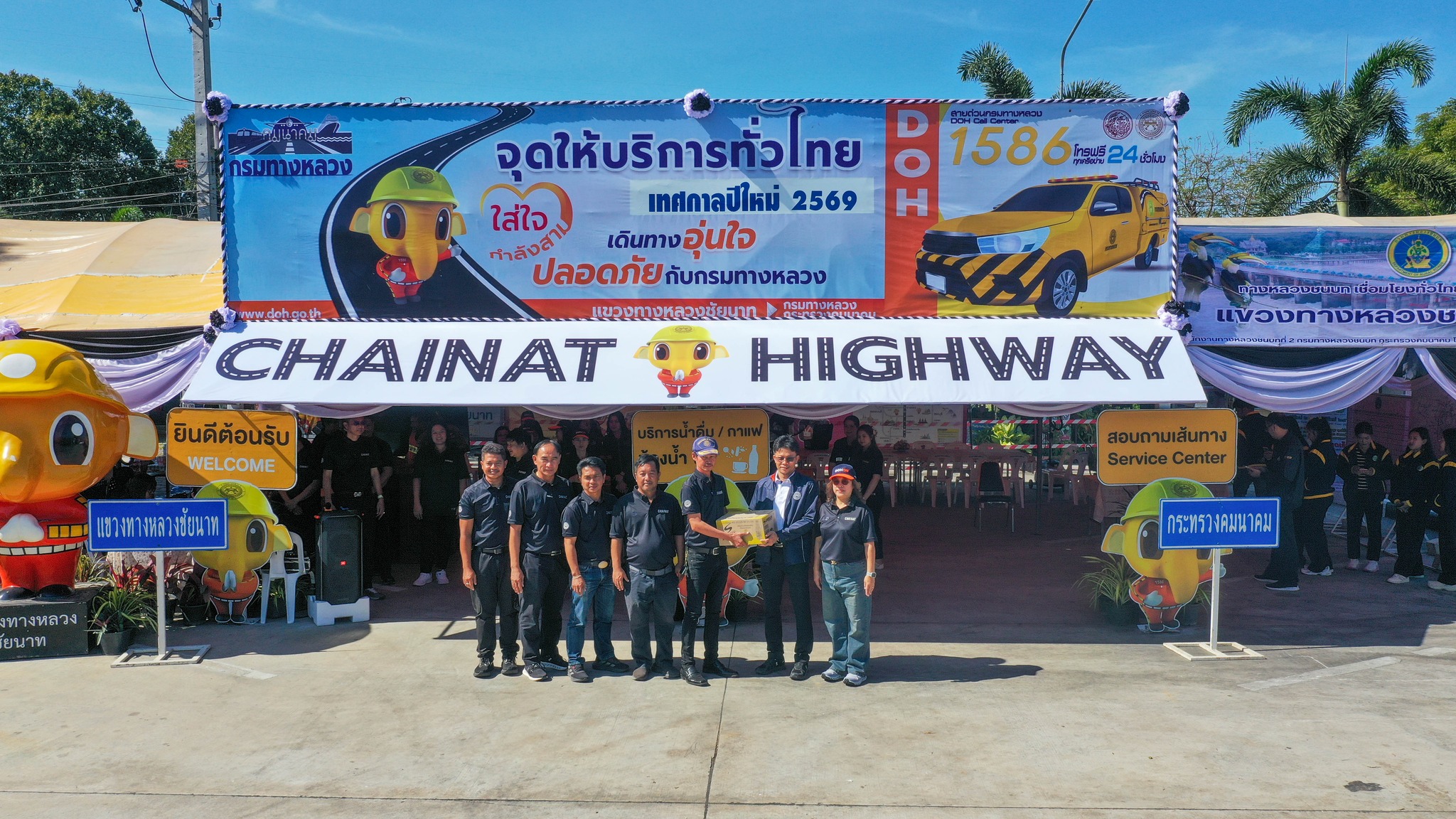 เวลา 11.00 น. นายจิรวัฒน์ ทรงผาสุข ผู้อำนวยการสำนักงานทางหลวงที่12 สุพรรณบุรี เป็นประธานในพิธีเปิด “ศูนย์อำนวยความสะดวกและปลอดภัยทางถนนช่วงเทศกาลปีใหม่ 2569“ ของแขวงทางหลวงชัยนาท โดยมี นายสมโภช โอทาตะ รองผู้อำนวยการสำนักงานทางหลวงที่ 12.2 , นายเชาวลิต นาประจุล ผู้อำนวยการส่วนตรวจสอบและวิเคราะห์ฯ นายสุรศักดิ์ พูลทรัพย์ ผู้อำนวยการแขวงทางหลวงชัยนาท ผู้บริหารและเจ้าหน้าที่แขวงทางหลวงชัยนาท พร้อมด้วยตำรวจทางหลวง แขวงทางหลวงชนบทชัยนาท ให้เกียรติเข้าร่วมพิธีเปิดศูนย์ฯ อย่างพร้อมเพรียง ณ บริเวณจุดพักรถอู่ตะเภา บนทางหลวงหมายเลข 32 ตอน โพนางดำออก - ท่าฉนวน ที่ กม.137+650 (ขาออก กทม.)