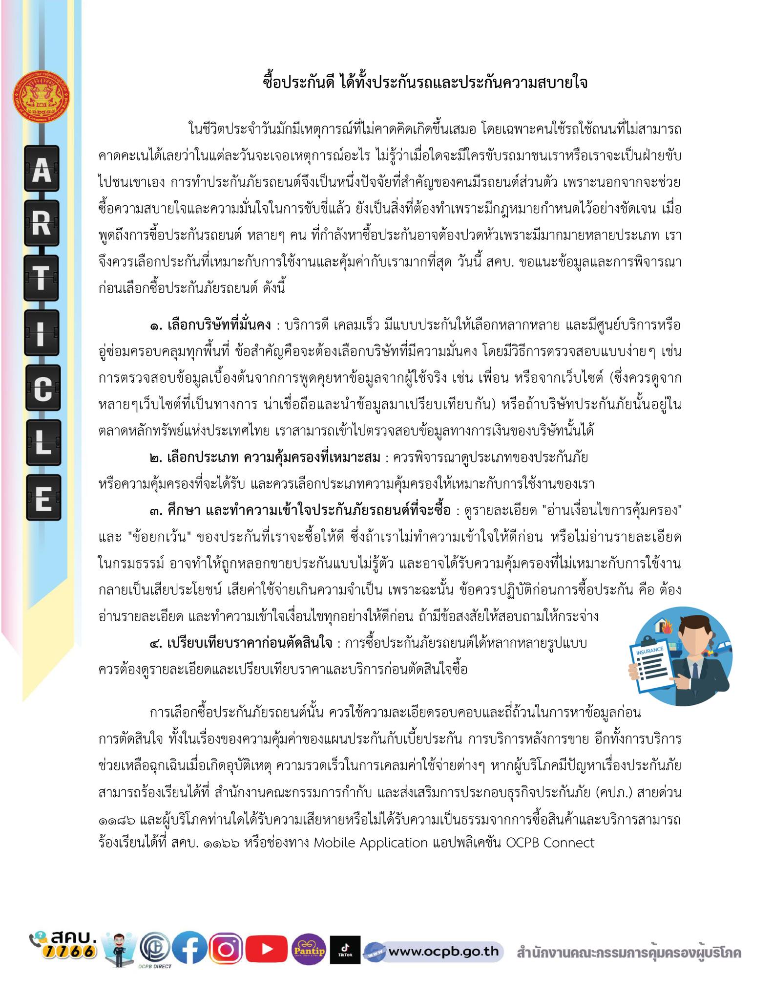 สำนักงานคณะกรรมการคุ้มครองผู้บริโภค ประชาสัมพันธ์ ข่าว สคบ. ด้านการคุ้มครองผู้บริโภค