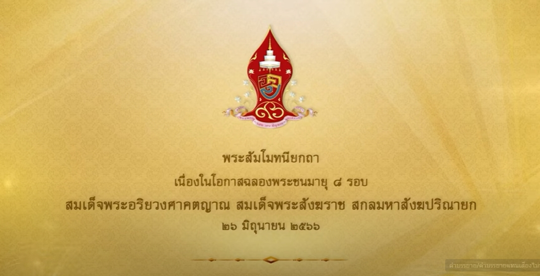 พระสัมโมทนียกถา เนื่องในโอกาสฉลองพระชนมายุ ๘ รอบ สมเด็จพระอริยวงศาคตญาณ สมเด็จพระสังฆราช สกลมหาสังฆปริณายก ๒๖ มิถุนายน ๒๕๖๖