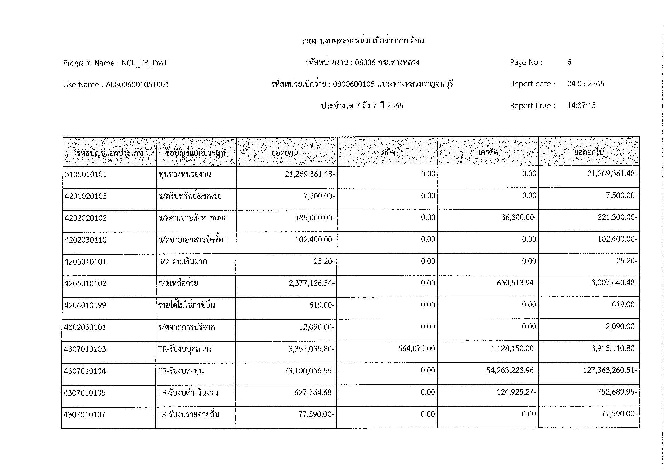 รายงานงบทดลองหน่วยเบิกจ่ายรายเดือน ประจำงวด 7 ประจำปีที่ 2565