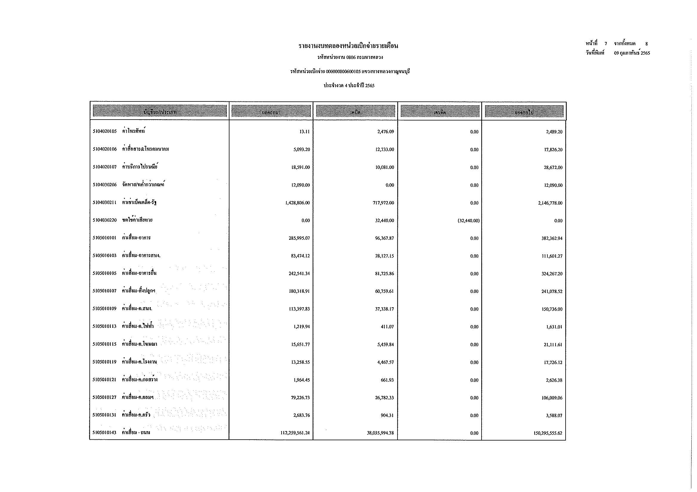 รายงานงบทดลองหน่วยเบิกจ่ายรายเดือน ประจำงวด 3 ประจำปีที่ 2565