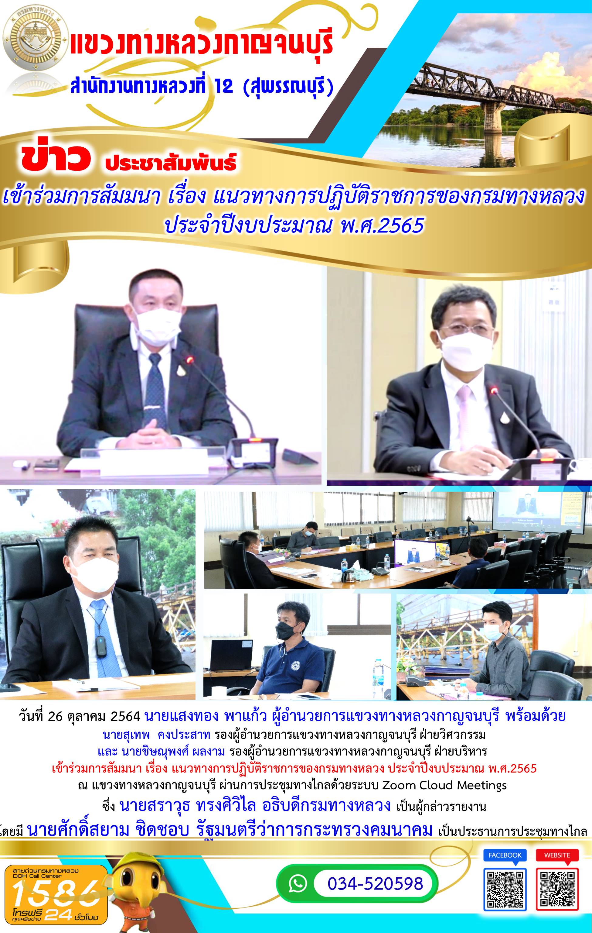 345 28/10/2564 เข้าร่วมการสัมมนา เรื่อง แนวทางการปฏิบัติราชการของกรมทางหลวง ประจำปีงบประมาณ พ.ศ.2565