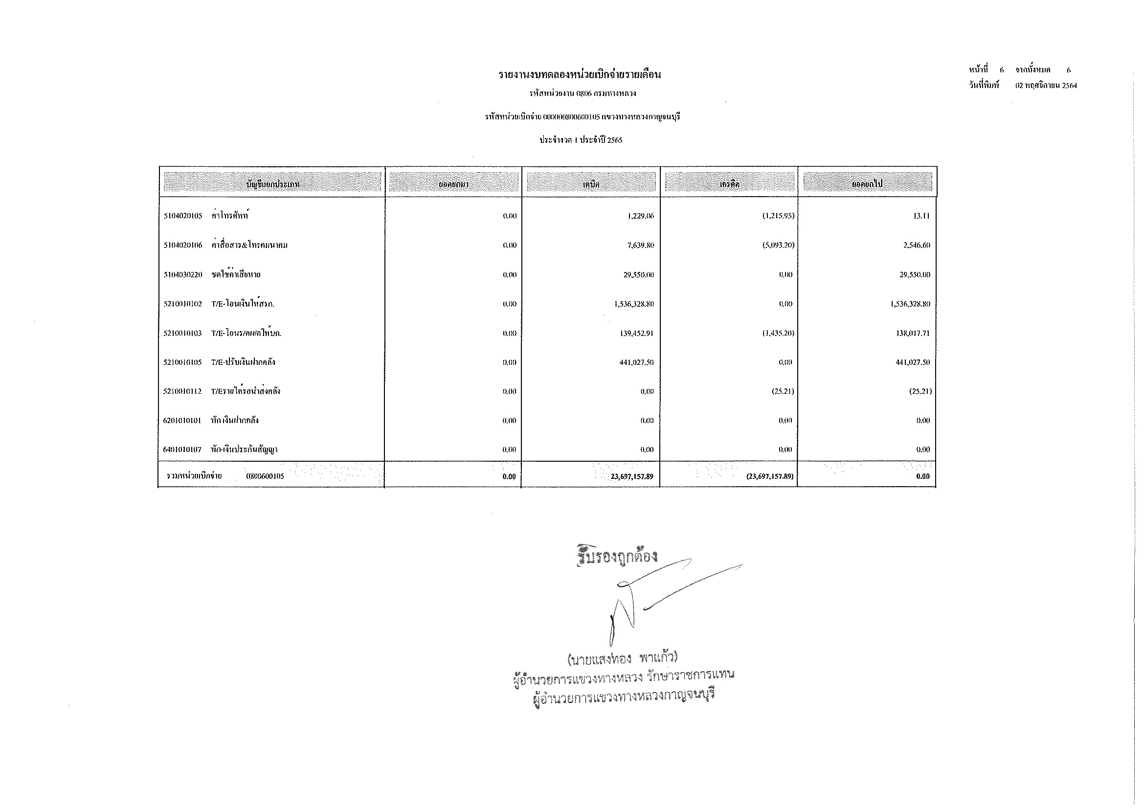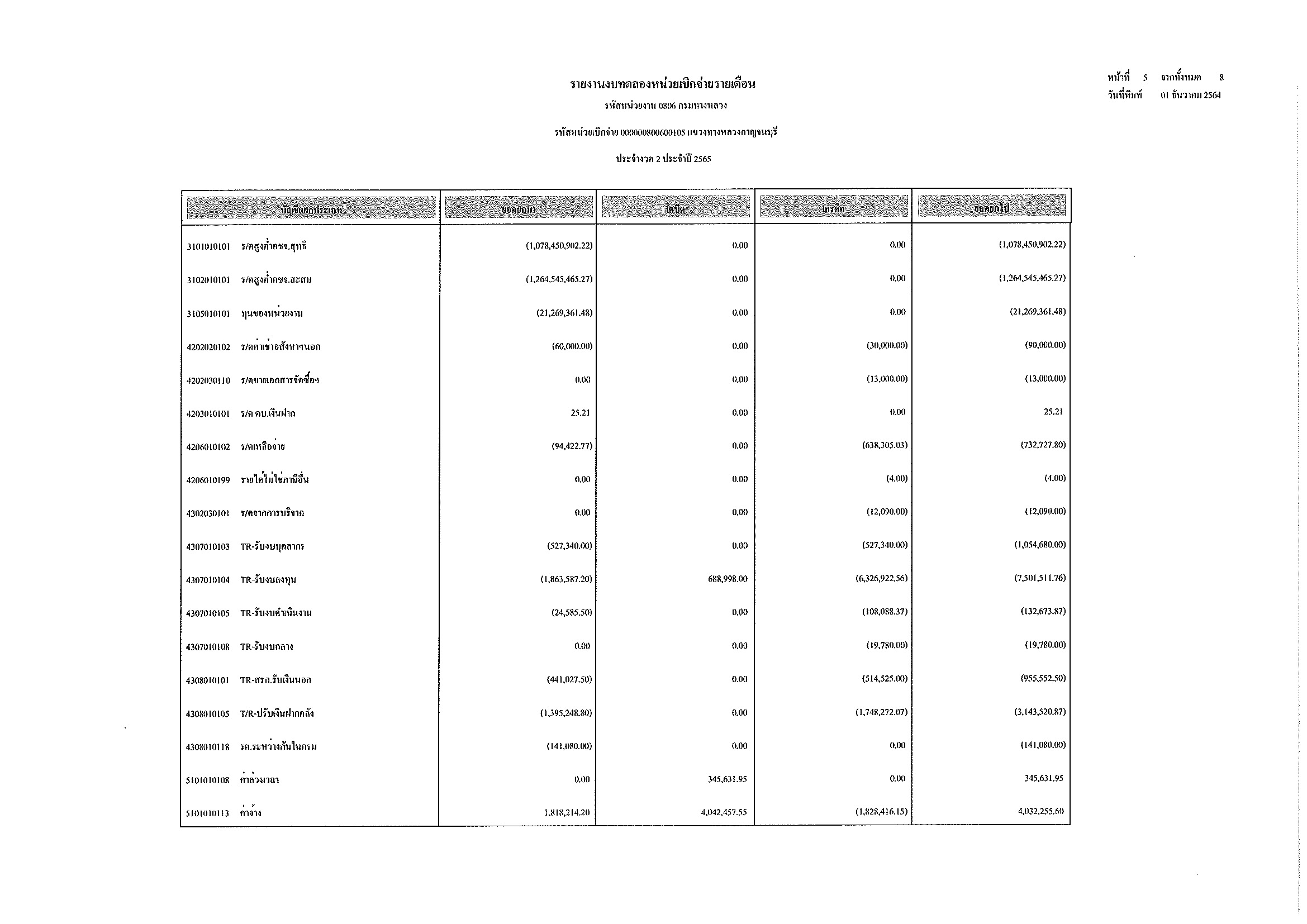 331 20/12/2564 รายงานงบทดลองหน่วยเบิกจ่ายรายเดือน ประจำงวด 2 ประจำปีที่ 2565