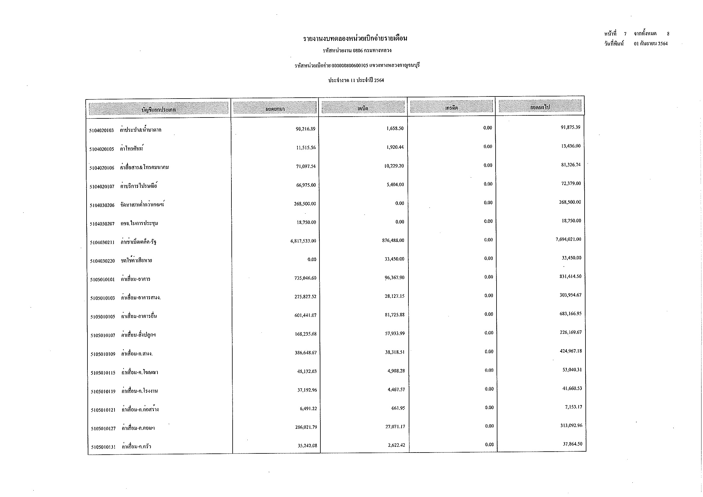 รายงานงบทดลองหน่วยเบิกจ่ายรายเดือน ประจำงวด 11 ประจำปีที่ 2564