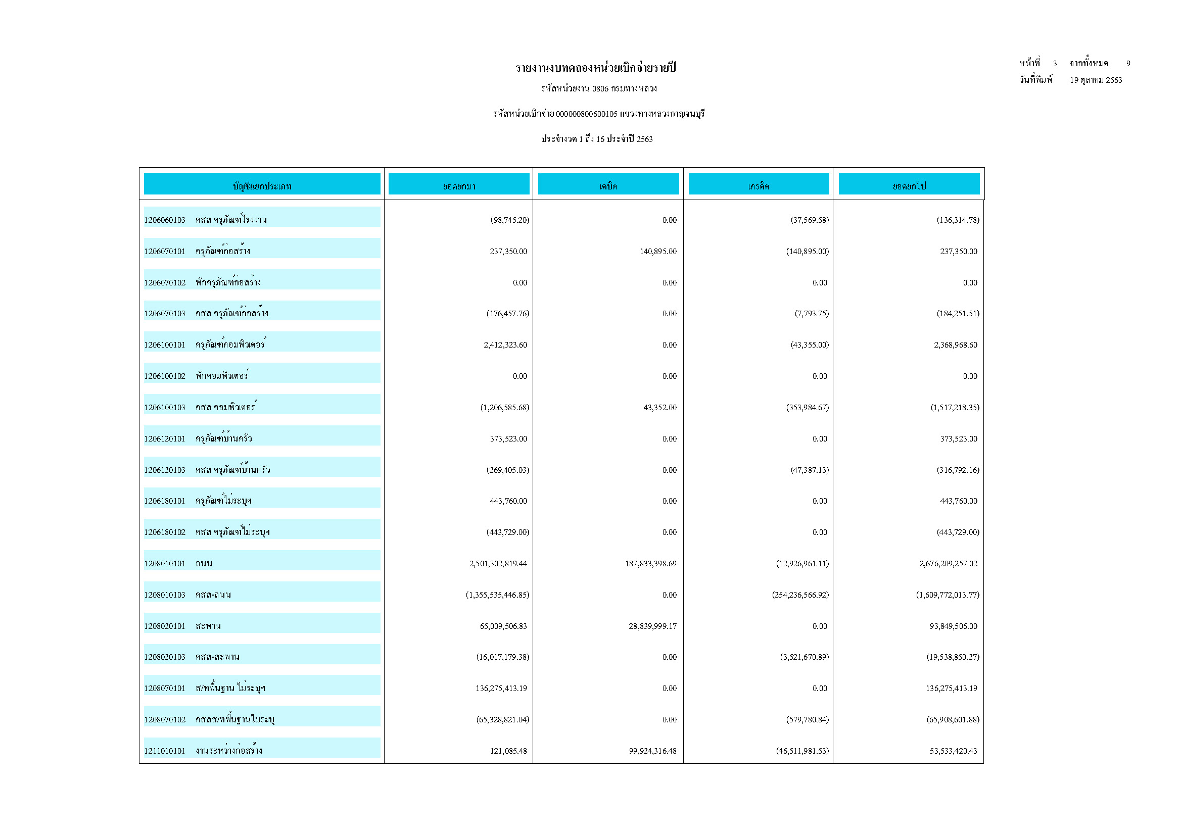 รายงานงบทดลองหน่วยเบิกจ่ายรายปี ประจำงวด 1 ถึง 16 ประจำปีที่ 2563