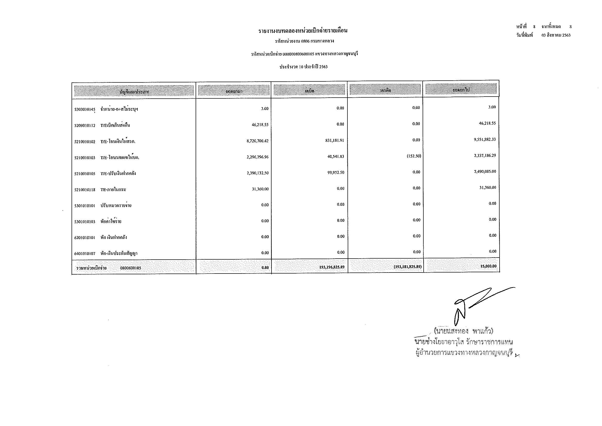 446 10/08/2563 รายงานงบทดลองหน่วยเบิกจ่ายรายเดือน ประจำงวด 10 ประจำปีที่ 2563