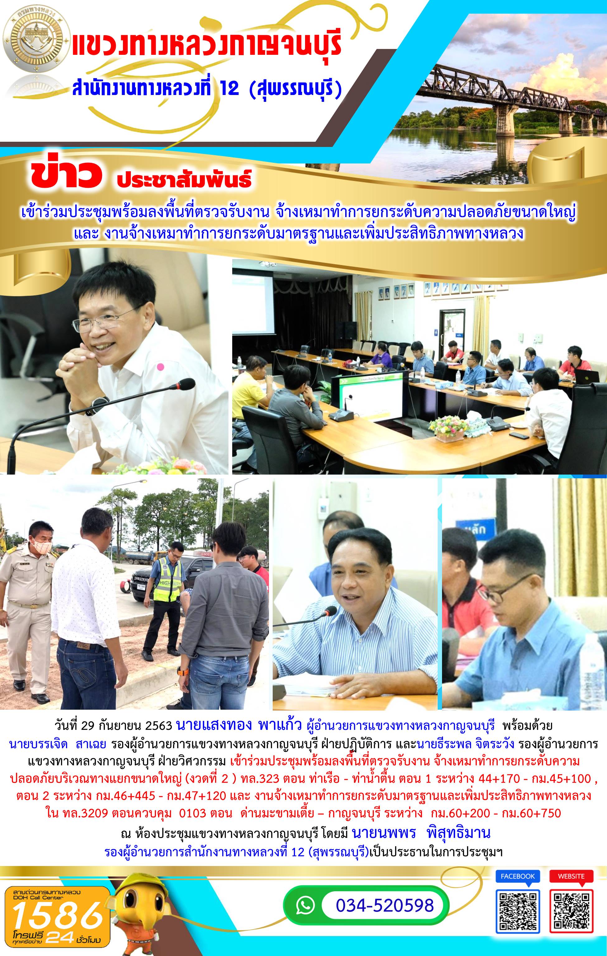 436 30/09/2563 เข้าร่วมประชุมพร้อมลงพื้นที่ตรวจรับงาน จ้างเหมาทำการยกระดับความปลอดภัยขนาดใหญ่ และ งานจ้างเหมาทำการยกระดับมาตรฐานและเพิ่มประสิทธิภาพทางหลวง