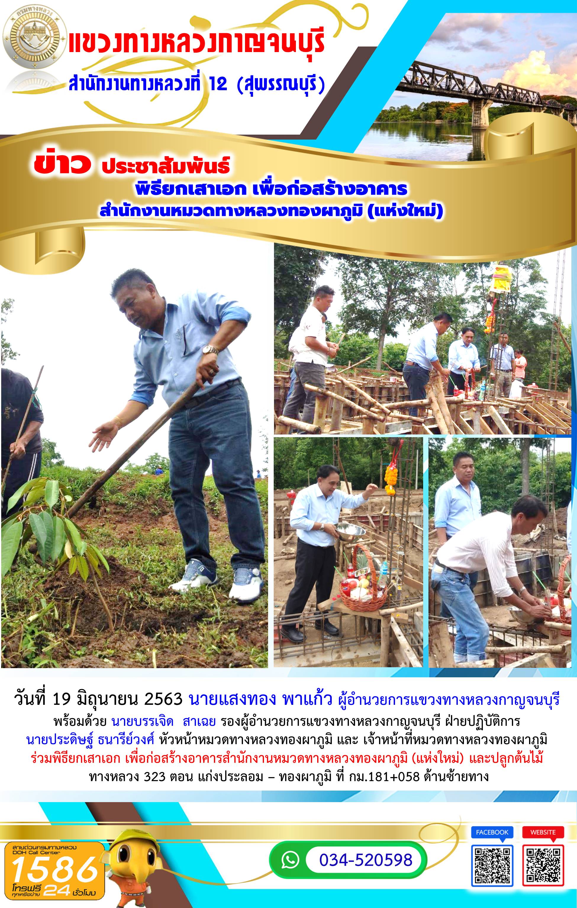 461 19/06/2563 พิธียกเสาเอก เพื่อก่อสร้างอาคาร สำนักงานหมวดทางหลวงทองผาภูมิ (แห่งใหม่)