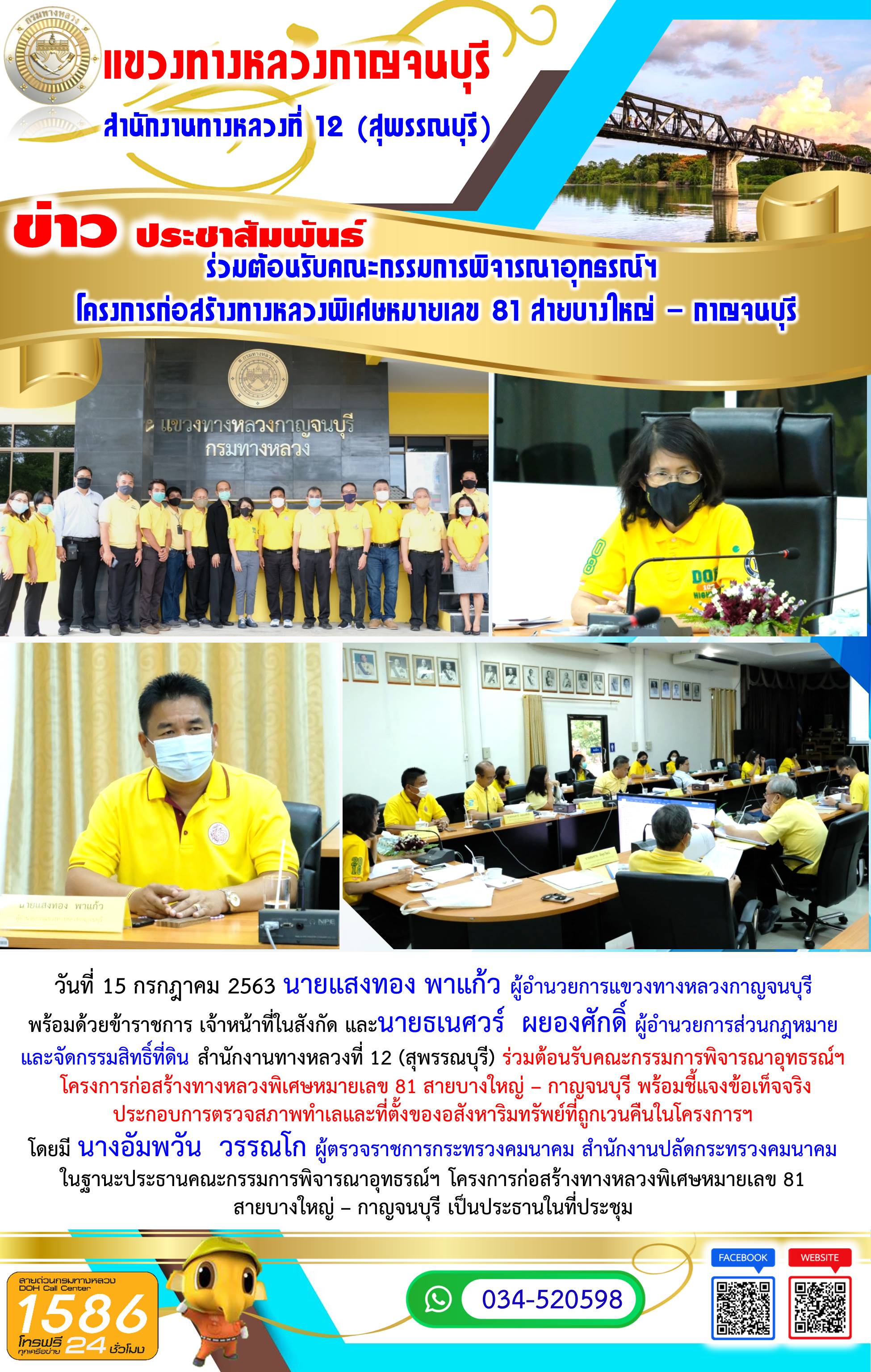 451 15/07/2563 ร่วมต้อนรับคณะกรรมการพิจารณาอุทธรณ์ฯ โครงการก่อสร้างทางหลวงพิเศษหมายเลข 81 สายบางใหญ่ - กาญจนบุรี