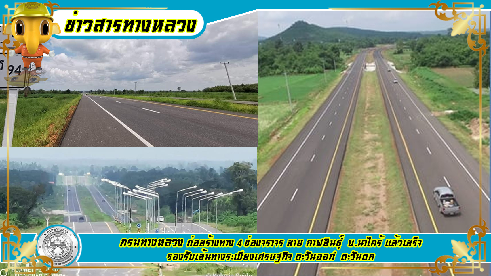 กรมทางหลวง ก่อสร้างทาง 4 ช่องจราจร สาย กาฬสินธุ์ – บ.นาไคร้ แล้วเสร็จ รองรับเส้นทางระเบียงเศรษฐกิจ ตะวันออก – ตะวันตก