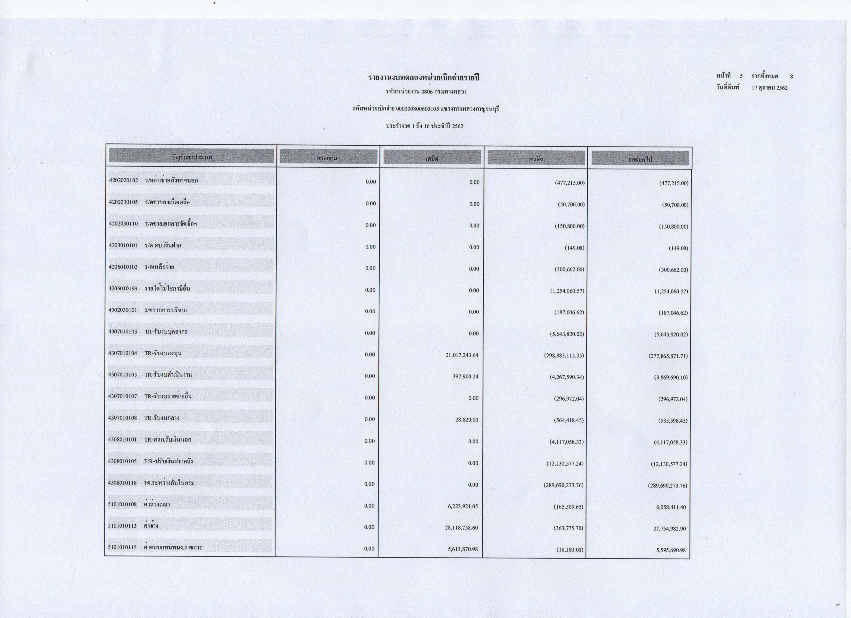 รายงานงบทดลองหน่วยเบิกจ่ายประจำปี 2562