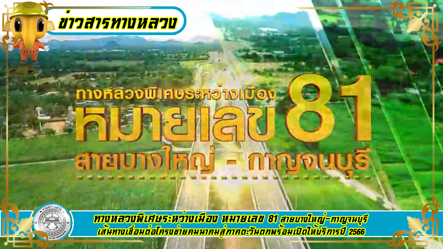 ทางหลวงพิเศษระหว่างเมือง หมายเลข 81 สายบางใหญ่-กาญจนบุรี เส้นทางเชื่อมต่อโครงข่ายคมนาคมสู่ภาคตะวันตกพร้อมเปิดให้บริการปี 2566