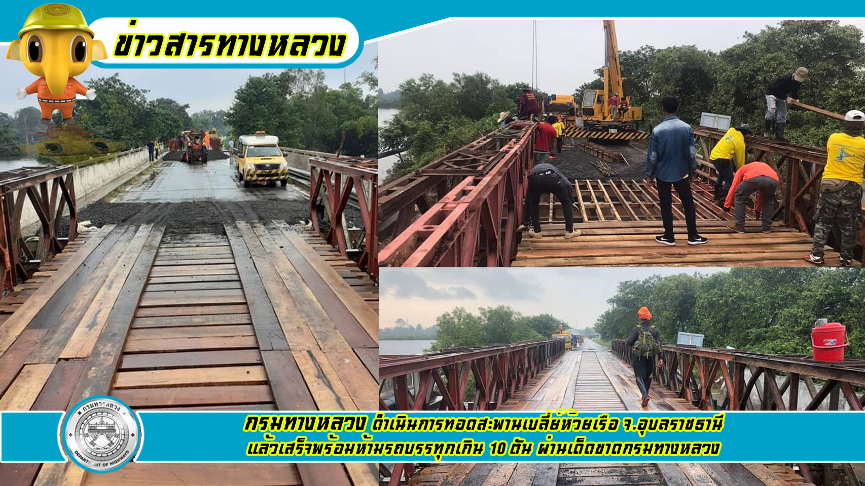582 23/09/2562 ผ่านได้แล้ว! กรมทางหลวง ดำเนินการทอดสะพานเบลี่ย์ห้วยเรือ จ.อุบลราชธานี แล้วเสร็จพร้อมห้ามรถบรรทุกเกิน 10 ตัน ผ่านเด็ดขาด กรมทางหลวง