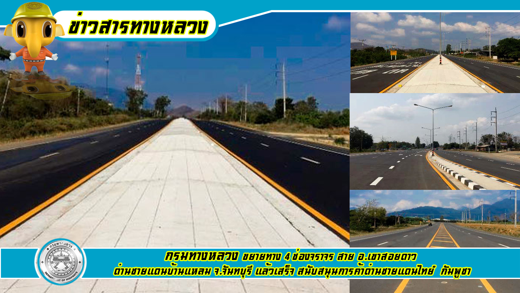 581 03/10/2562 กรมทางหลวง ขยายทาง 4 ช่องจราจร สาย อ.เขาสอยดาว – ด่านชายแดนบ้านแหลม จ.จันทบุรี แล้วเสร็จ สนับสนุนการค้าด่านชายแดนไทย – กัมพูชา