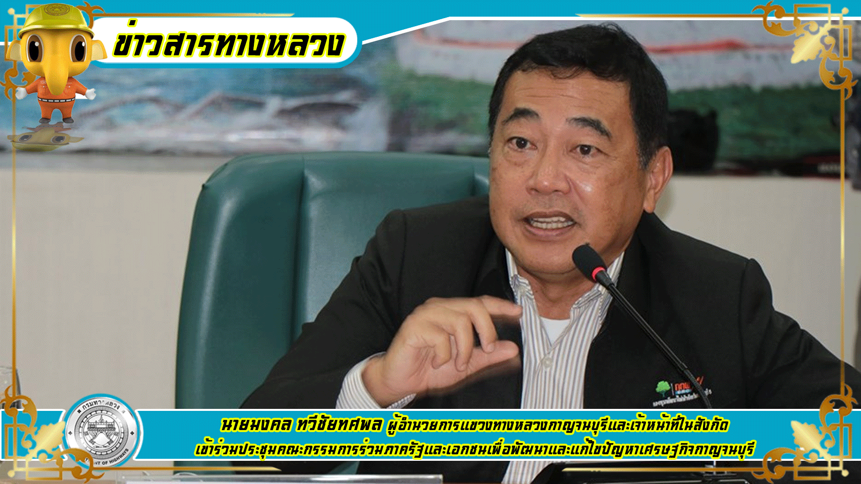 571 22/10/2562 วันที่ 21 ต.ค.2562 นายมงคล ทวีชัยทศพล ผู้อำนวยการแขวงทางหลวงกาญจนบุรีและเจ้าหน้าที่ในสังกัด เข้าร่วมประชุมคณะกรรมการร่วมภาครัฐและเอกชนเพื่อพัฒนาและแก้ไขปัญหาเศรษฐกิจกาญจนบุรี ณ ห้องประชุมแควน้อย ชั้น 3 ศาลากลางจังหวัดกาญจนบุรี โดยมี นายจีระเกียรติ ภูมิสวัสดิ์ ผู้ว่าราชการจังหวัดกาญจนบุรี เป็นประธานการประชุม