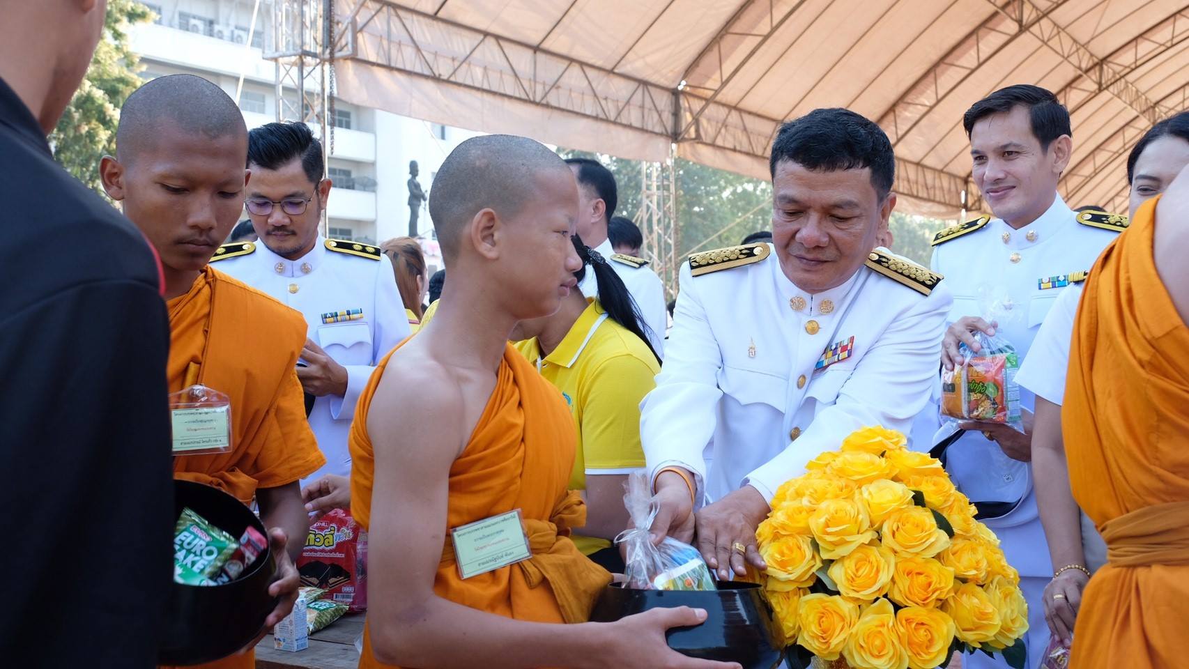 734 05/12/2561 นายมงคล ทวีชัยทศพล ผู้อำนวยการแขวงทางหลวงกาญจนบุรี มอบหมายให้นายธีระพล จิตระวัง รองผู้อำนวยการแขวงทางหลวงกาญจนบุรี ฝ่ายวิศวกรรม และคณะเจ้าหน้าที่ในสังกัด เข้าร่วมงานพิธีทำบุญตักบาตรและพิธีถวายพานพุ่มราชสักการะ ถวายราชสดุดีและถวายบังคม 5/12/61