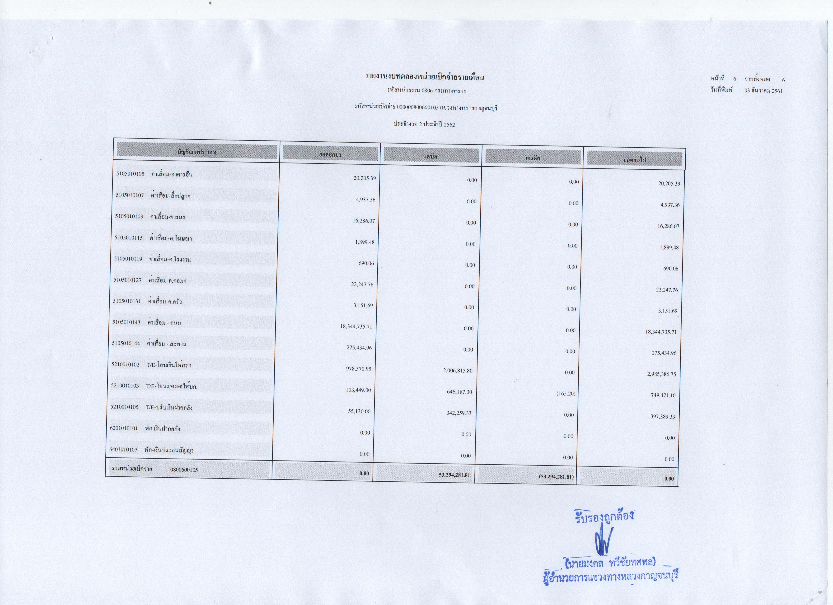 733 06/12/2561 รายงานงบทดลองหน่วยเบิกจ่ายรายเดือน ประจำงวดที่ 2 ประจำปี 2562