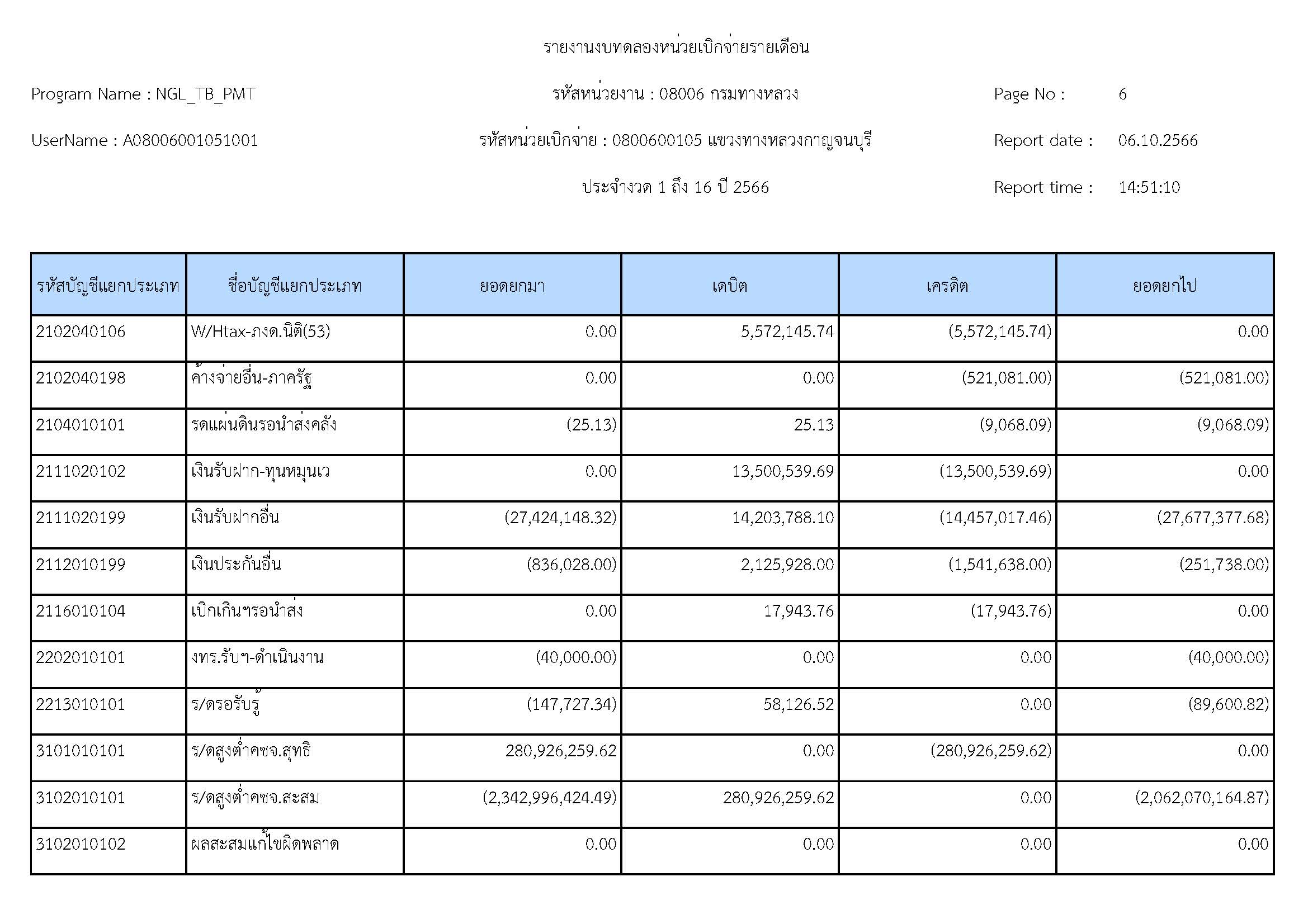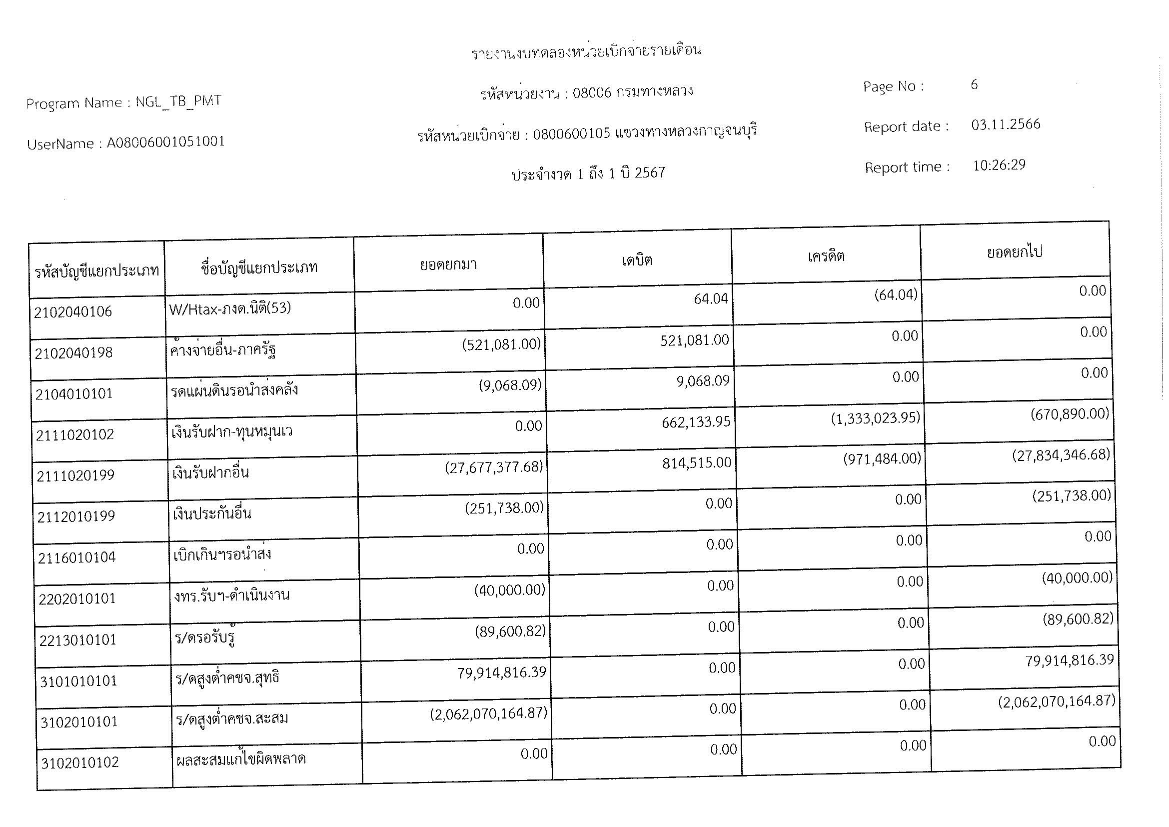 รายงานงบทดลองหน่วยเบิจจ่ายรายเดือน