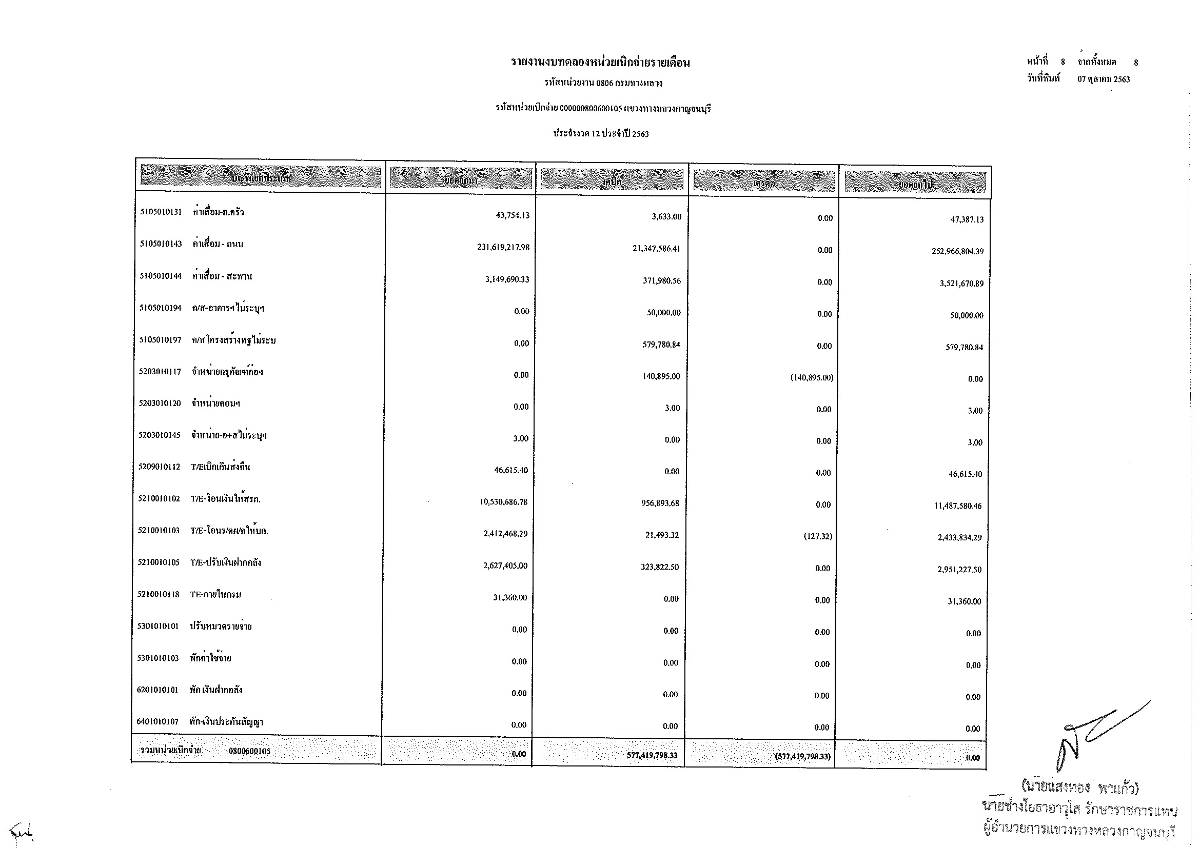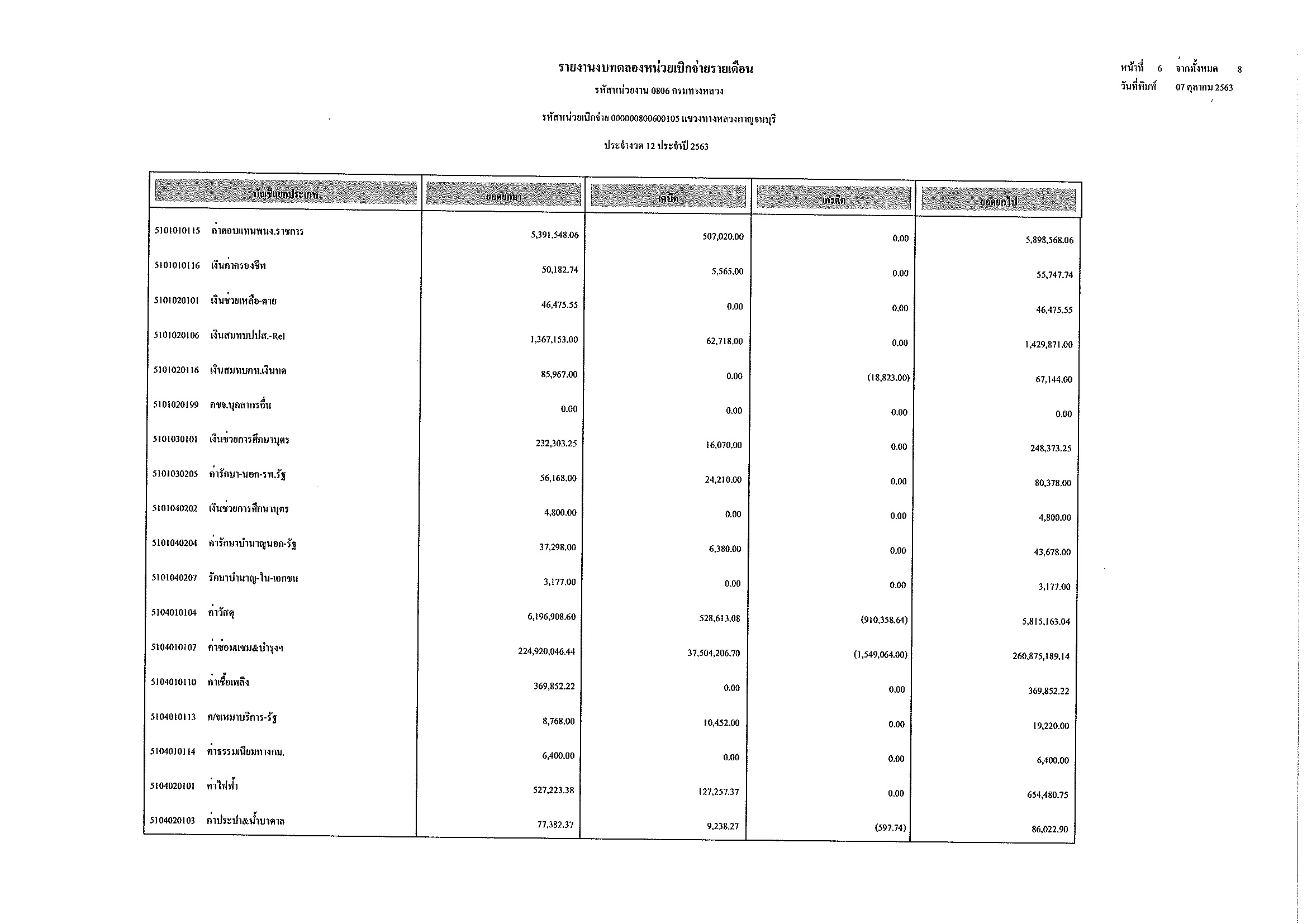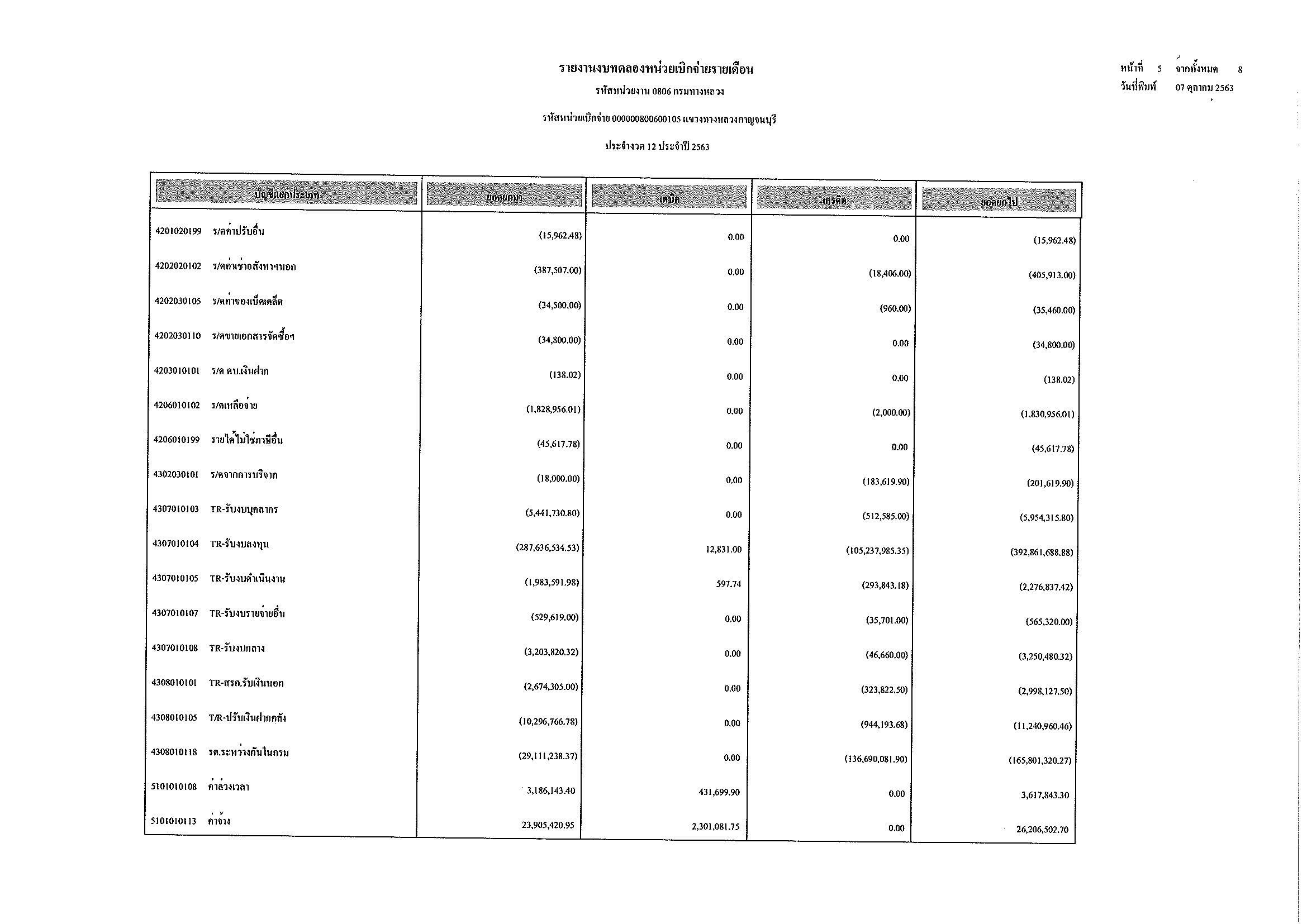 รายงานงบทดลองหน่วยเบิกจ่ายรายเดือน ประจำงวด 12 ประจำปีที่ 2563