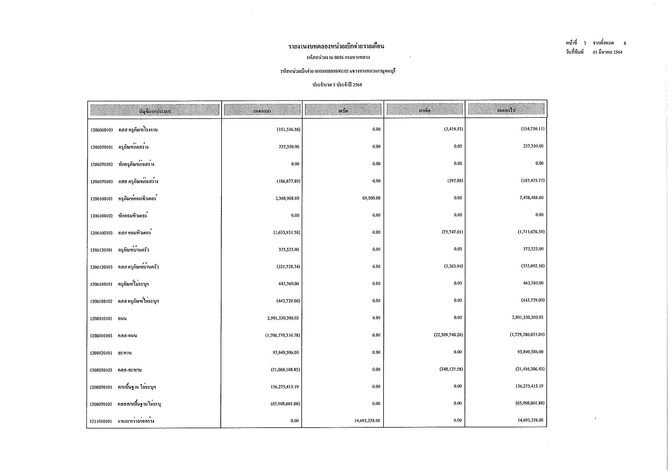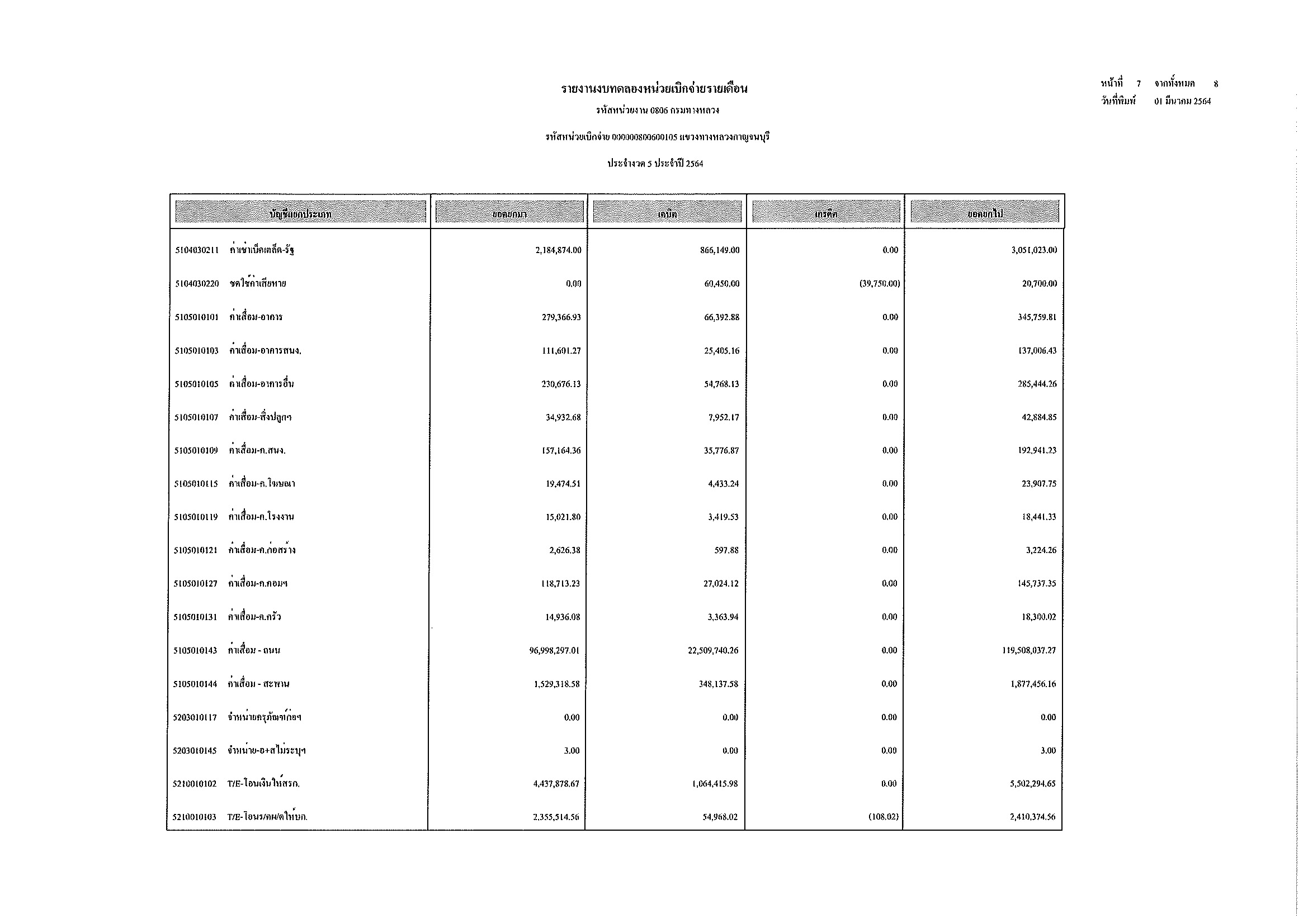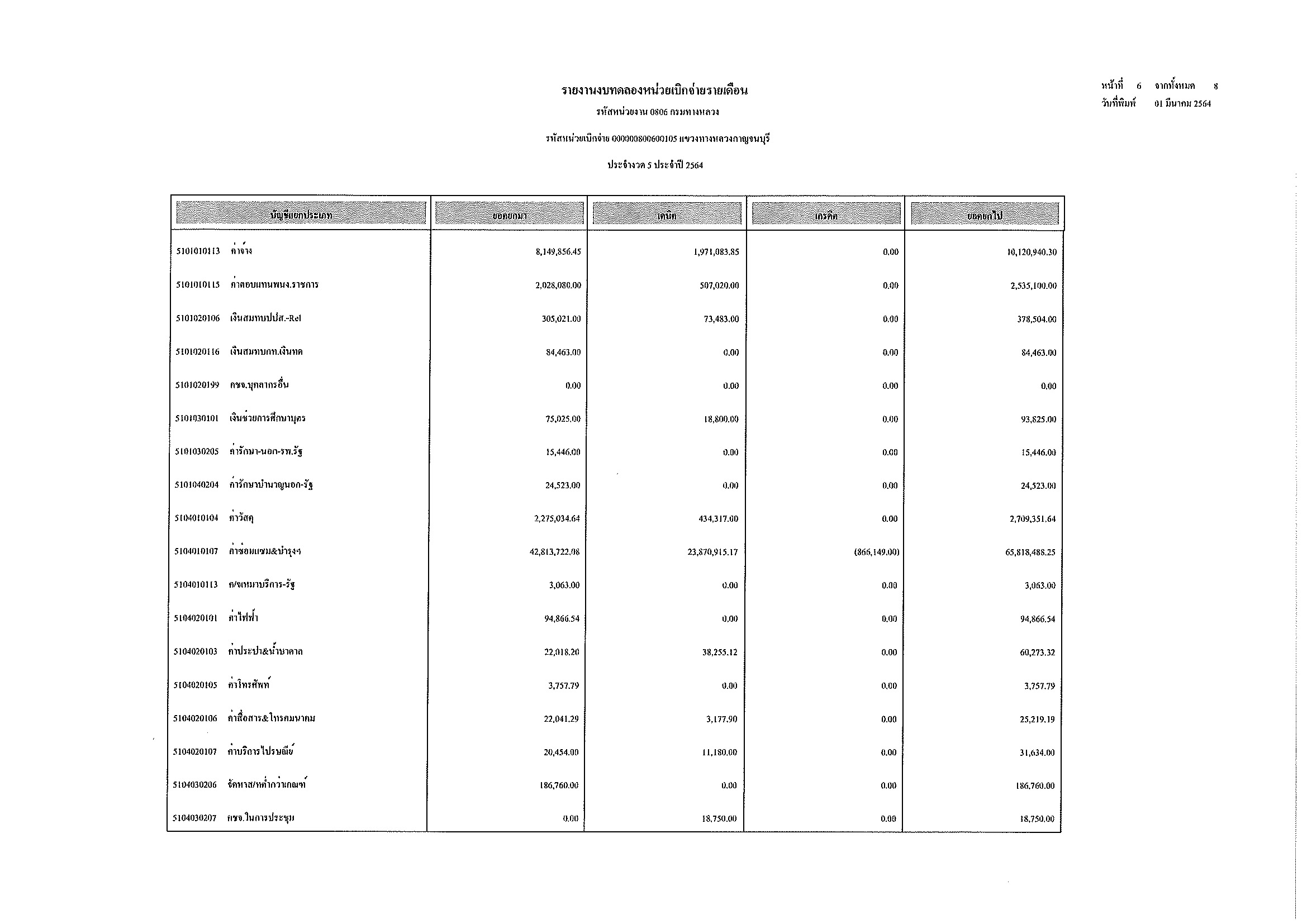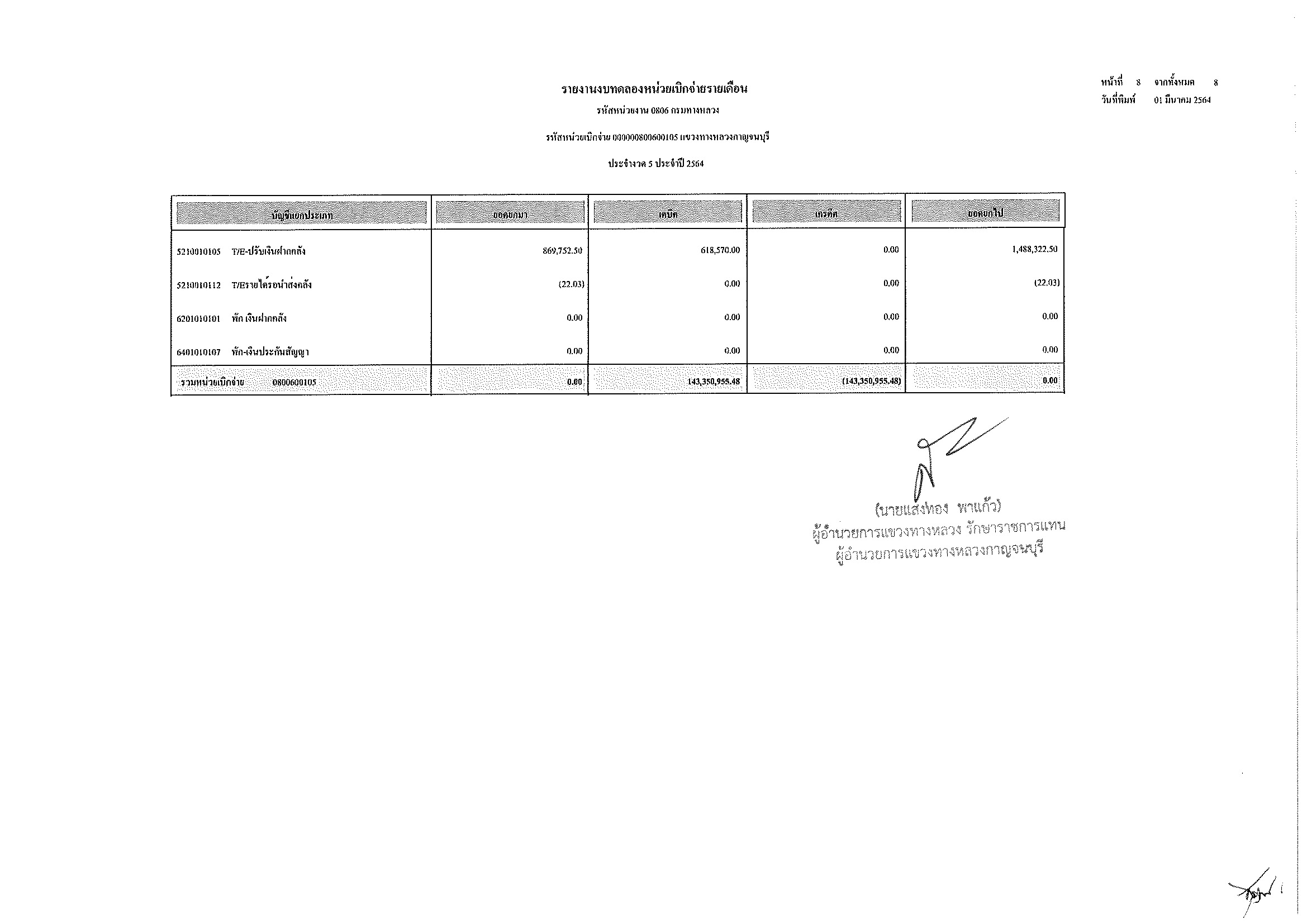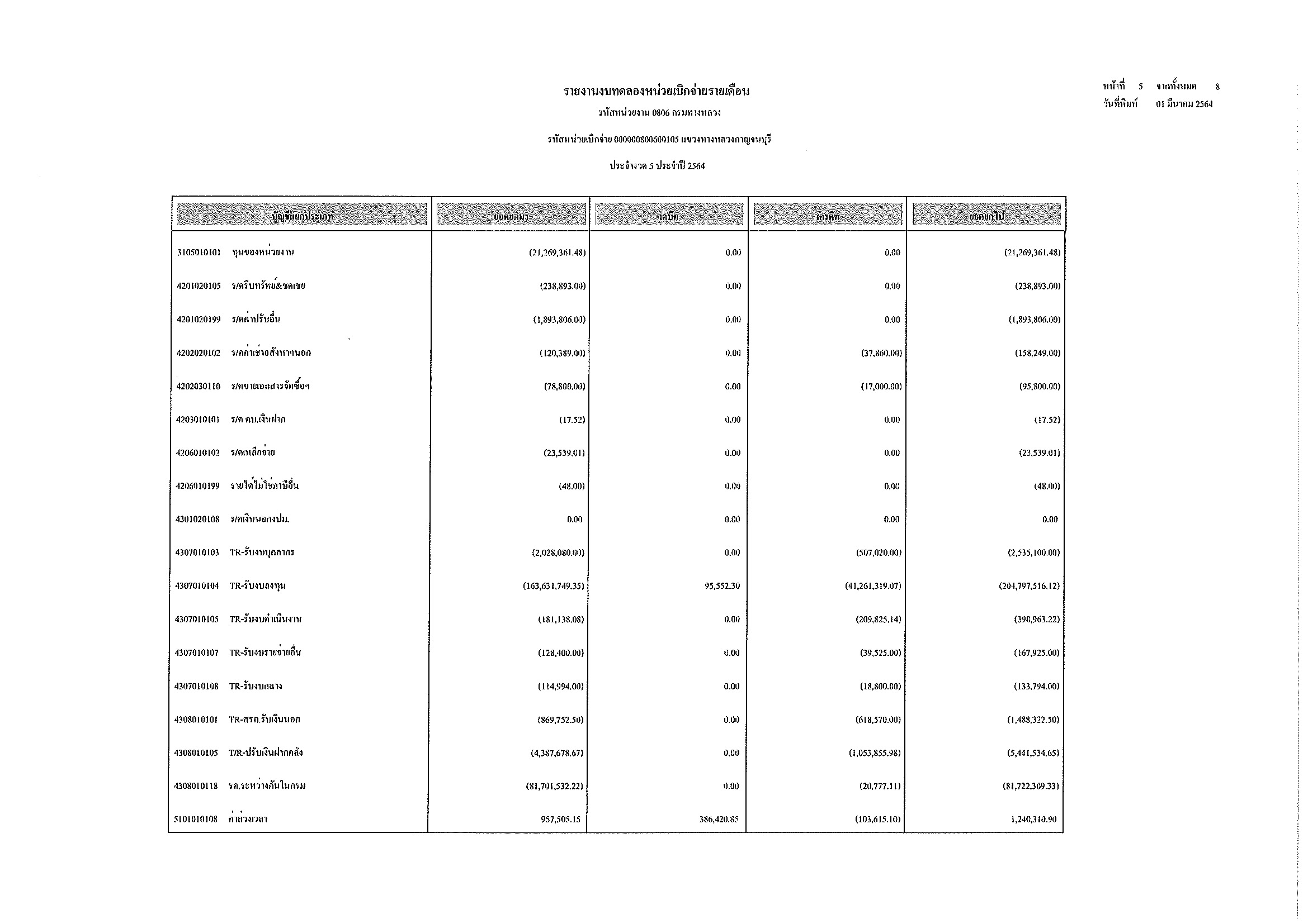 รายงานงบทดลองหน่วยเบิกจ่ายรายเดือน ประจำงวด 5 ประจำปีที่ 2564