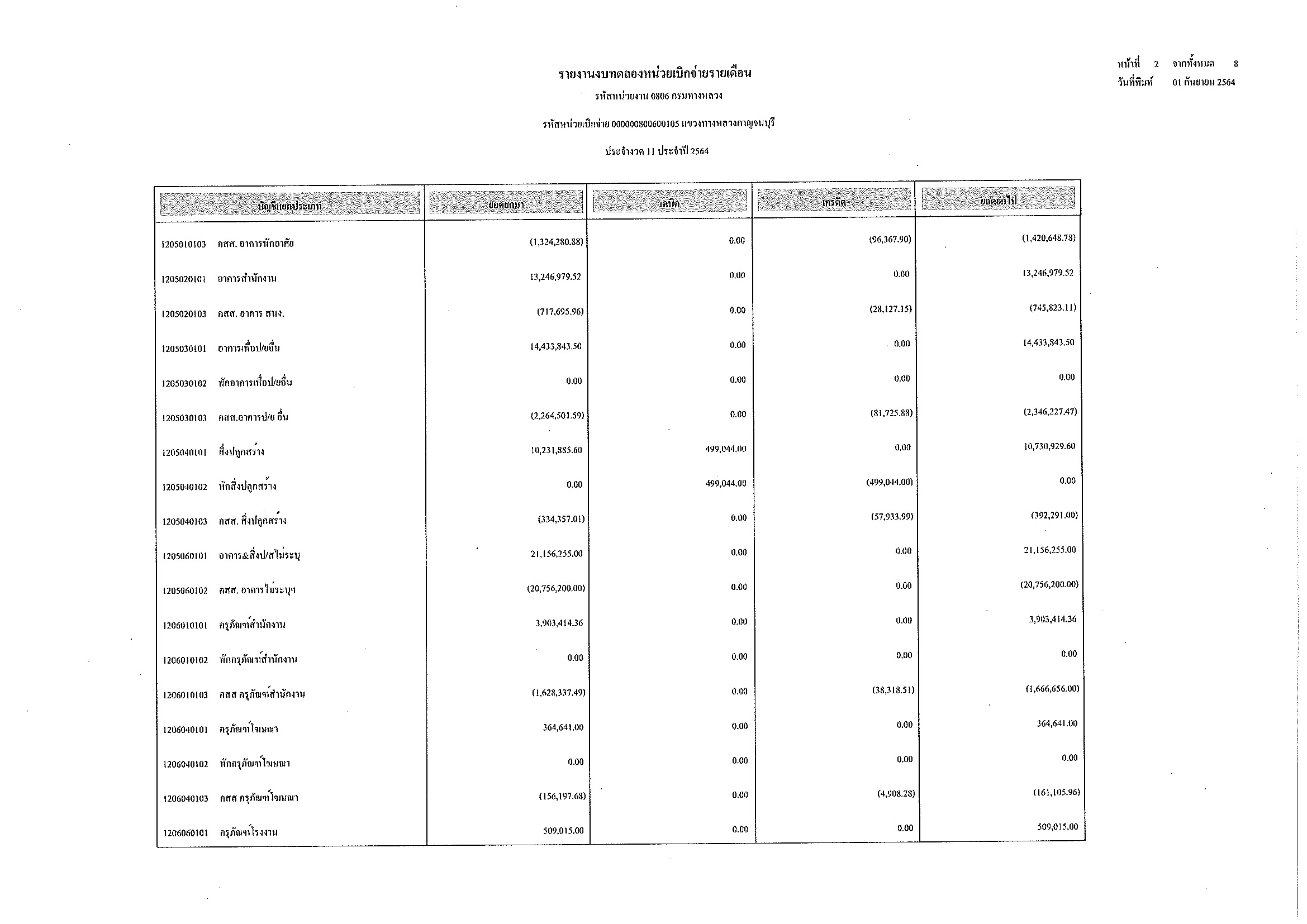 รายงานงบทดลองหน่วยเบิกจ่ายรายเดือน ประจำงวด 11 ประจำปีที่ 2564
