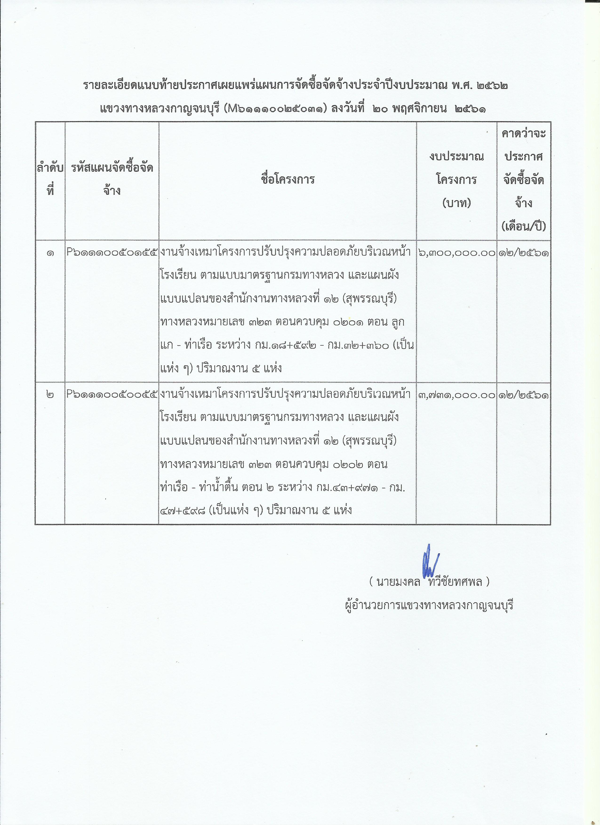ข้อมูลข่าว : ประกาศเรื่อง เผยแพร่แผนการจัดซื้อจัดจ้าง 20/11/61