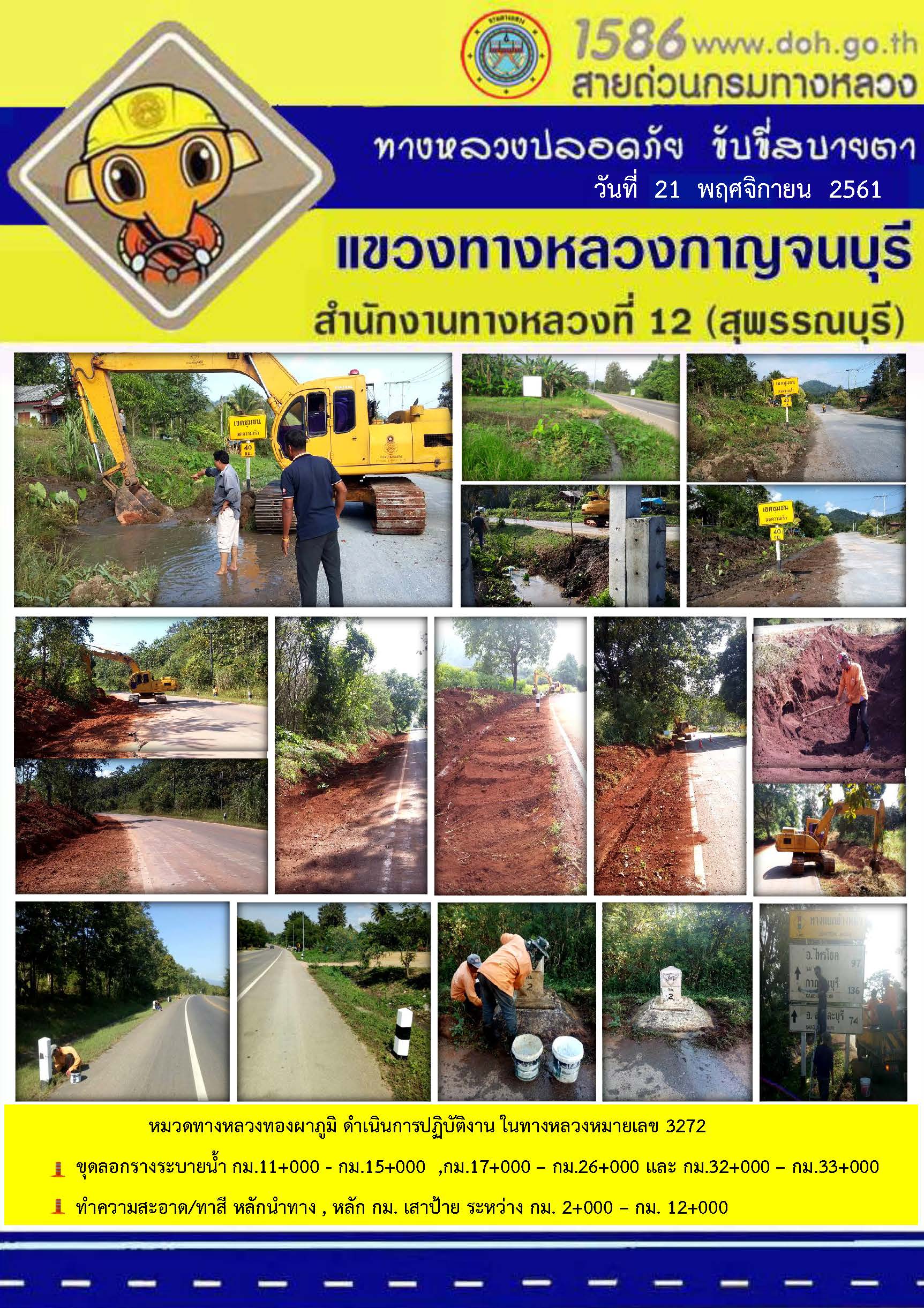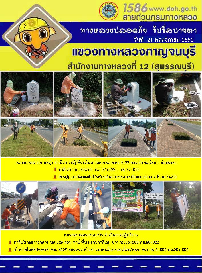 ข้อมูลข่าว : งานอำนวยความสะดวกและความปลอดภัย โดยแขวงทางหลวงกาญจนบุรี 21/11/61