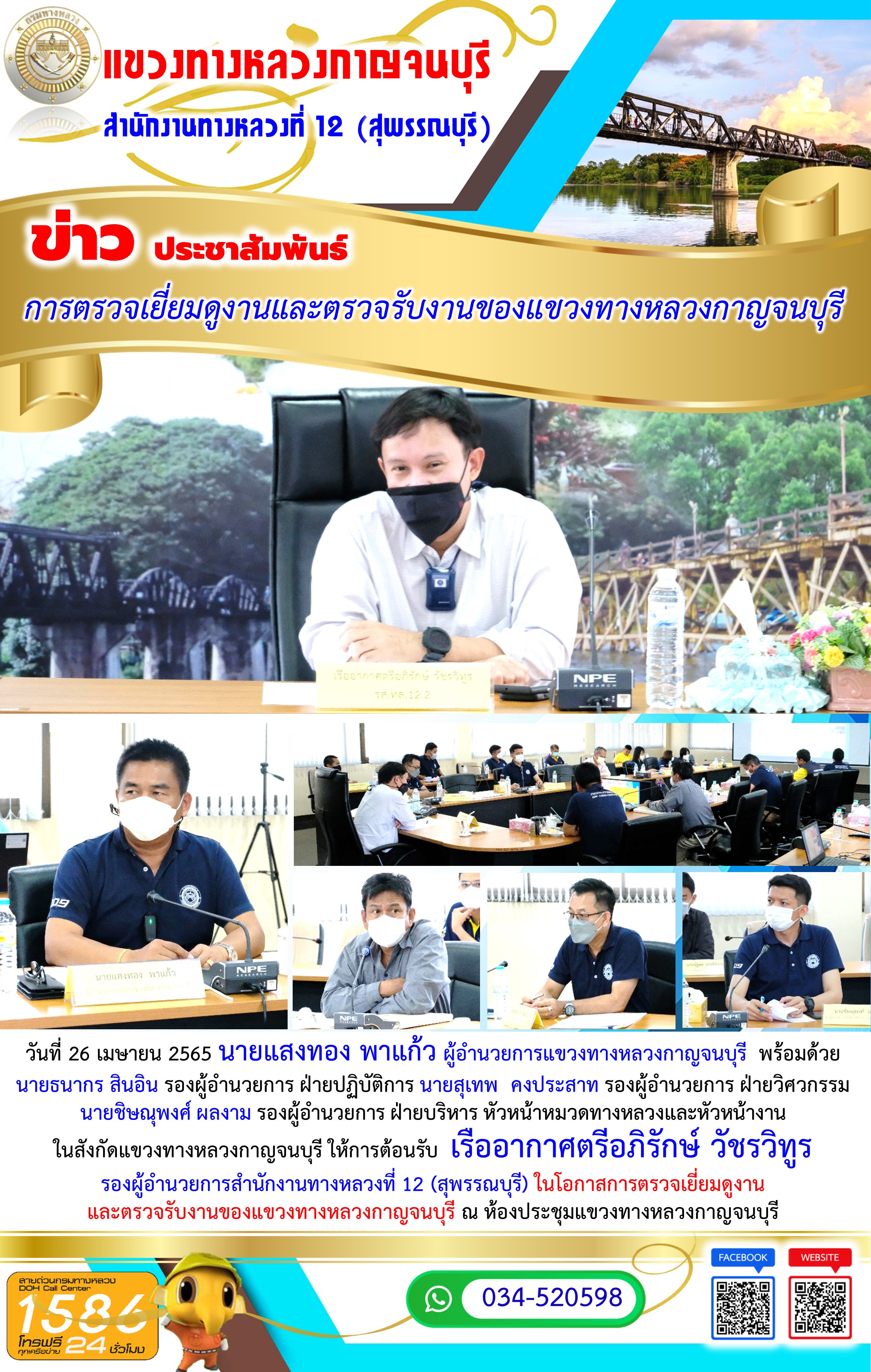 วันที่ 26 เมษายน 2565 นายแสงทอง พาแก้ว ผู้อำนวยการแขวงทางหลวงกาญจนบุรี