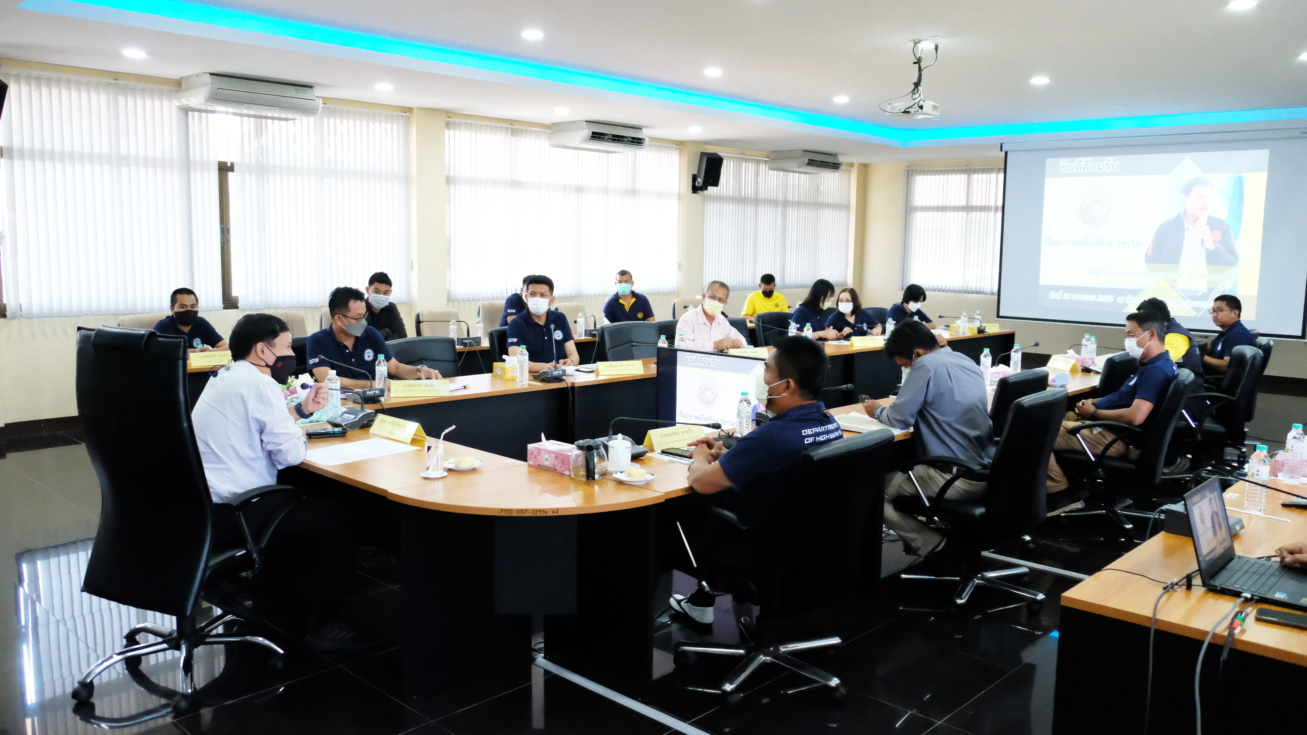 วันที่ 26 เมษายน 2565 นายแสงทอง พาแก้ว ผู้อำนวยการแขวงทางหลวงกาญจนบุรี พร้อมด้วย นายธนากร สินอิน รองผู้อำนวยการ ฝ่ายปฏิบัติการ นายสุเทพ คงประสาท รองผู้อำนวยการ ฝ่ายวิศวกรรม นายชิษณุพงศ์ ผลงาม รองผู้อำนวยการ ฝ่ายบริหาร หัวหน้าหมวดทางหลวงและหัวหน้างาน ในสังกัดแขวงทางหลวงกาญจนบุรี ให้การต้อนรับ เรืออากาศตรีอภิรักษ์ วัชรวิทูร รองผู้อำนวยการสำนักงานทางหลวงที่ 12 (สุพรรณบุรี) ในโอกาสการตรวจเยี่ยมดูงานและตรวจรับงานของแขวงทางหลวงกาญจนบุรี ณ ห้องประชุมแขวงทางหลวงกาญจนบุรี