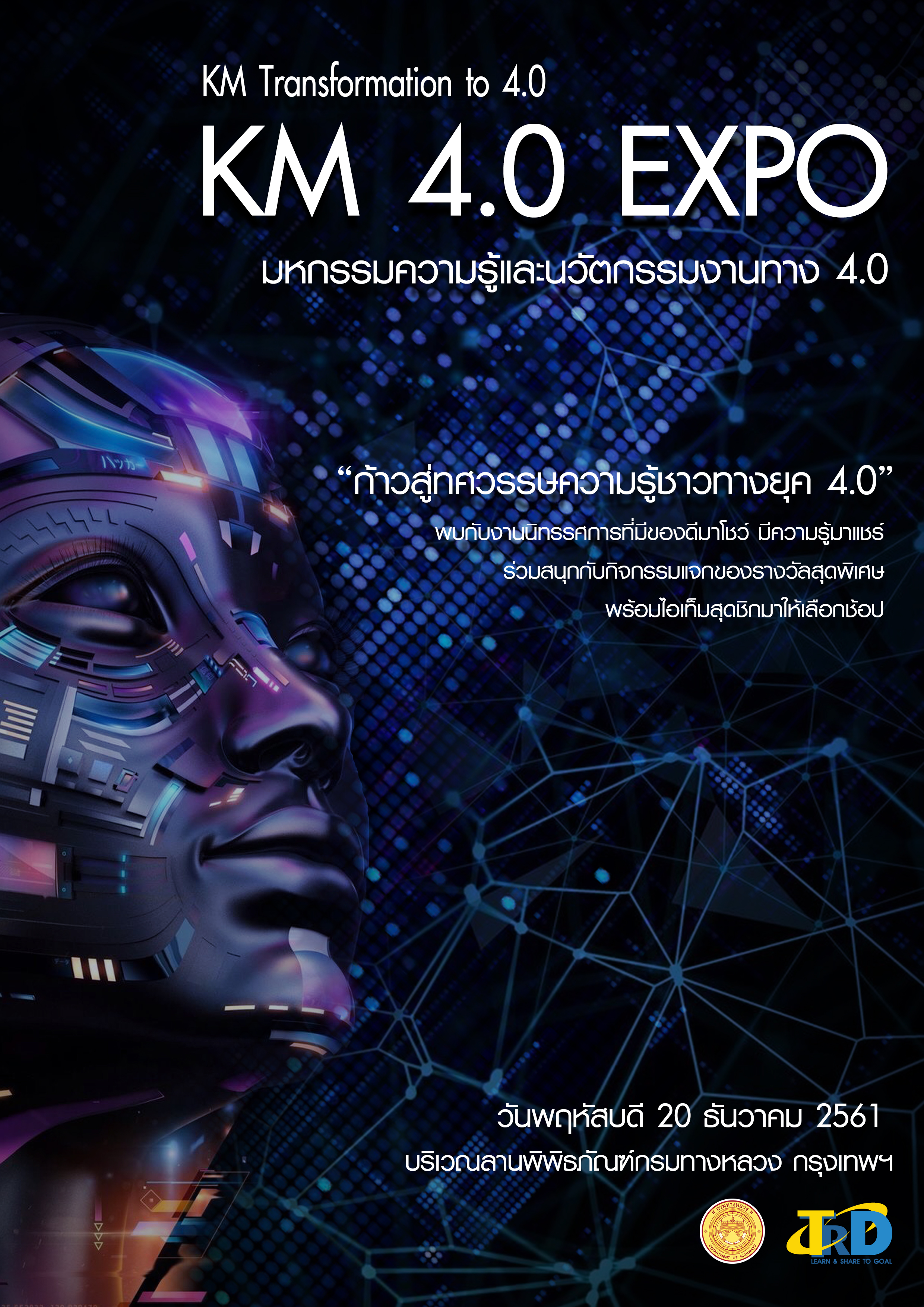 ข้อมูลข่าว : กิจกรรม KM 4.0 EXPO มหกรรมความรู้และนวัตกรรมงานทาง 4.0 "ก้าวสู่ทศวรรษความรู้ชาวทางยุค 4.0"