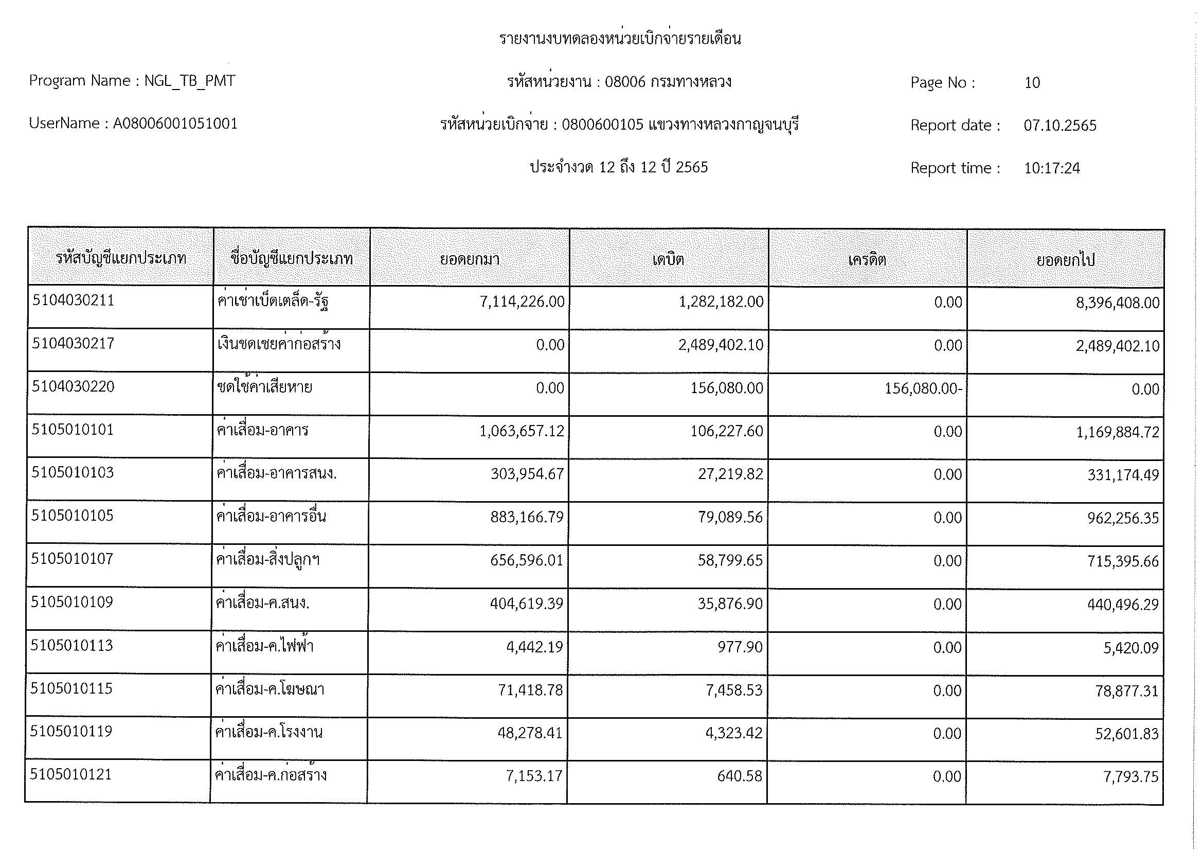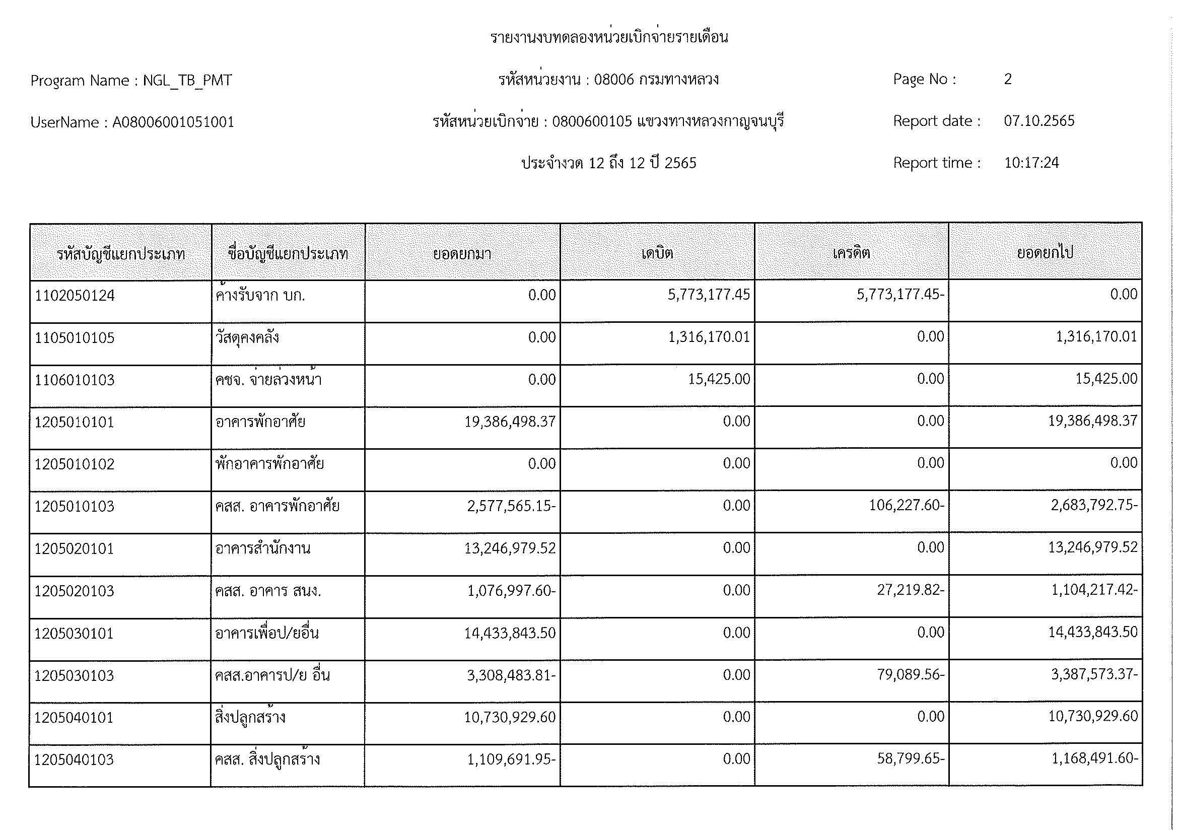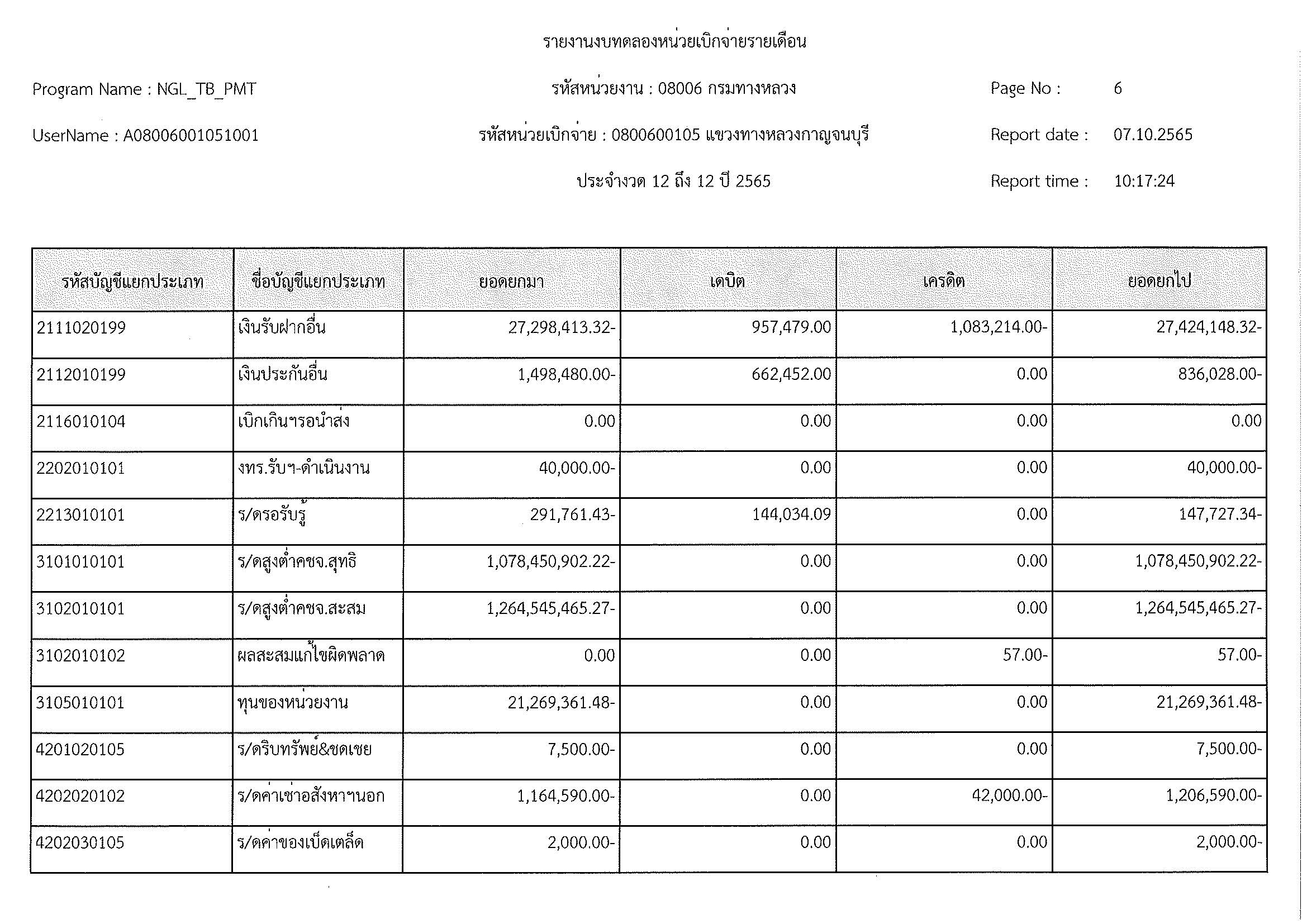 รายงานงบทดลองหน่วยเบิกจ่ายรายเดือน ประจำงวด 12 ประจำปีที่ 2565