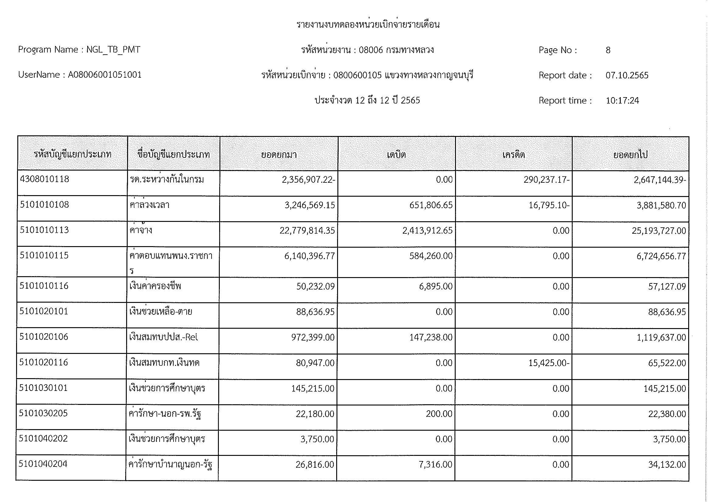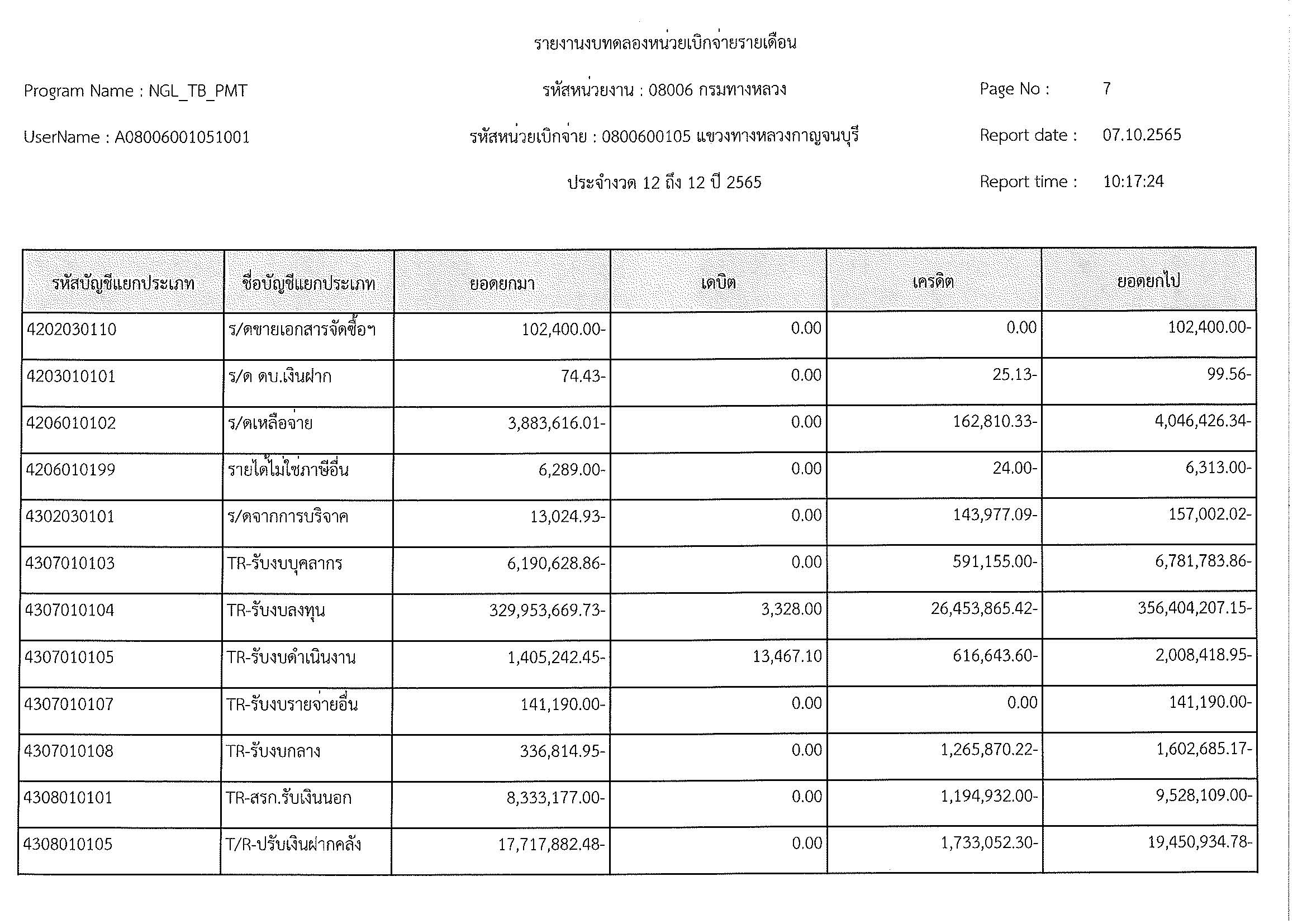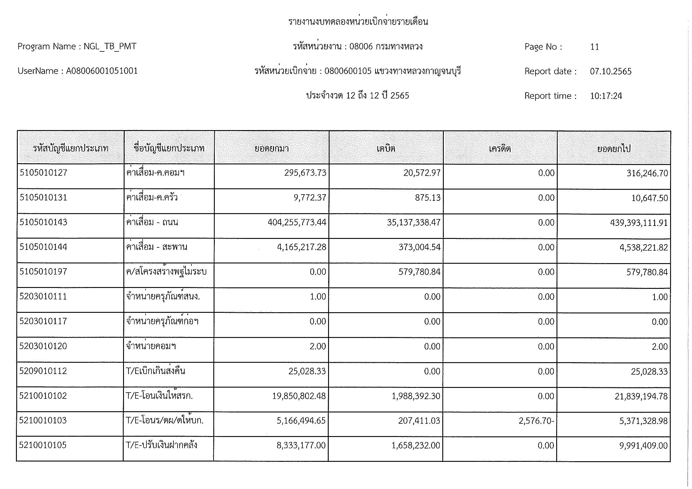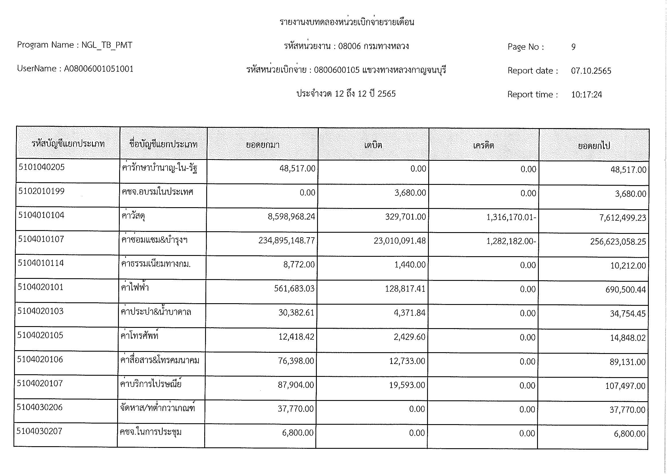 รายงานงบทดลองหน่วยเบิกจ่ายรายเดือน ประจำงวด 12 ประจำปีที่ 2565