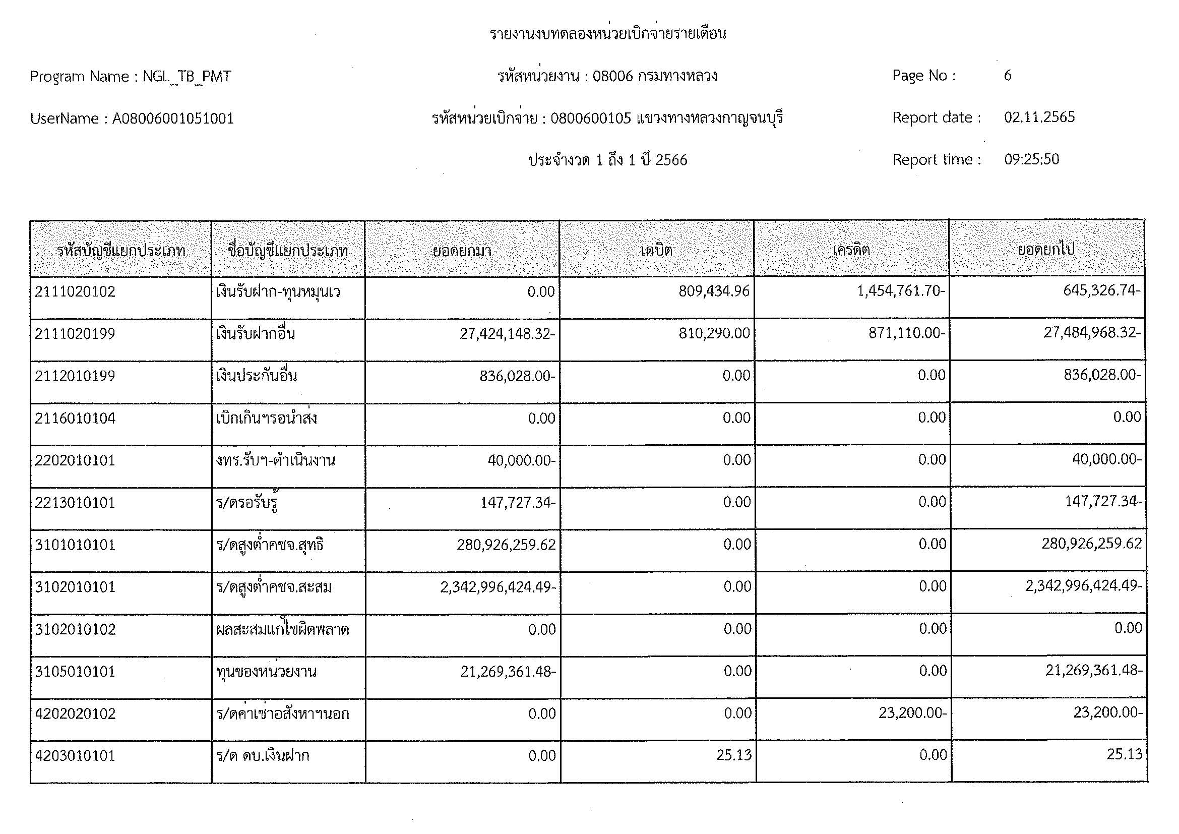 ข้อมูลข่าว : รายงานงบทดลองประจำเดือน ตุลาคม ประจำปีที่ 2565