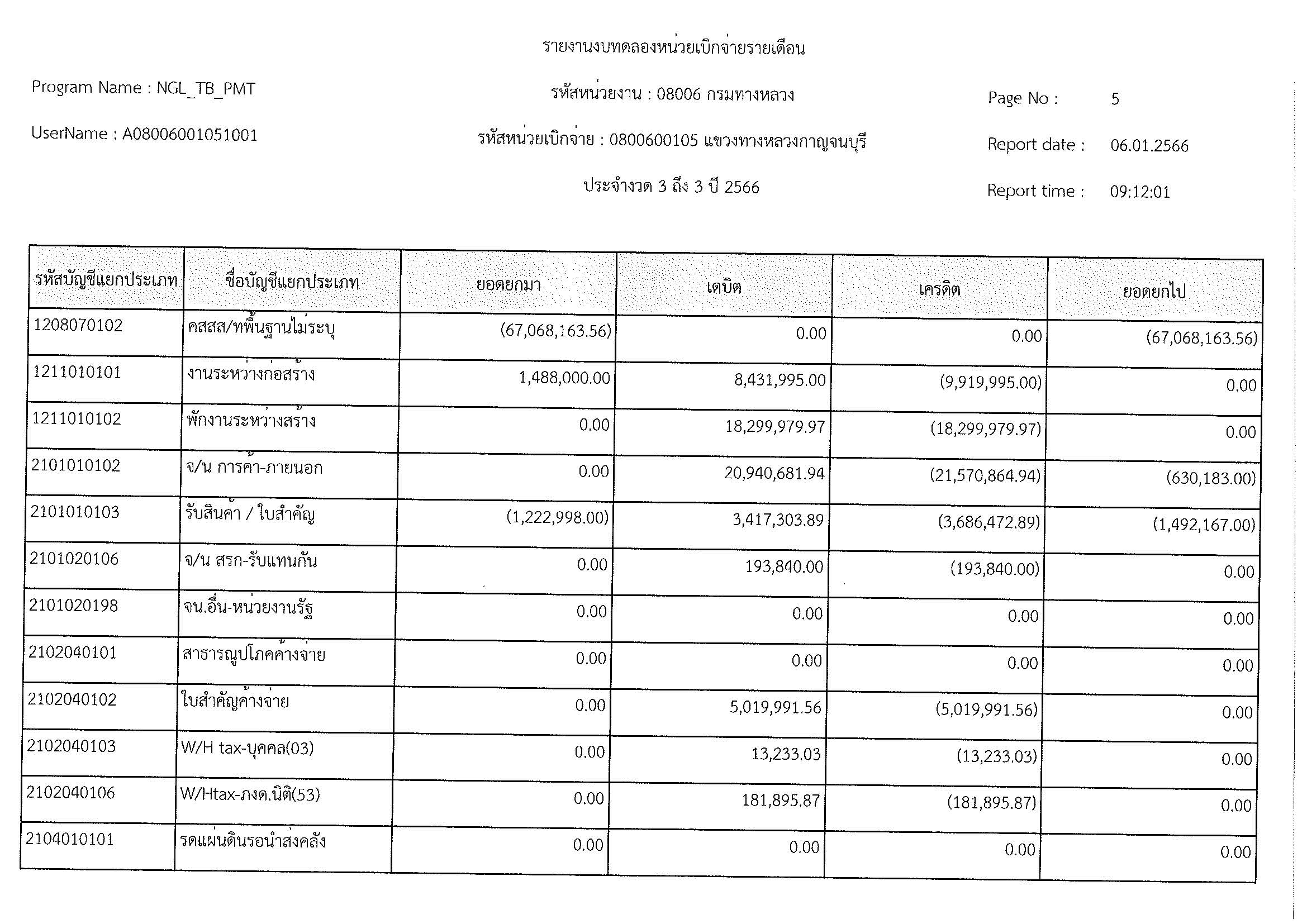 รายงานงบทดลองหน่วยเบิกจ่ายรายเดือน ประจำงวด 3 ถึง 3 ปี 2566