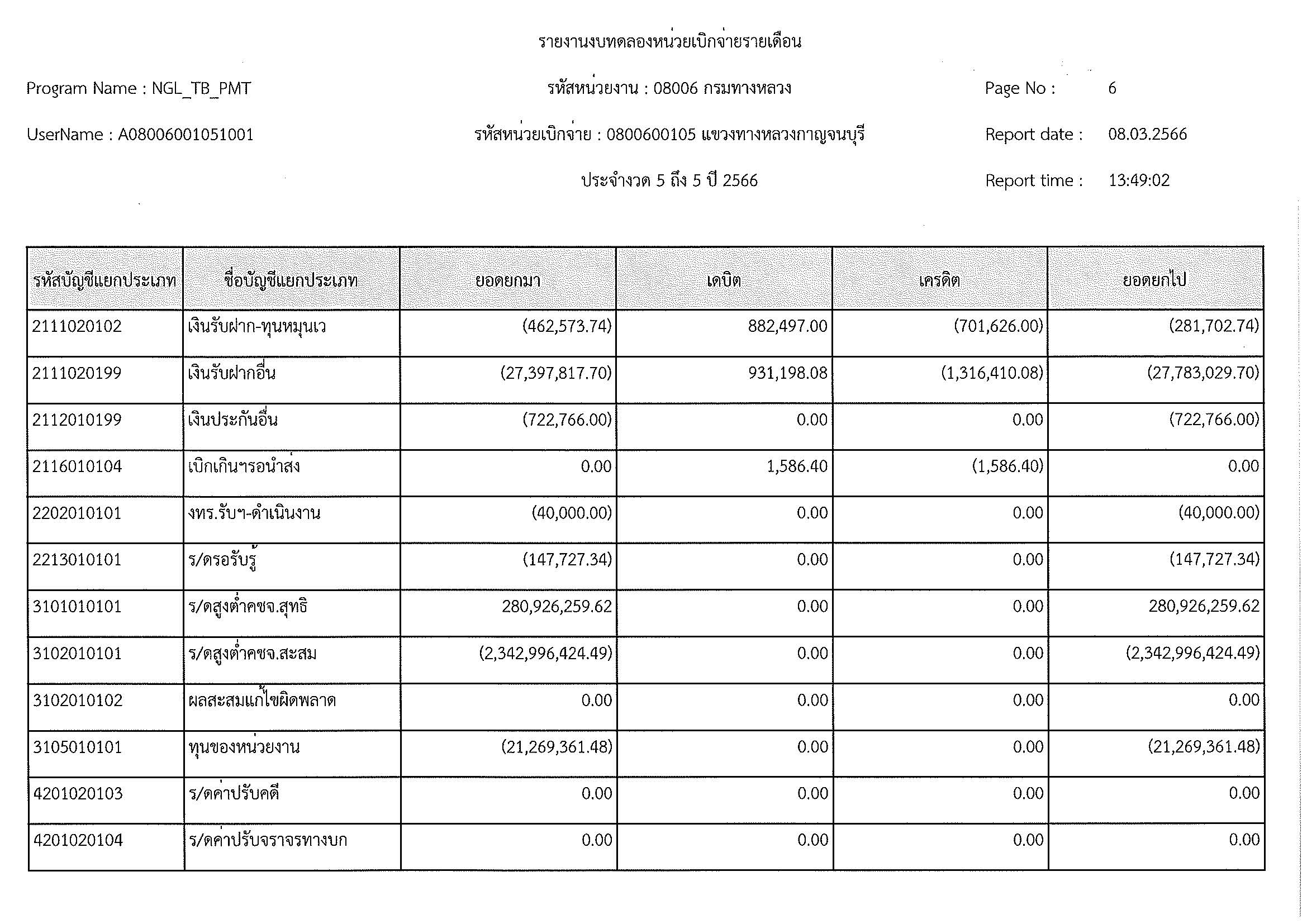 ข้อมูลข่าว : รายงานงบทดลอง เดือน กุมภาพันธ์ .2566