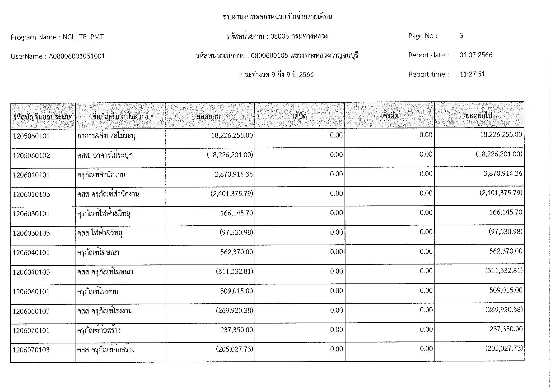 รายงานงบทดลองหน่วยเบิกจ่ายรายเดือน ประจำงวด 9 ประจำปีที่ 2566