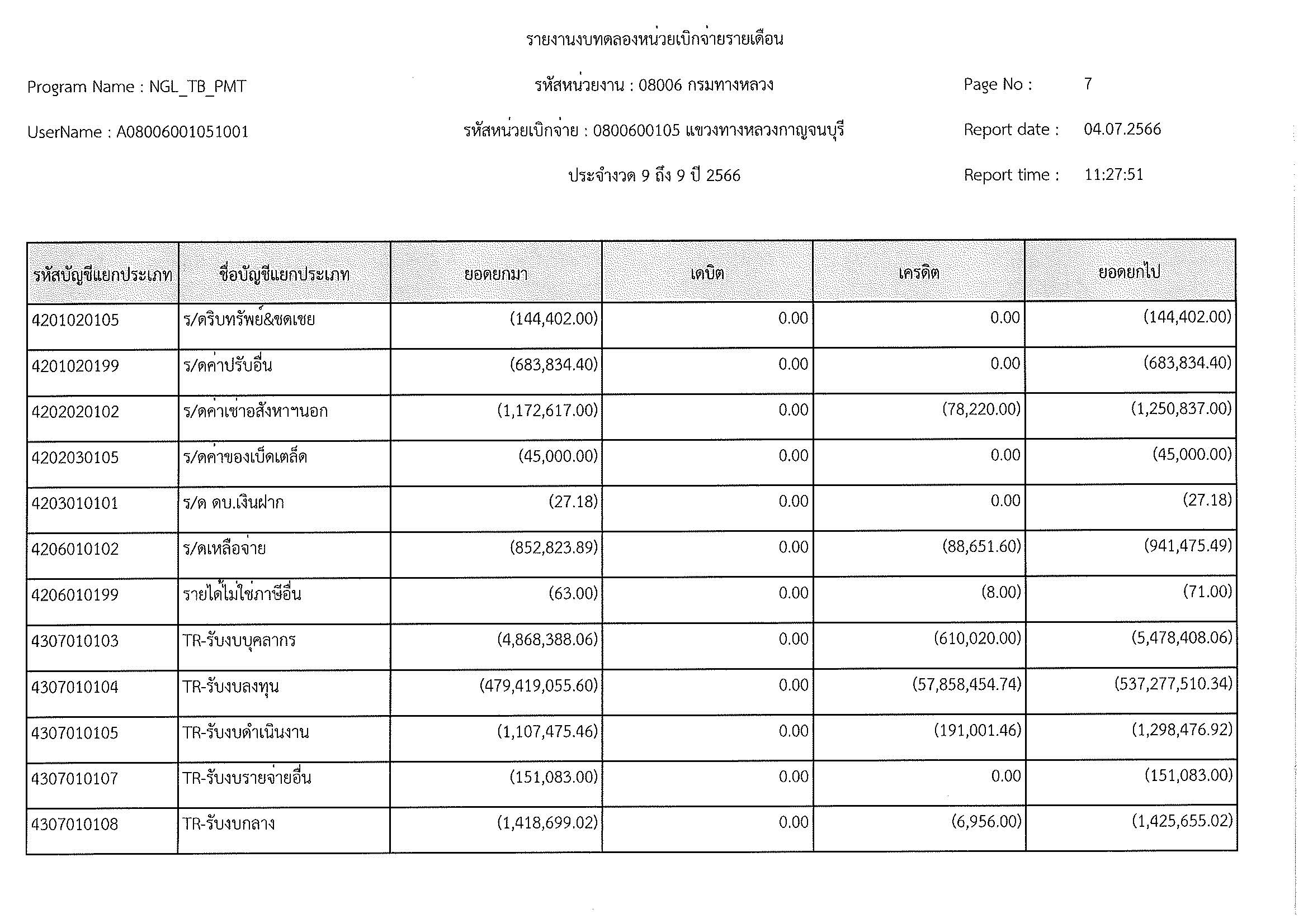 ข้อมูลข่าว : รายงานงบทดลองหน่วยเบิกจ่ายรายเดือน ประจำงวด 9 ประจำปีที่ 2566