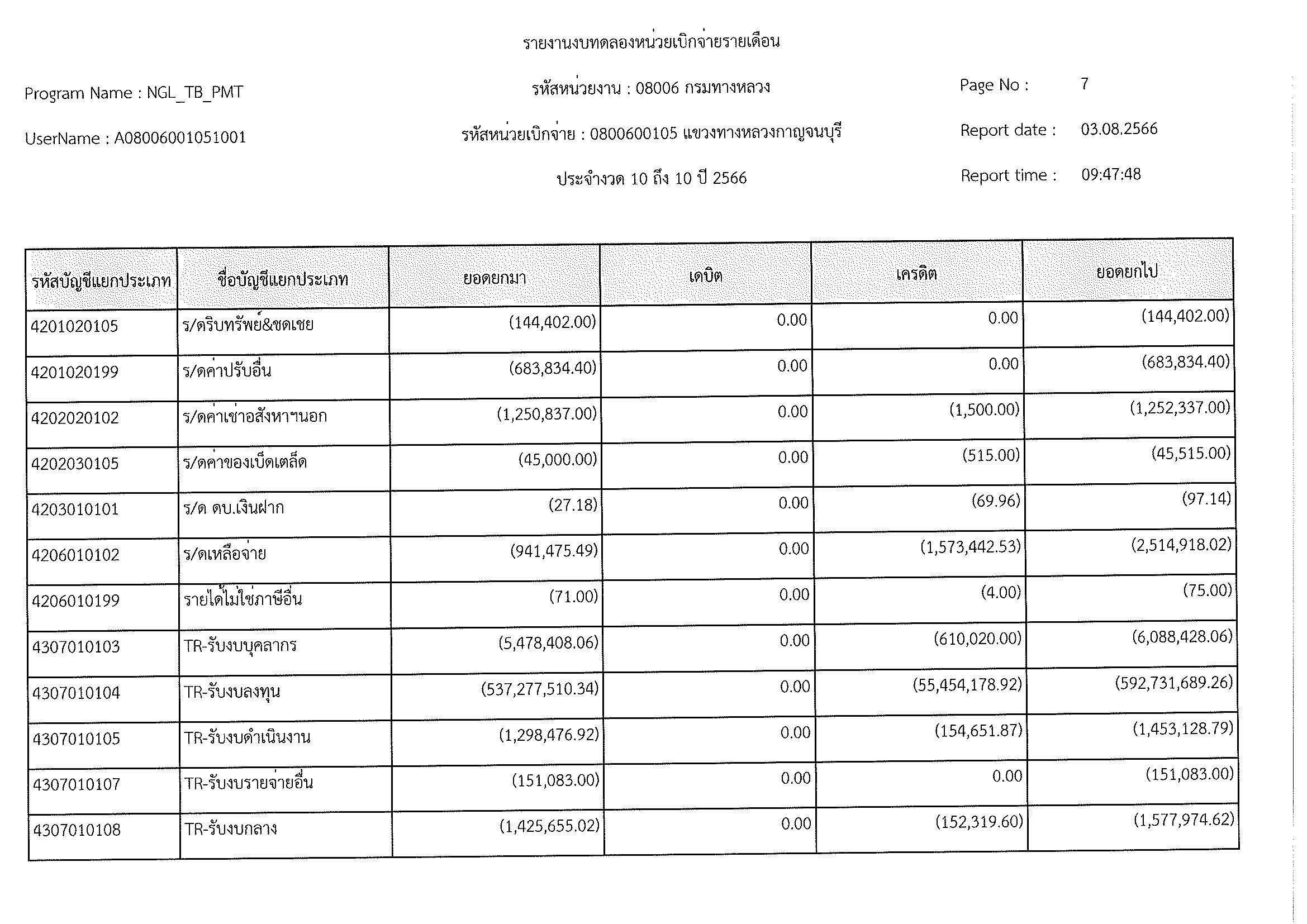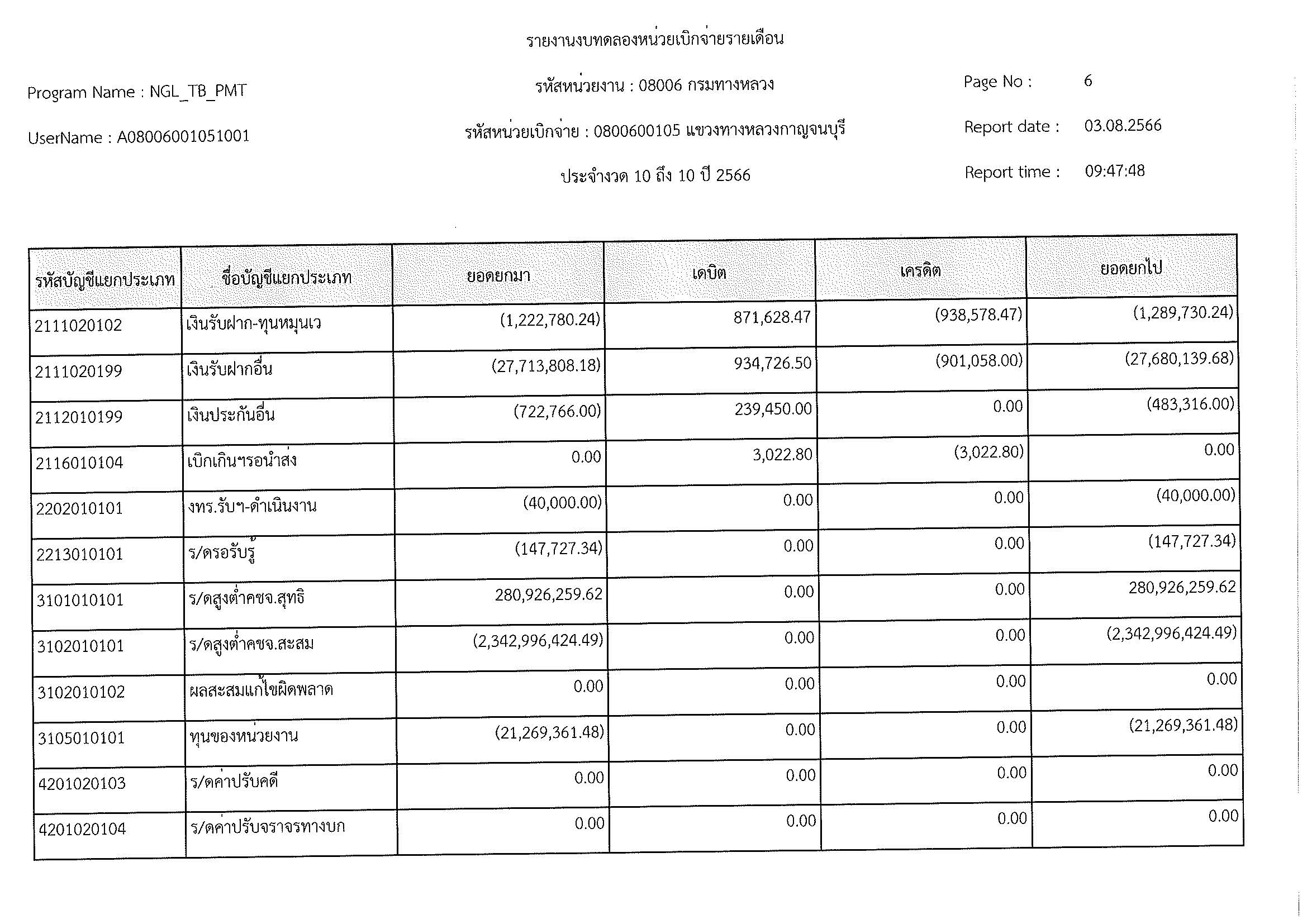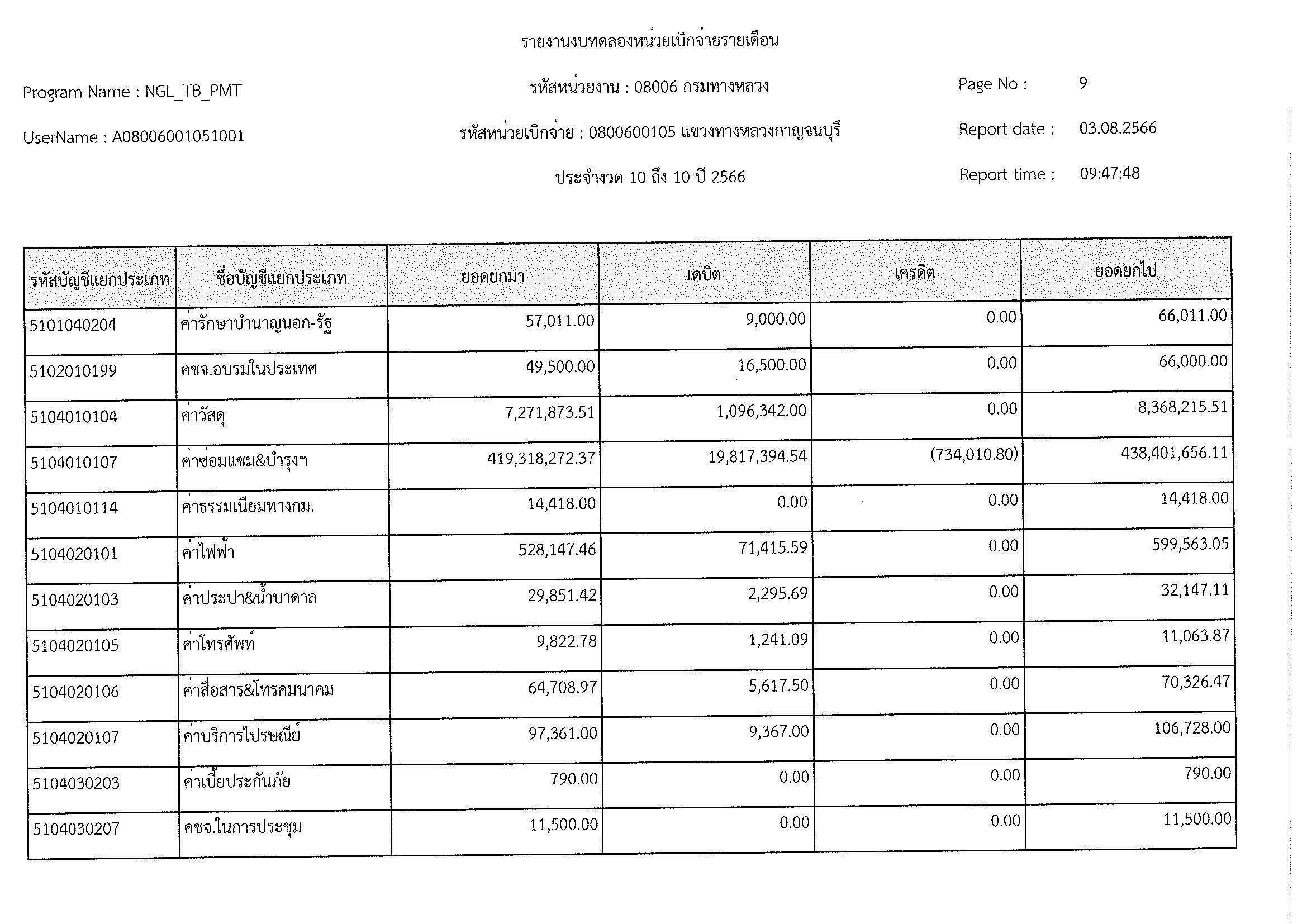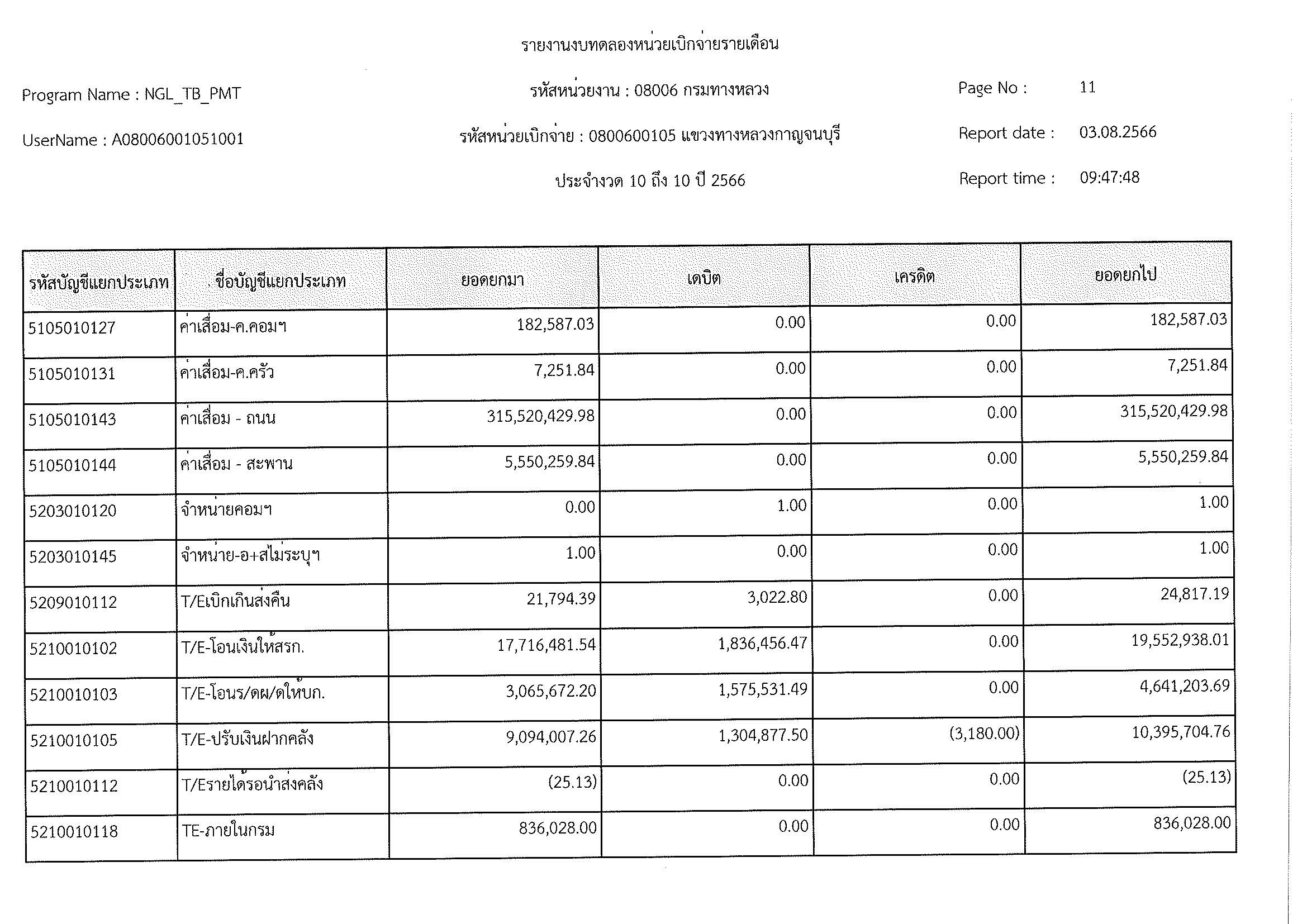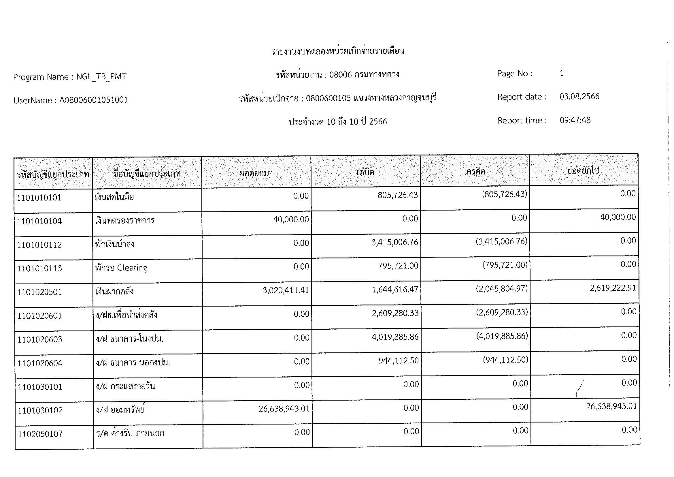 รายงานงบทดลองหน่วยเบิกจ่ายรายเดือน ประจำงวด 10 ประจำปีที่ 2566