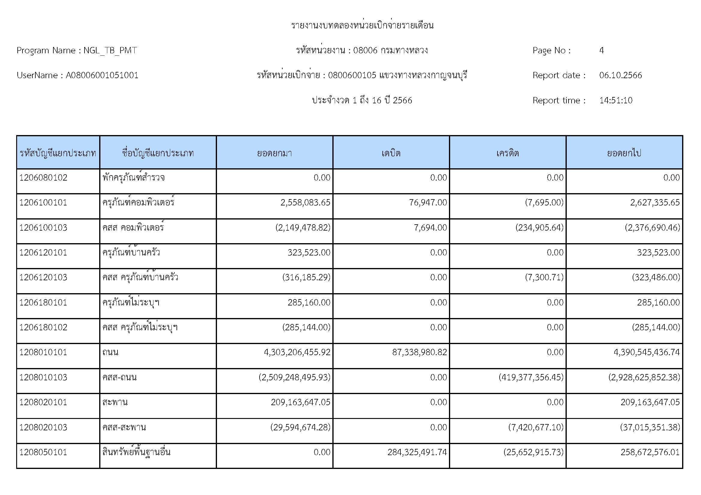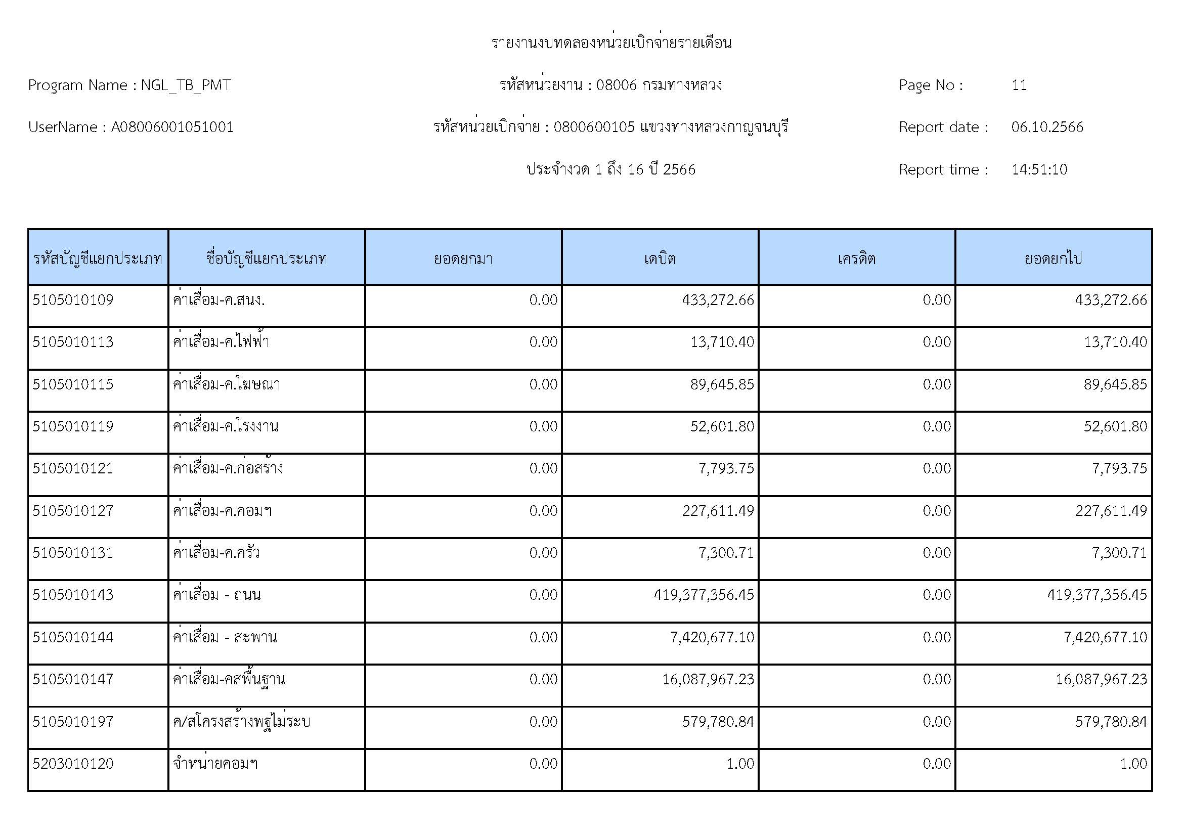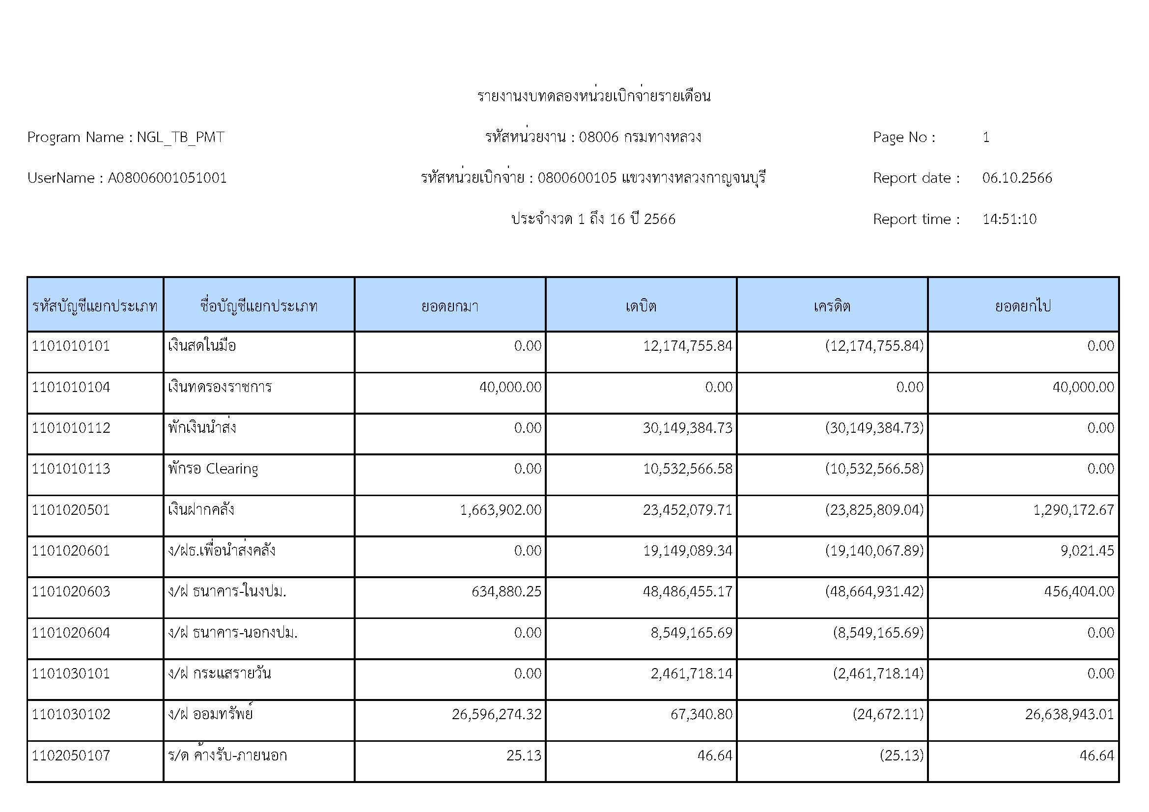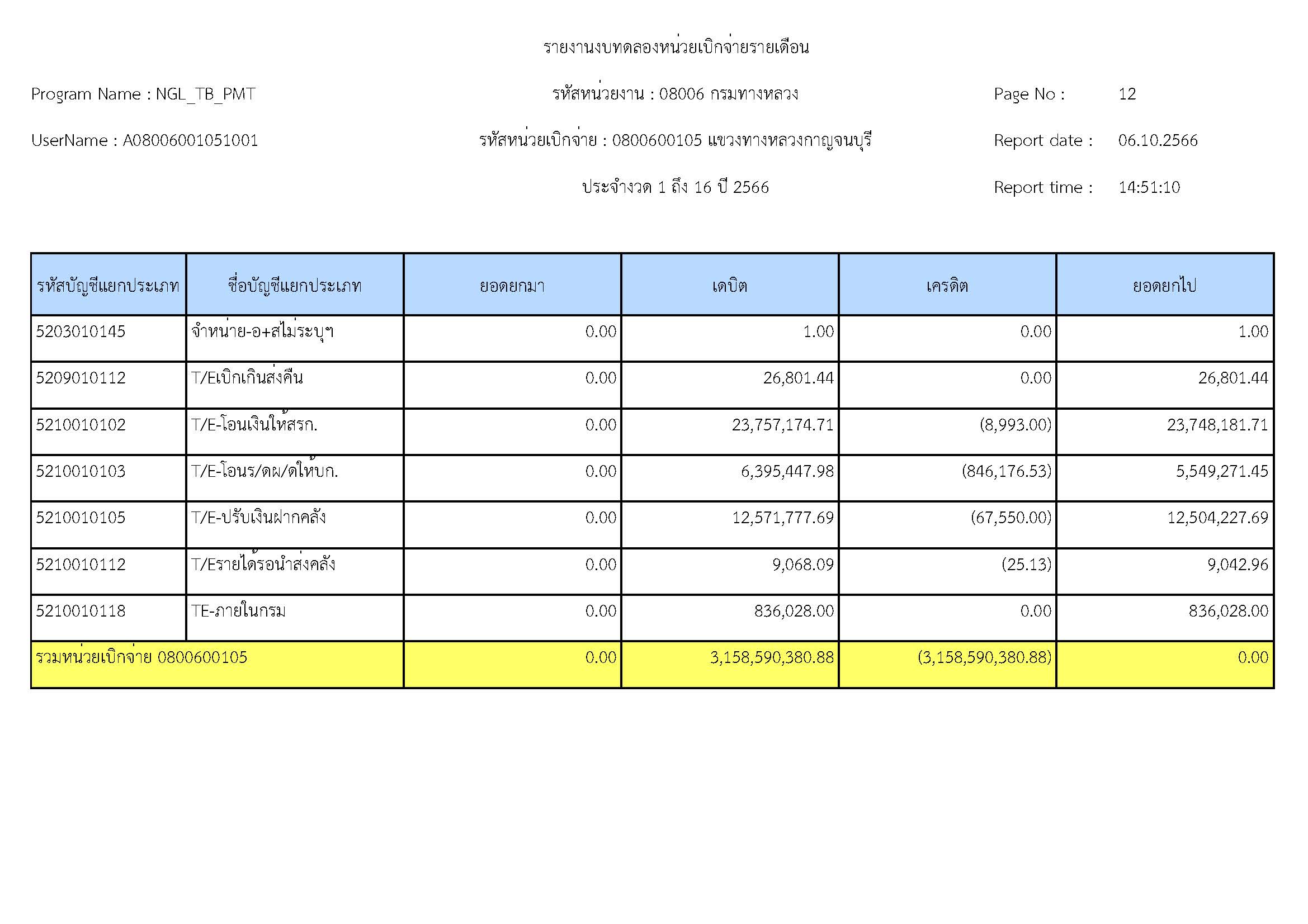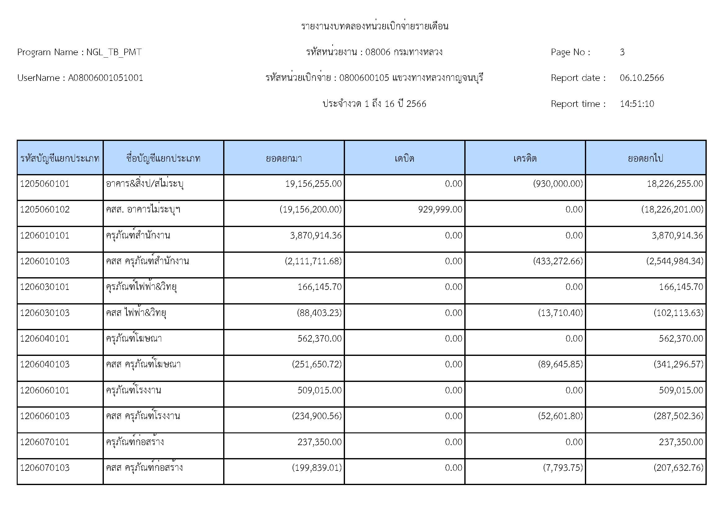 รายงานงบทดลองหน่วยเบิจจ่ายรายปี