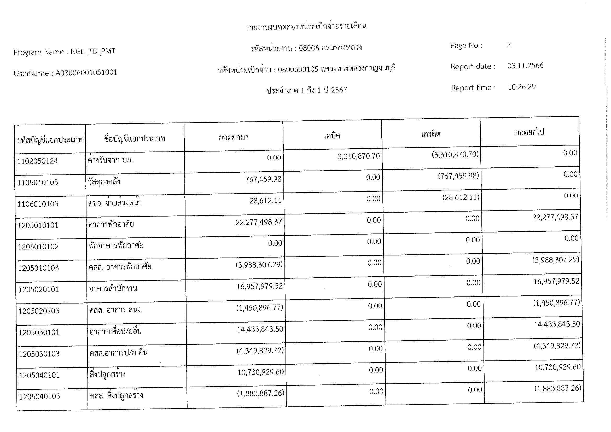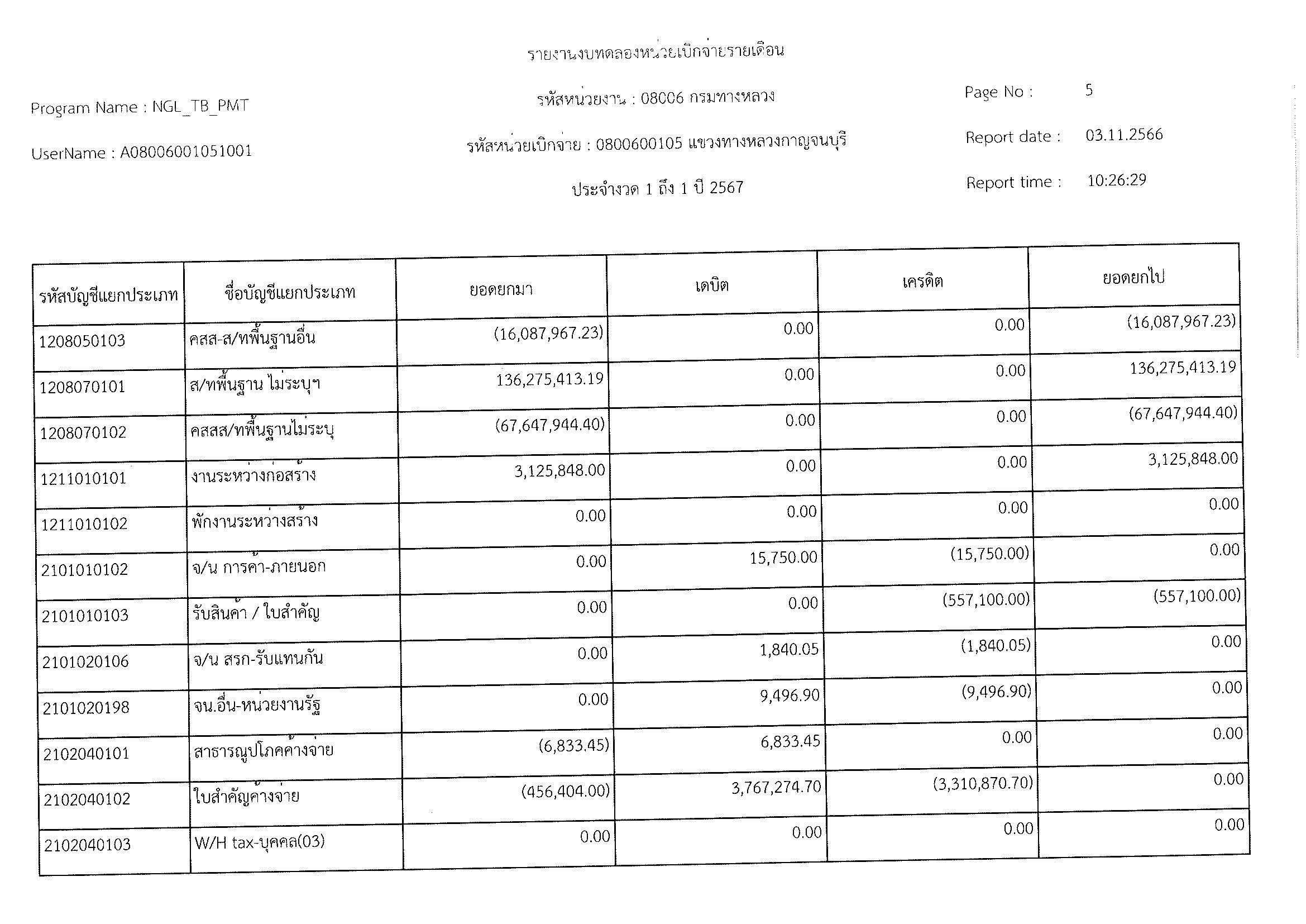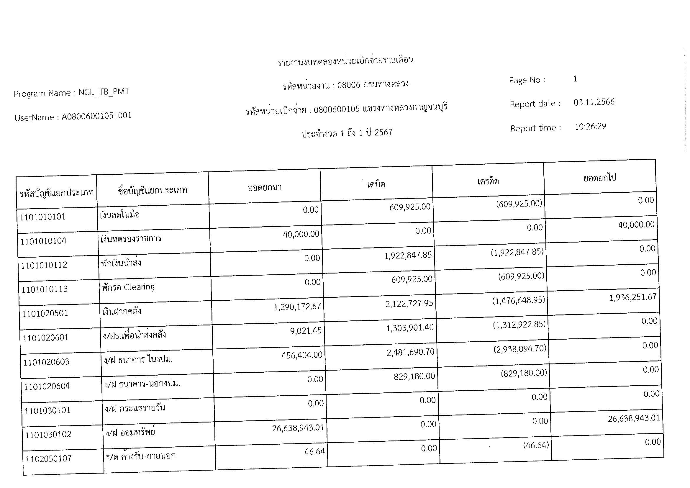 รายงานงบทดลองหน่วยเบิจจ่ายรายเดือน