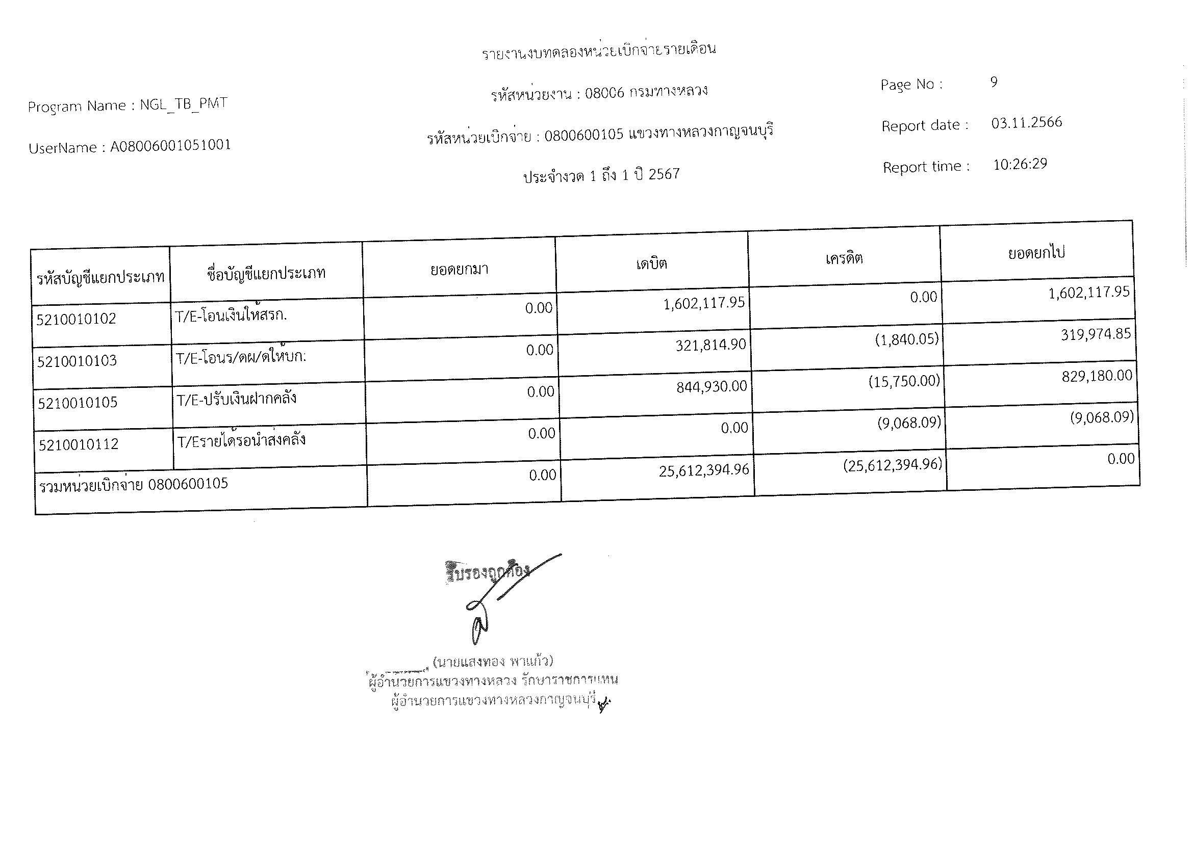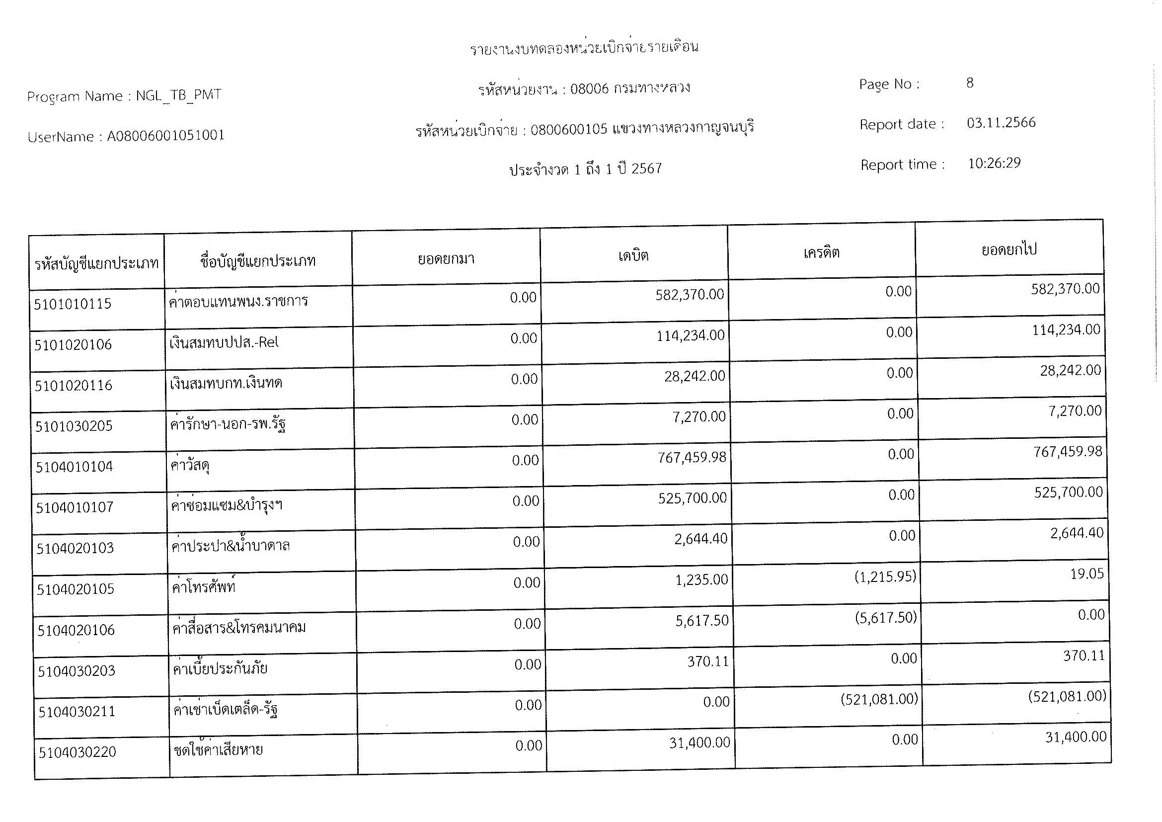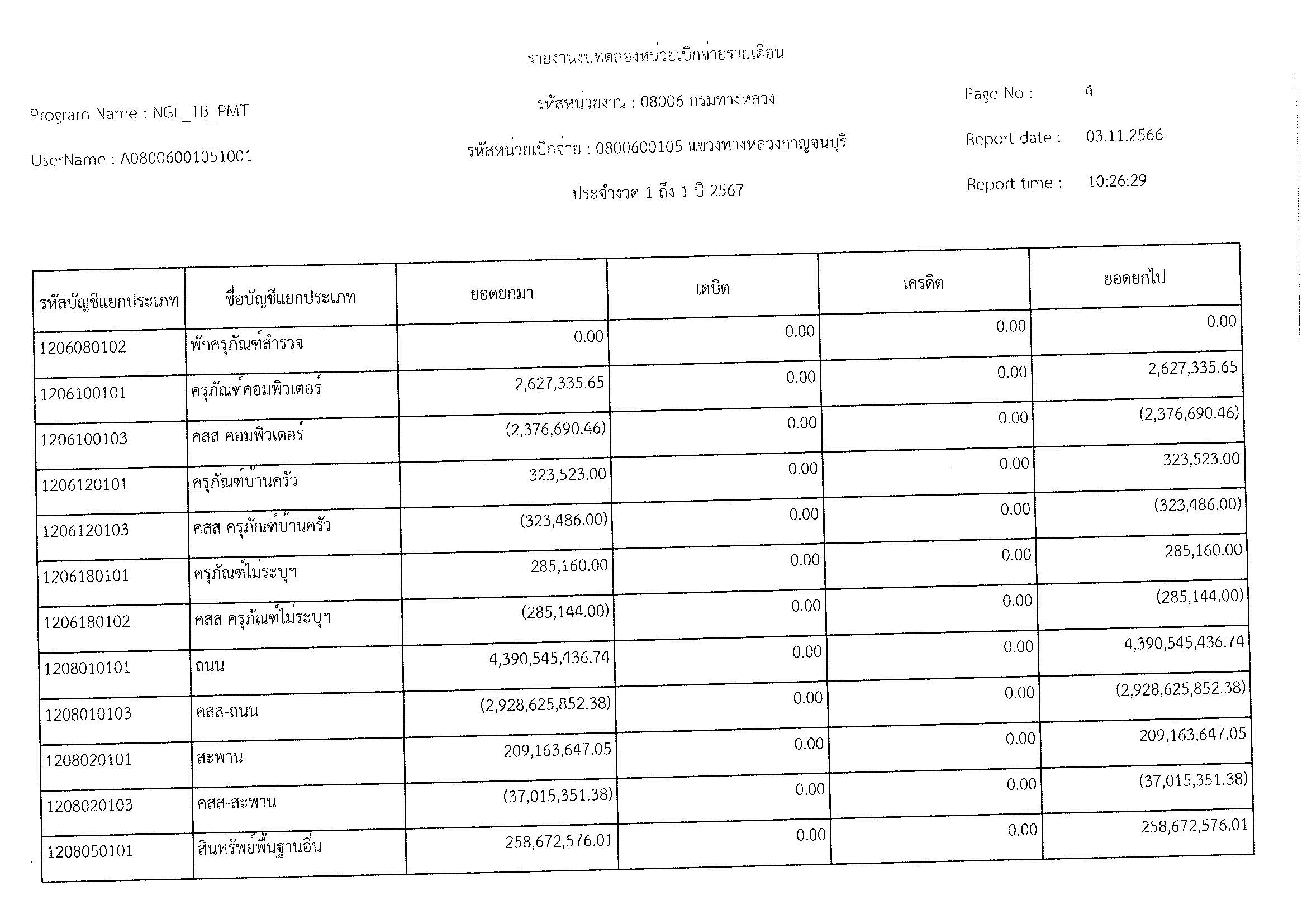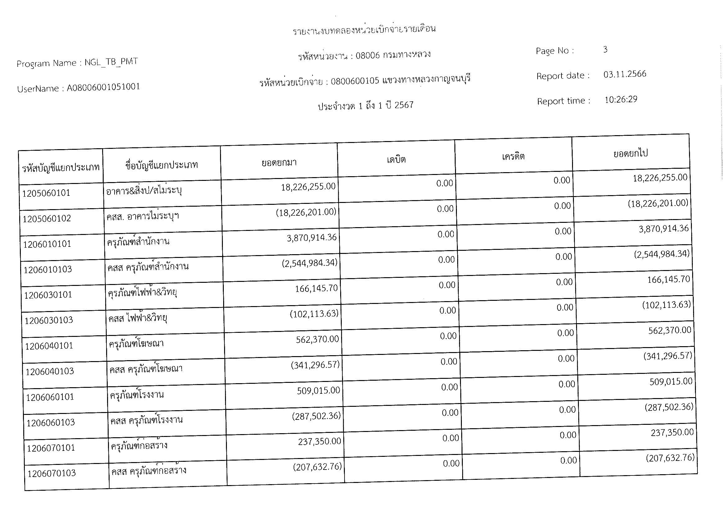 รายงานงบทดลองหน่วยเบิจจ่ายรายเดือน