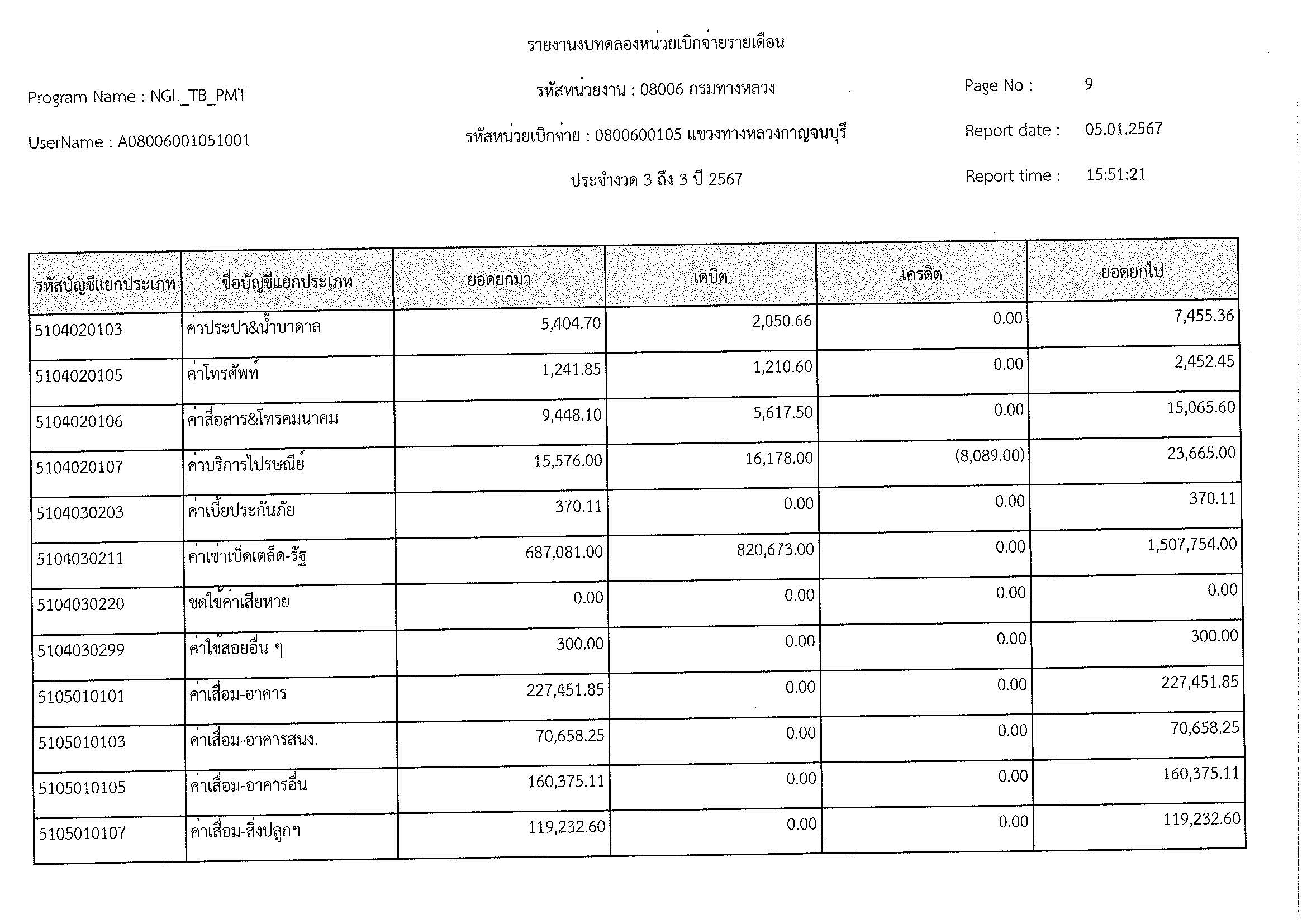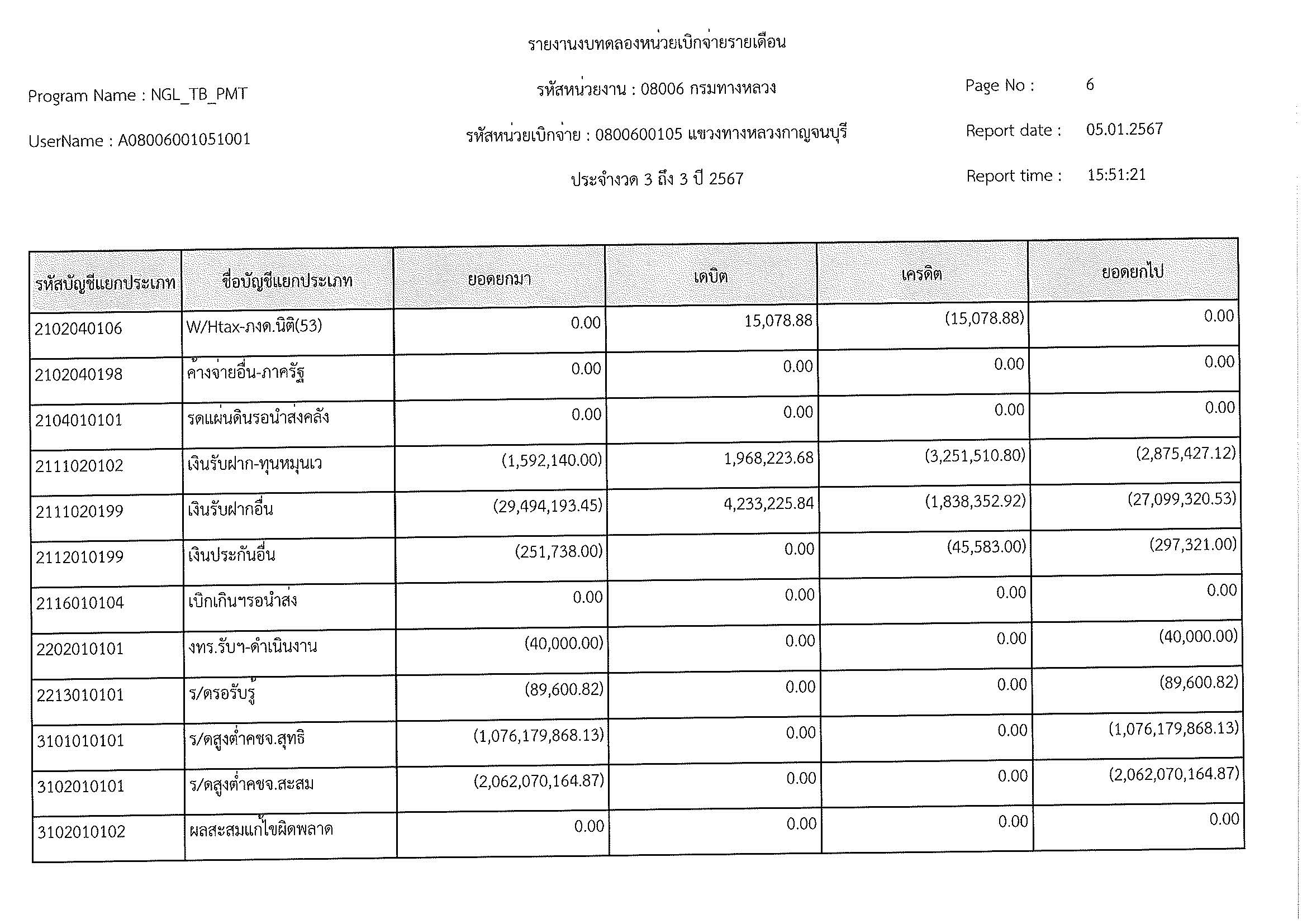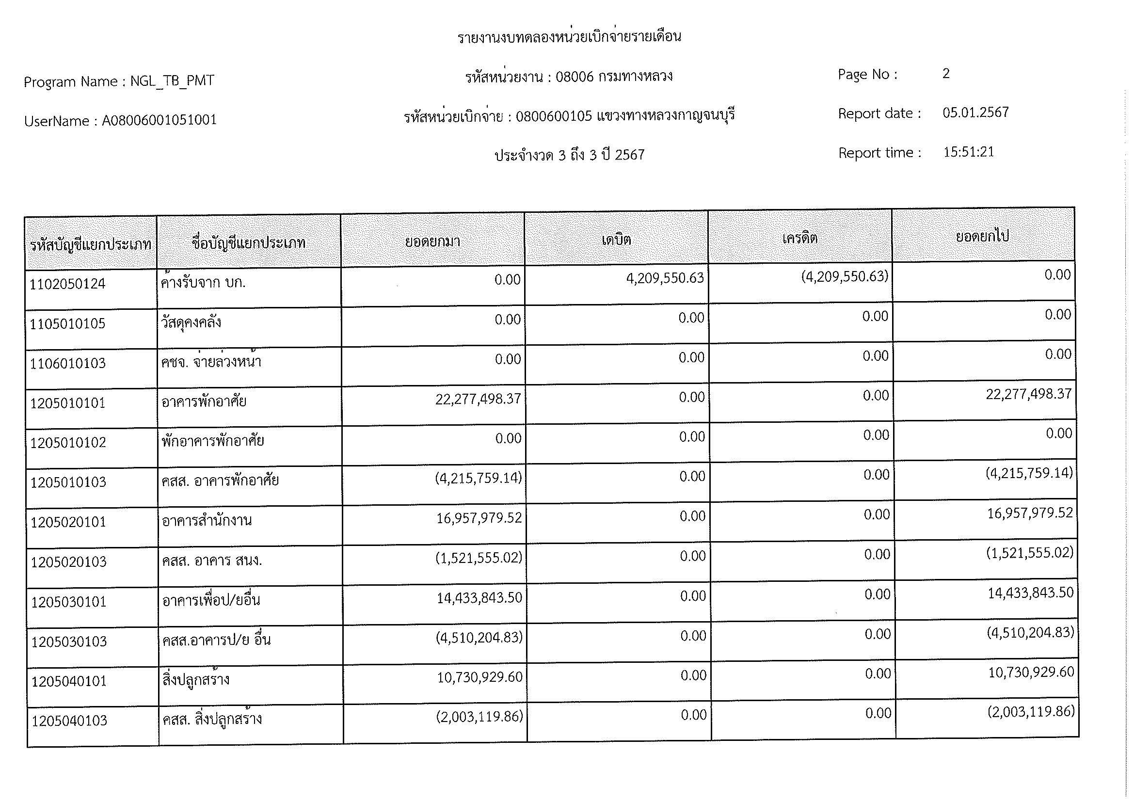 รายงานงบทดลองประจำเดือน ธันวาคม 2566